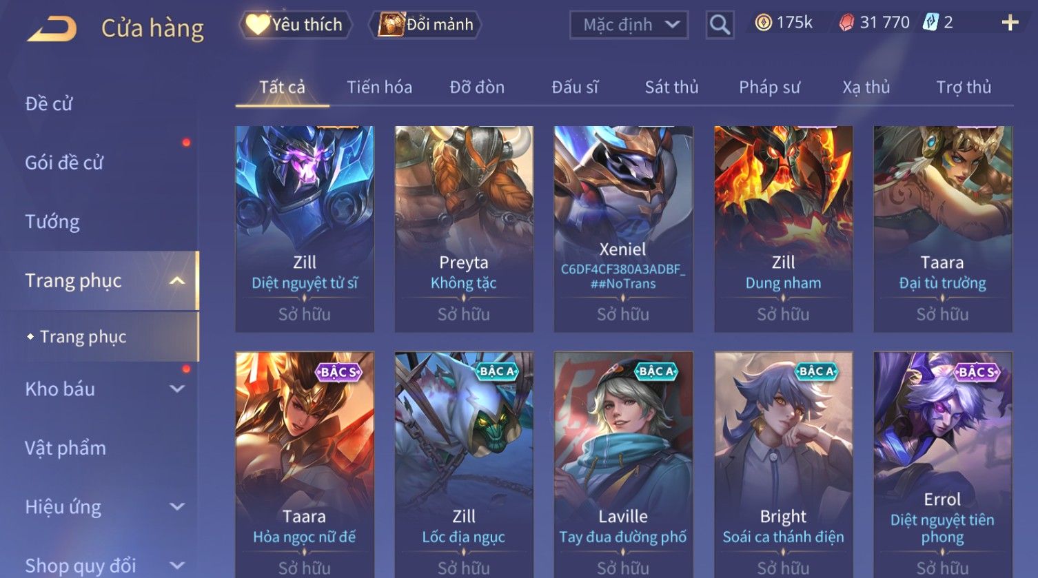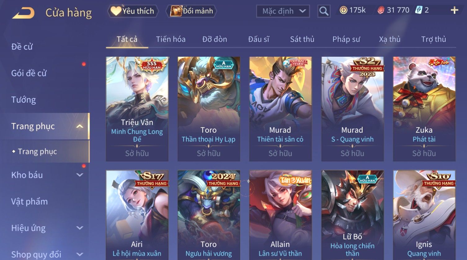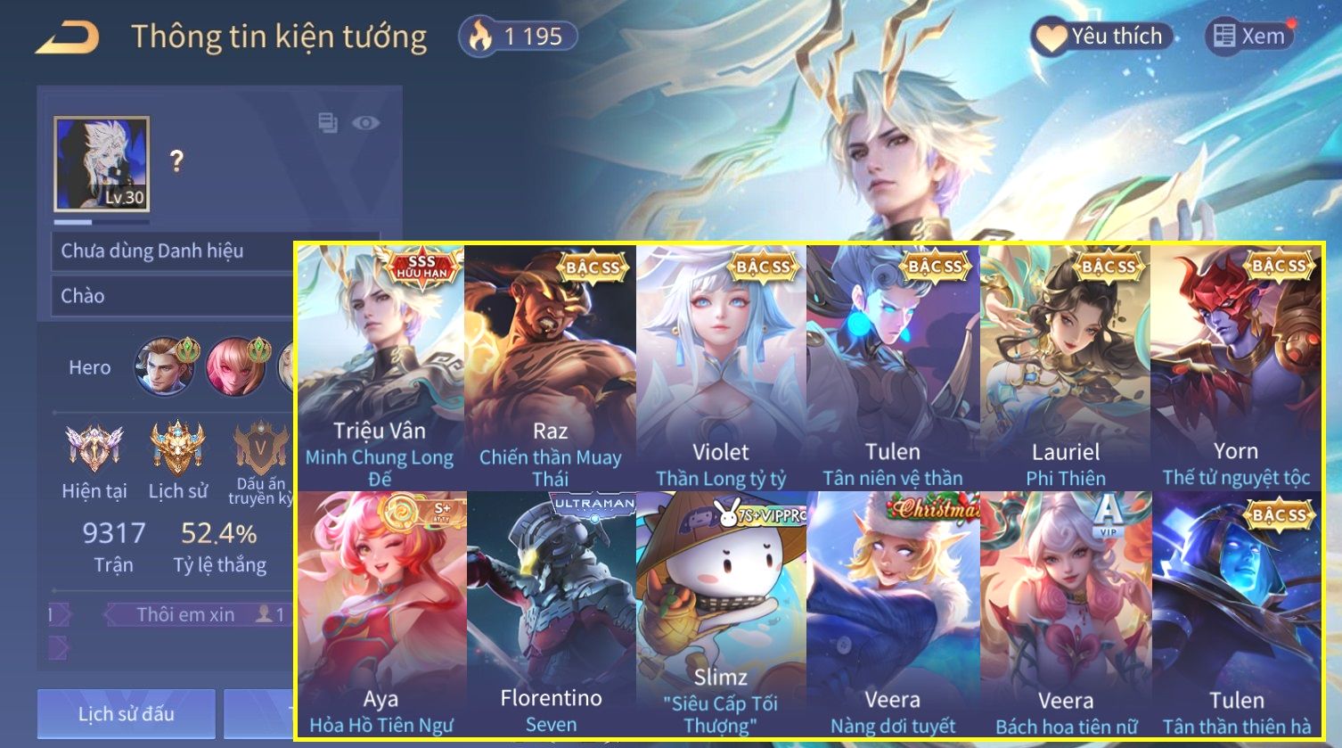 Nổi bật: Skin: Triệu Vân Minh Chung Long Đế×Raz Chiến Thần Muay Thái×Violet Thần Long Tỷ Tỷ×Tulen Tân Niên Vệ Thần×