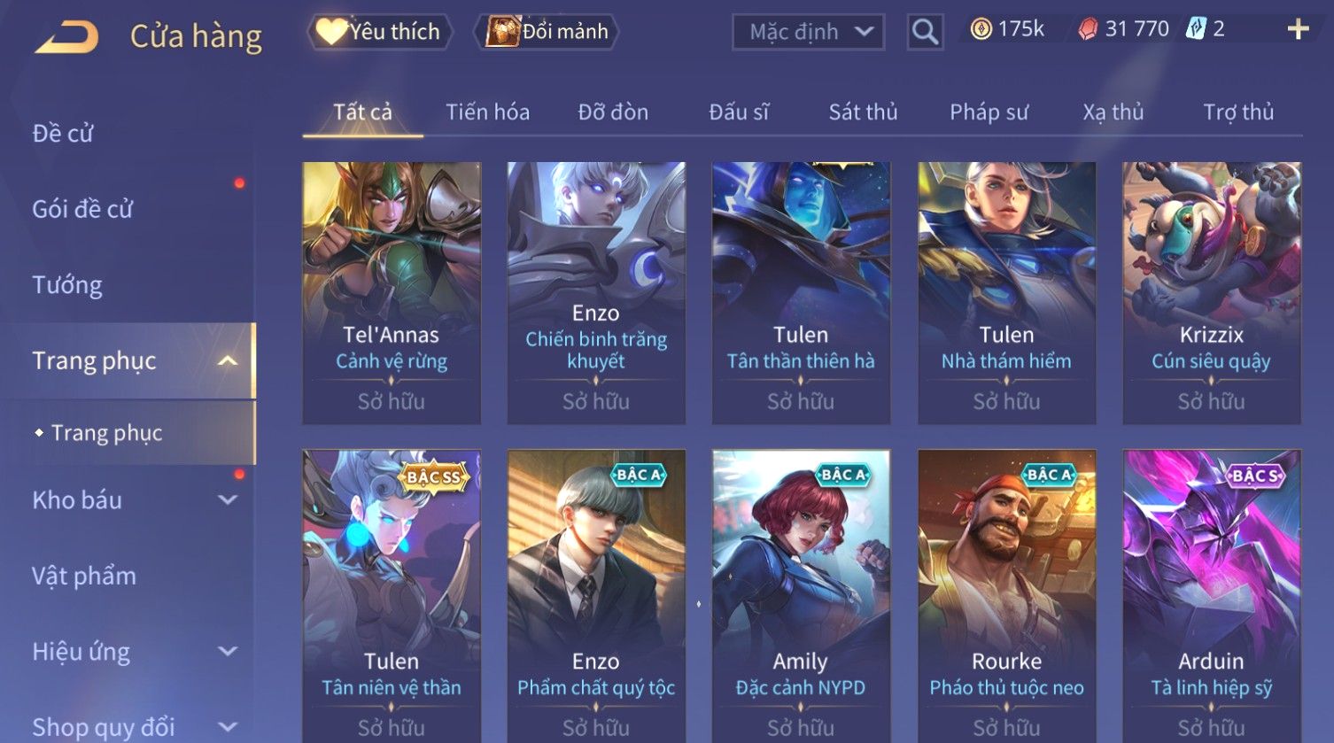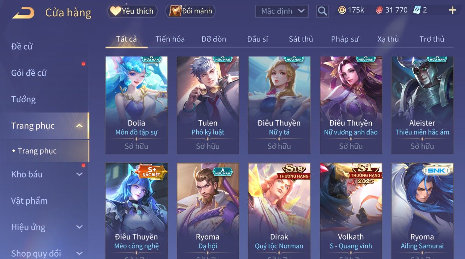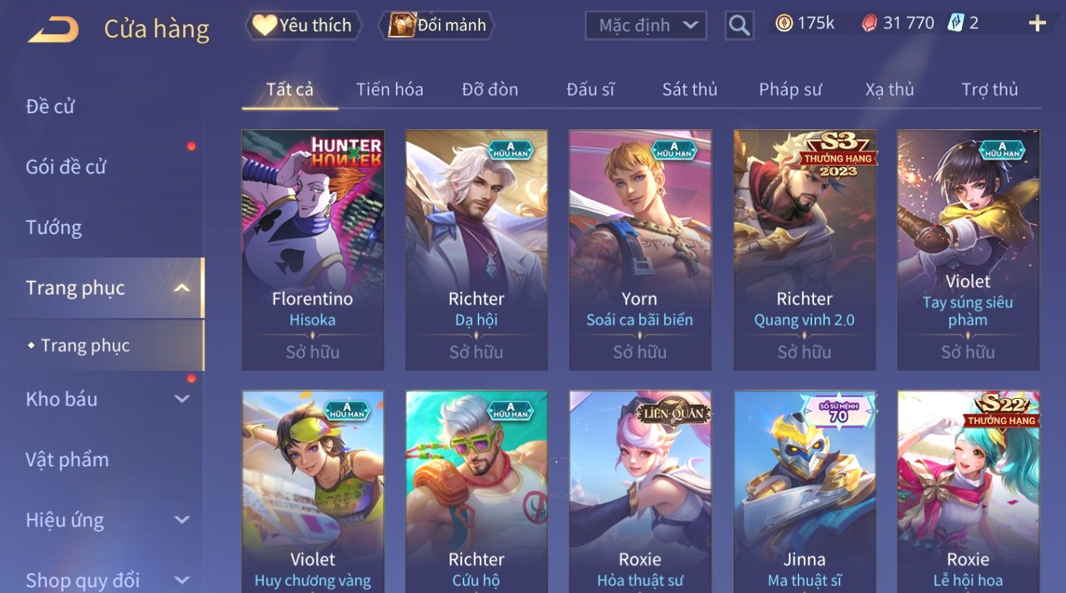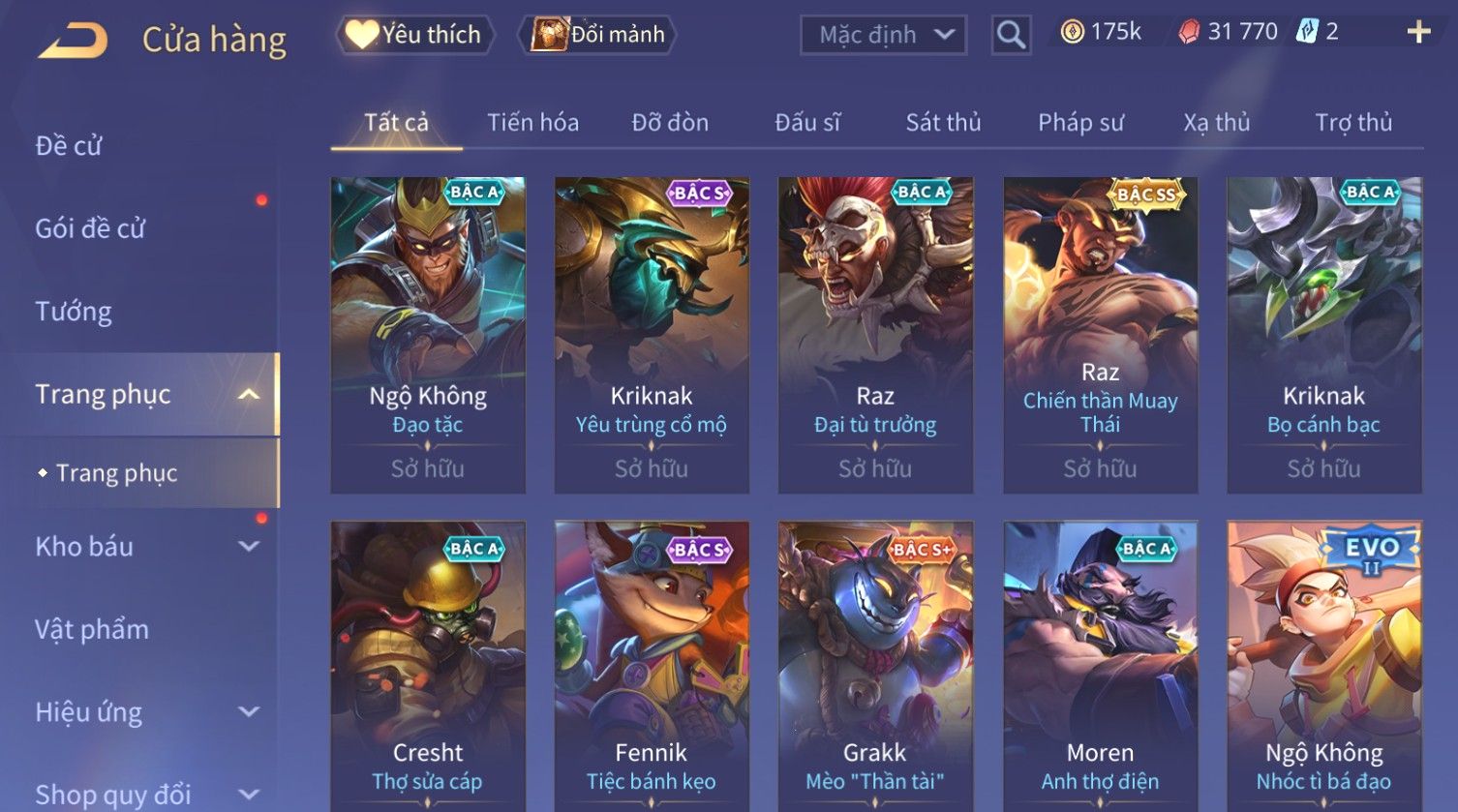 Nổi bật: Skin: Triệu Vân Minh Chung Long Đế×Raz Chiến Thần Muay Thái×Violet Thần Long Tỷ Tỷ×Tulen Tân Niên Vệ Thần×