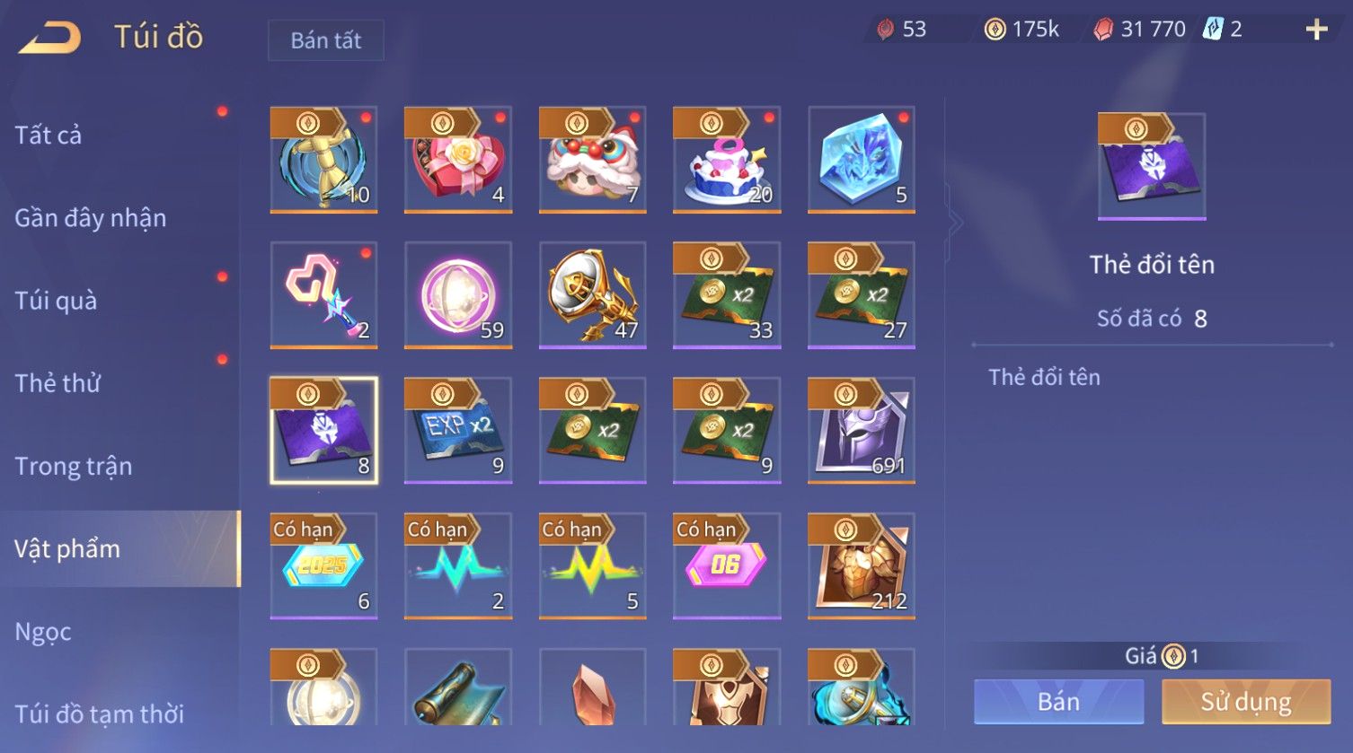 Trạng Thái: Nick có SĐT or Gmail Của Shop( Có Thể Thay Đổi)