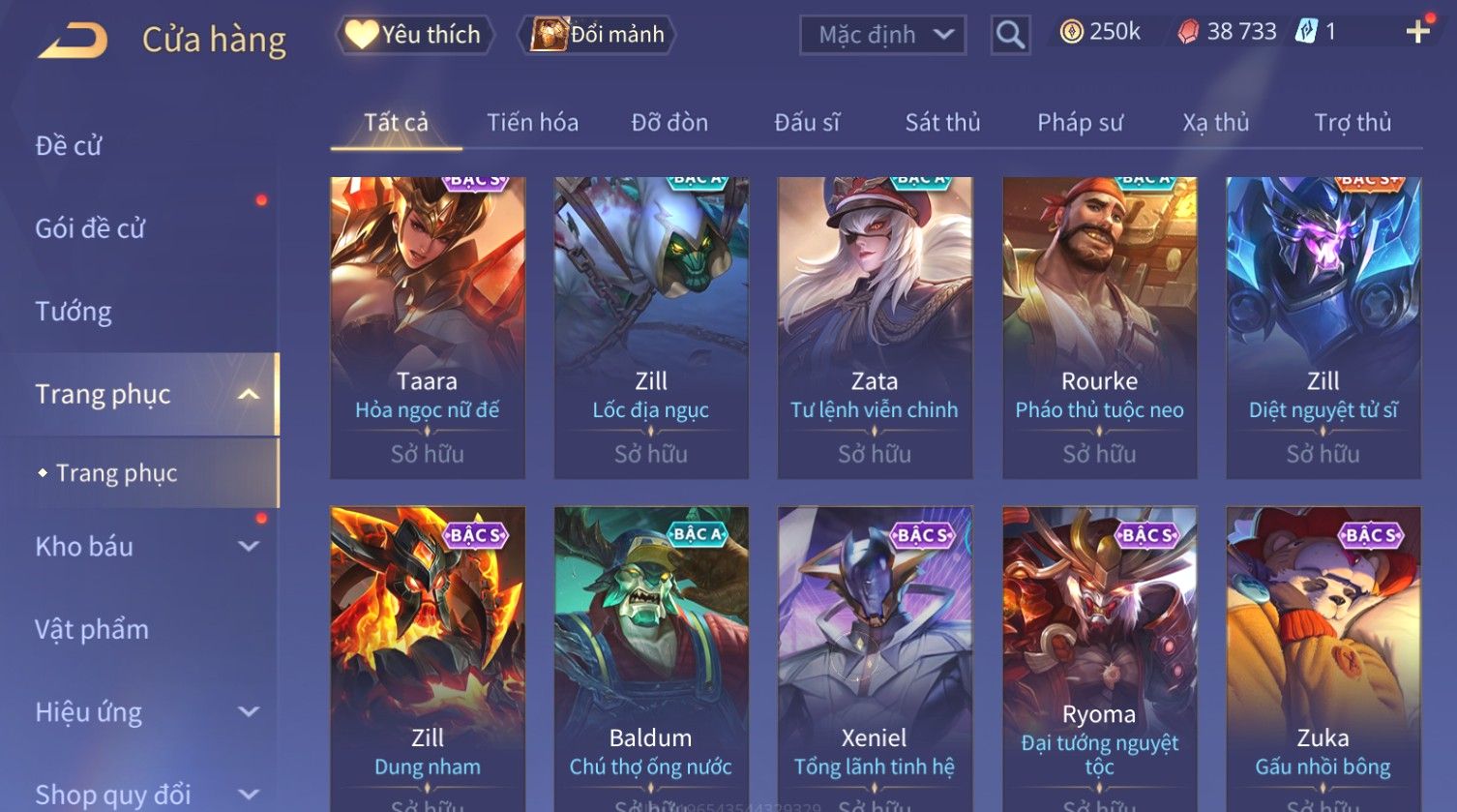 Nổi bật: Skin: Raz Chiến Thần Muay Thái×Yorn Long Thần Soái×Zata Chí Tôn Tà Phượng×Ngộ Không Thần Giáp Xích Diễm×Fennik Phong Tranh Thám Xuân×Lauriel Phi Thiên×Elsu Trấn Thiên Phi Hồ×Omen Đao Phủ Tận Thế×Florentino Giám Sát Tinh Hệ×Ilumia Nộ Hải Thiên Ngư×Full Ngọc, Nhiều Skin SS Đẹp