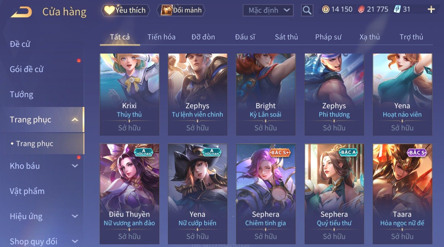 Nổi bật: Full Ngọc, Nhiều Skin Đẹp