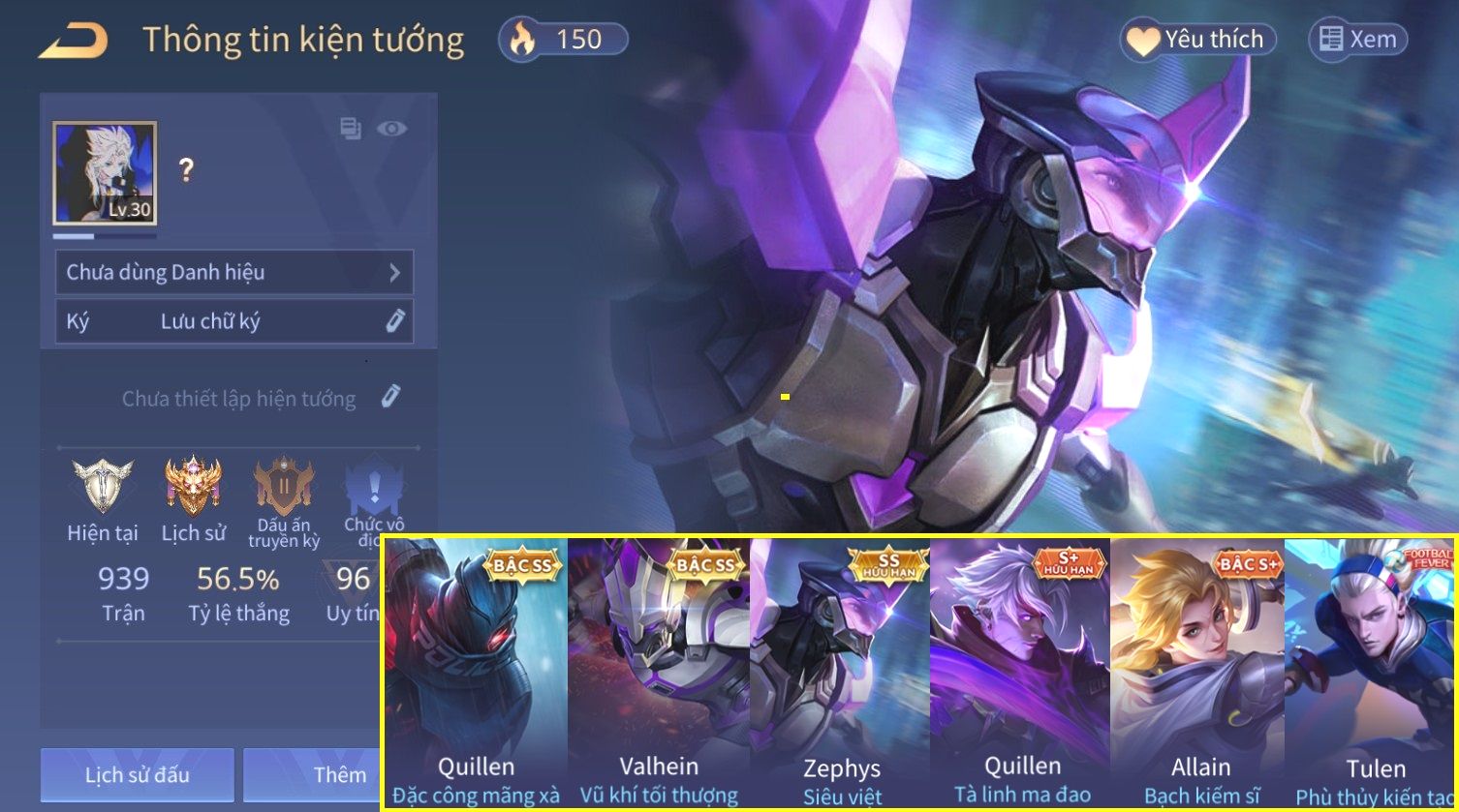 Nổi bật: Skin: Zephys Siêu Việt×Quillen Đặc Công Mãng Xà×Valhein Vũ Khí Tối Thượng×