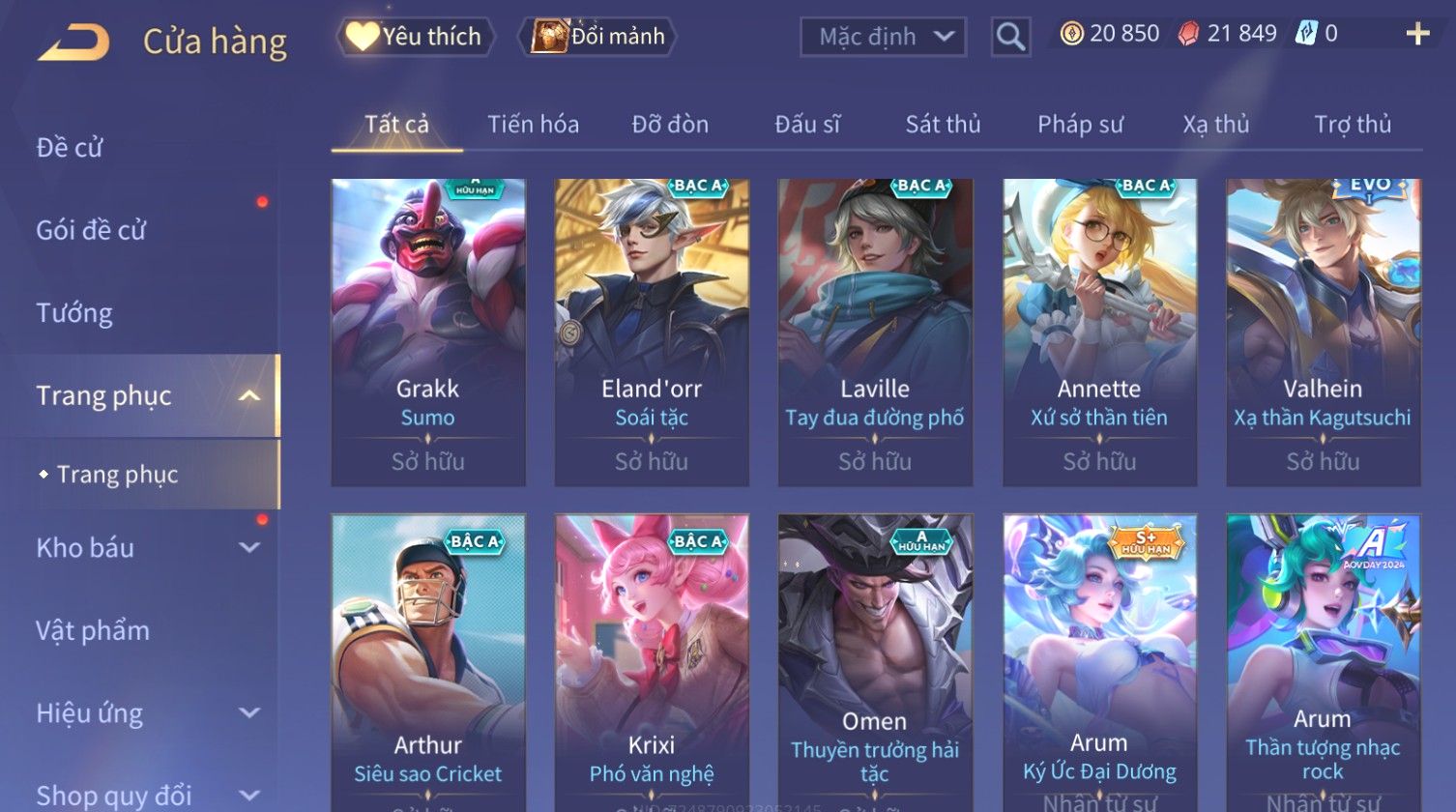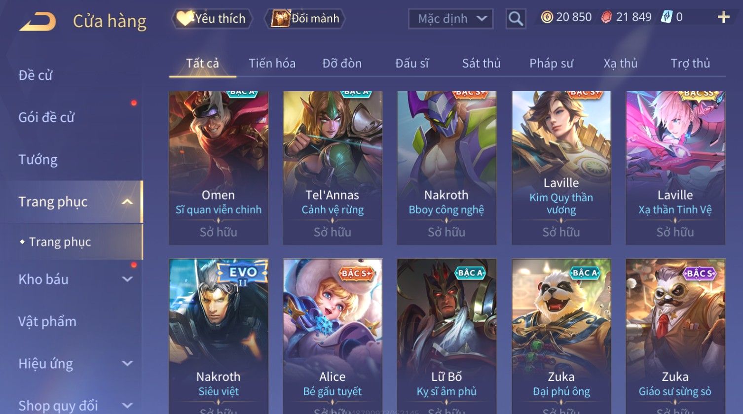 Nổi bật: Full Ngọc, Nhiều Skin SS Đẹp