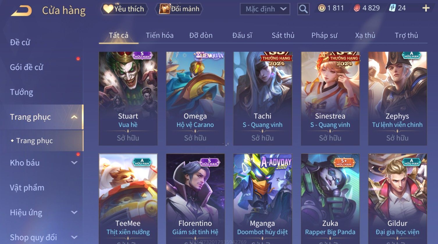 Trạng Thái: Nick có SĐT or Gmail Của Shop( Có Thể Thay Đổi)