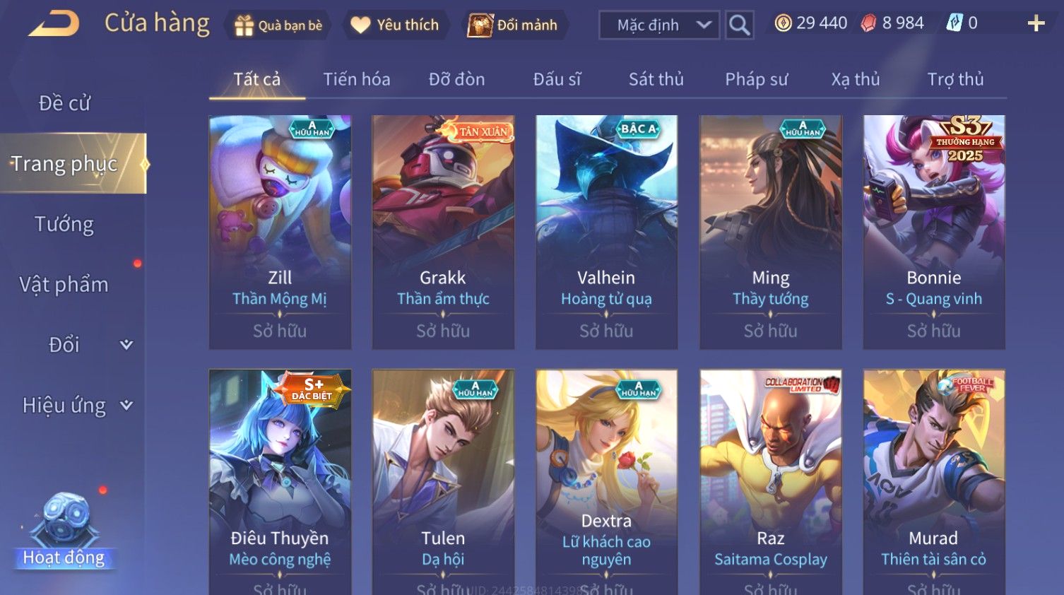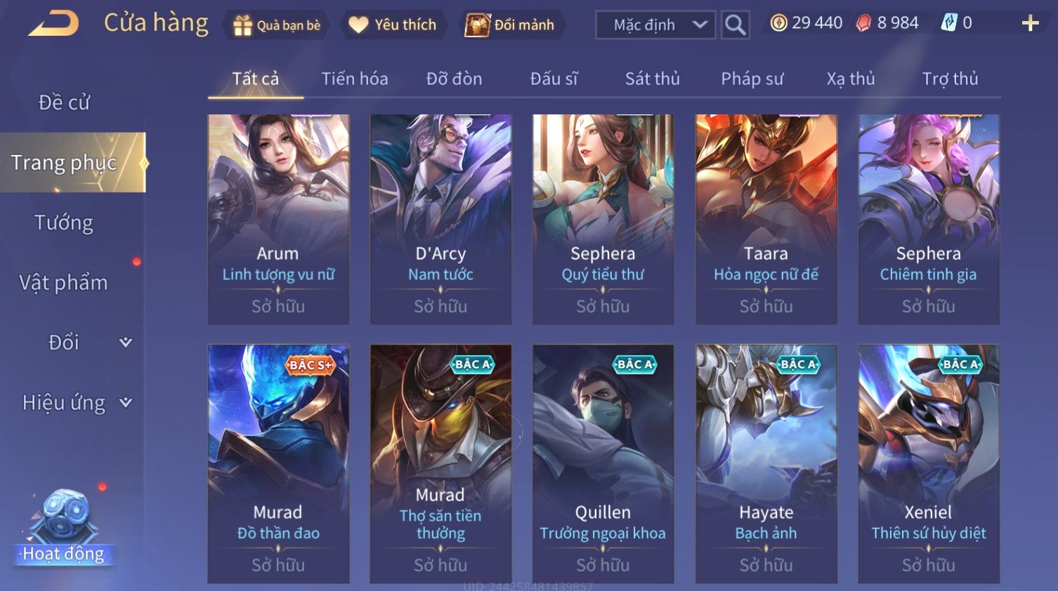 Trạng Thái: Nick có SĐT or Gmail Của Shop( Có Thể Thay Đổi)