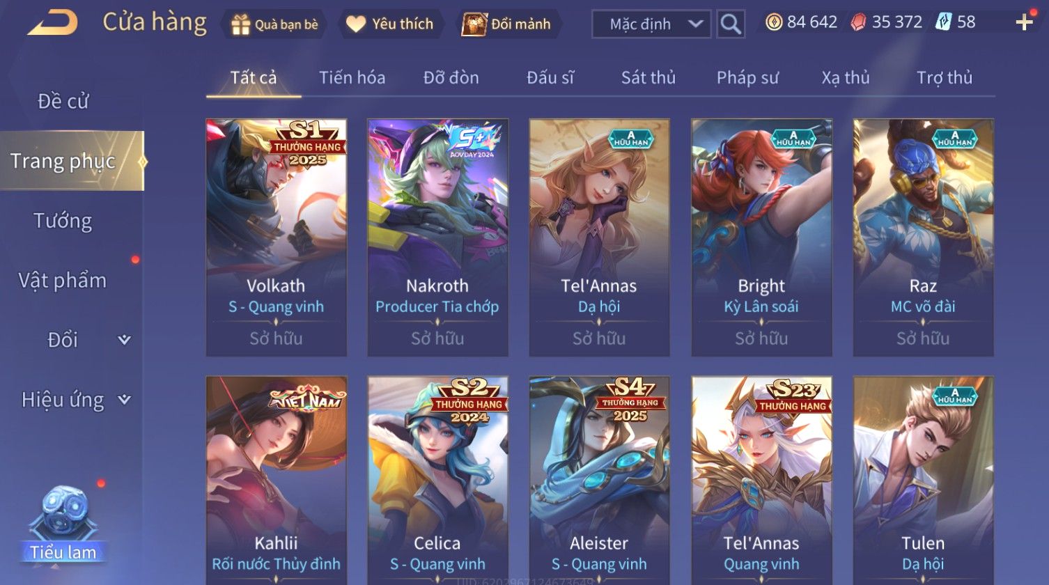 Trạng Thái: Nick có SĐT or Gmail Của Shop( Có Thể Thay Đổi)