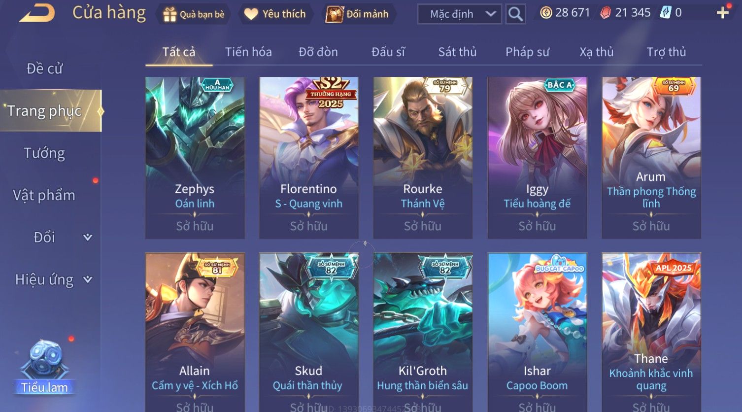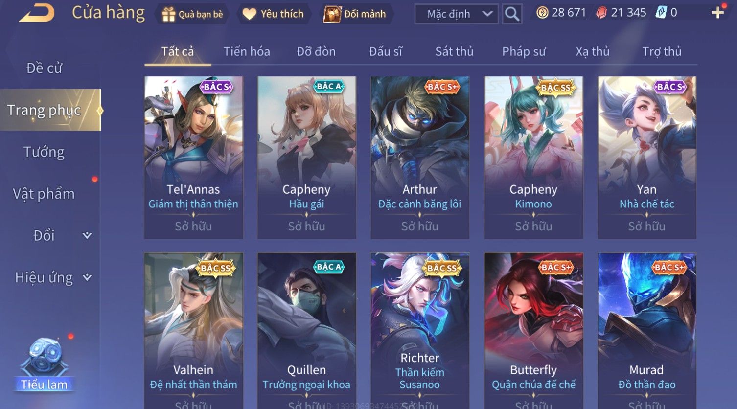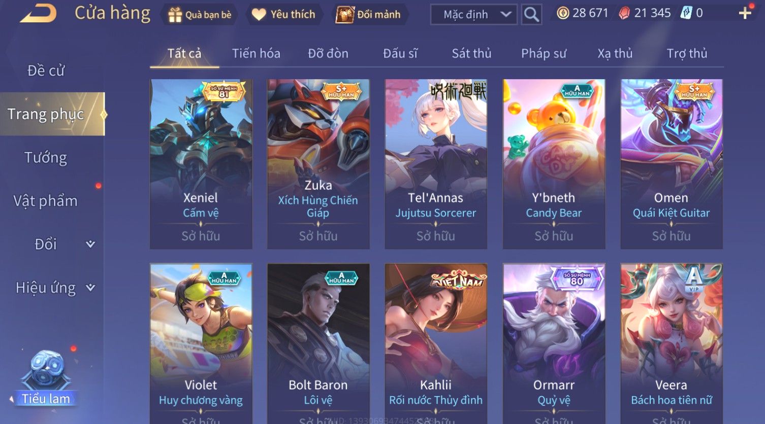 Nổi bật: Skin: Raz Chiến Thần Muay Thái×Valhein Đệ Nhất Thần Thám×Richter Thần Kiếm Susanoo×Capheny Kimono×Yorn Vệ Binh Ngân Hà×Bijan Hoàng Kim Cơ Giáp×Omen Quái Kiệt Guitar×