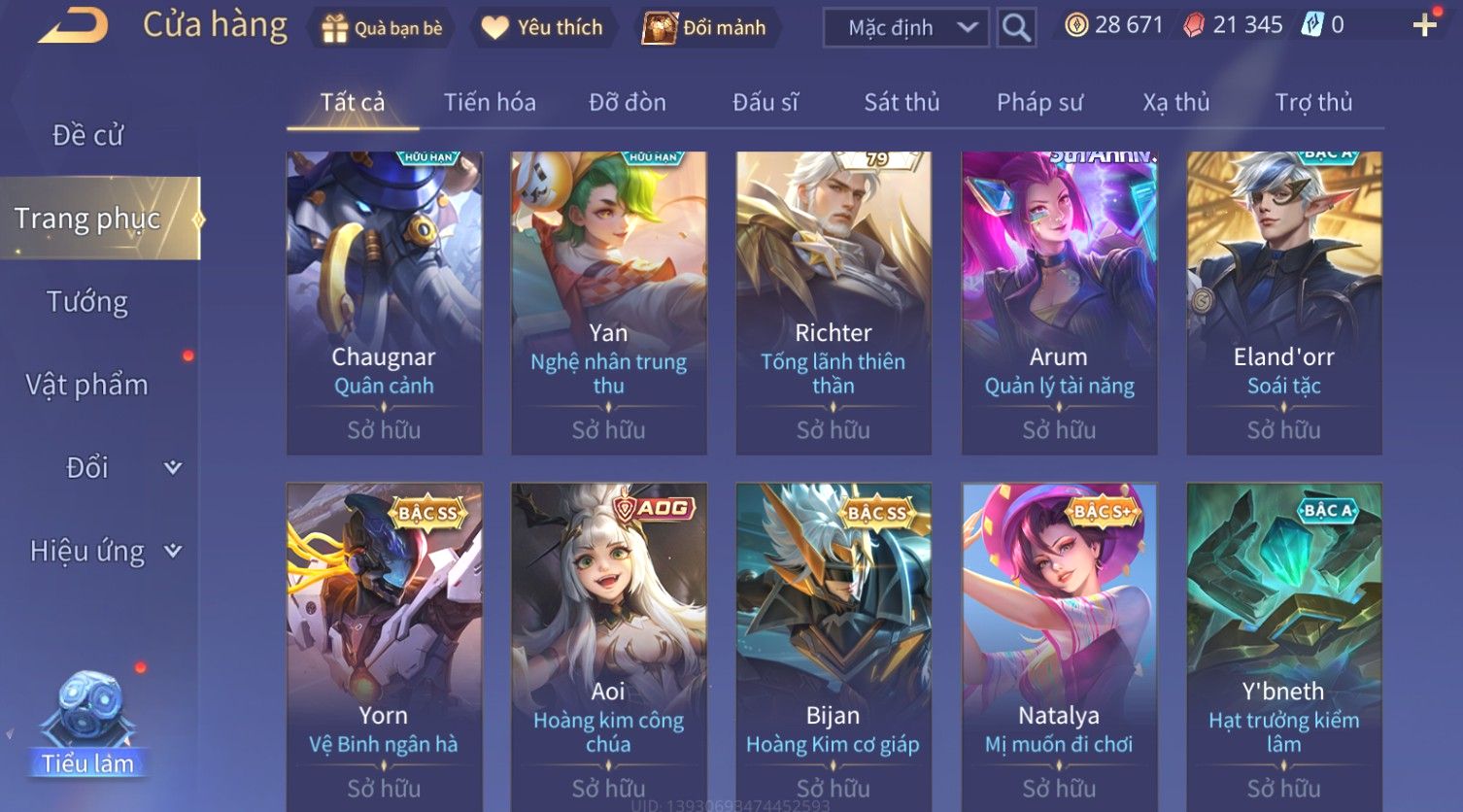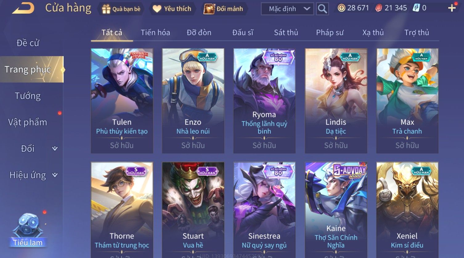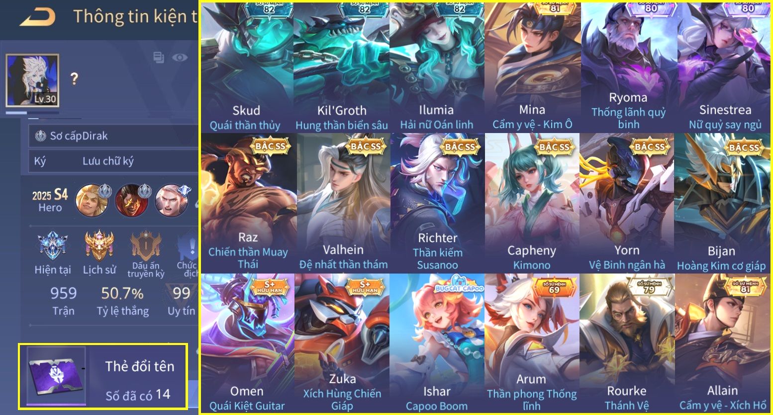 Nổi bật: Skin: Raz Chiến Thần Muay Thái×Valhein Đệ Nhất Thần Thám×Richter Thần Kiếm Susanoo×Capheny Kimono×Yorn Vệ Binh Ngân Hà×Bijan Hoàng Kim Cơ Giáp×Omen Quái Kiệt Guitar×