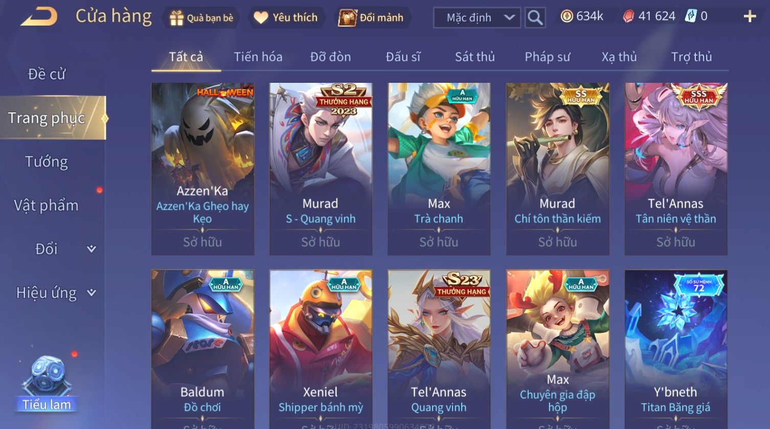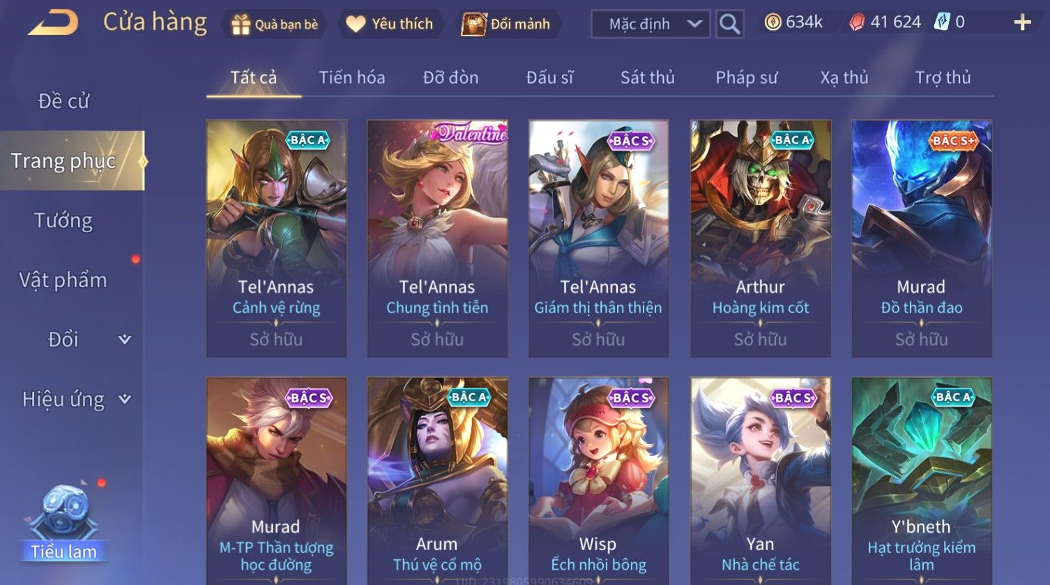 Nổi bật: Skin: Nakroth Thứ Nguyên Vệ Thần×Tel'Annas Tân Niên Vệ Thần×Butterfly Phượng Cửu Thiên×Cùng Dàn SS VIP
