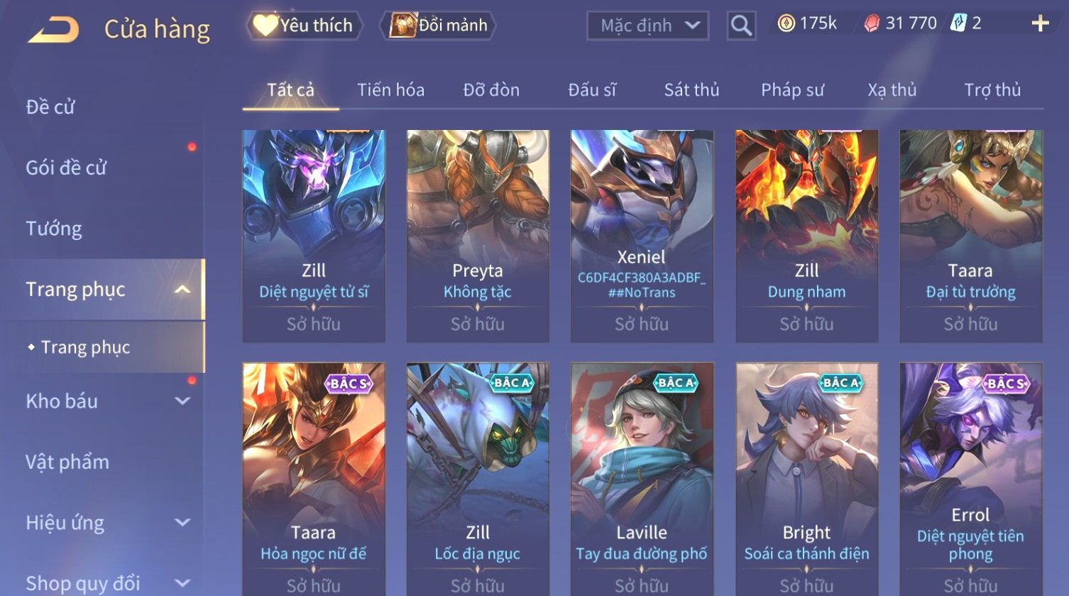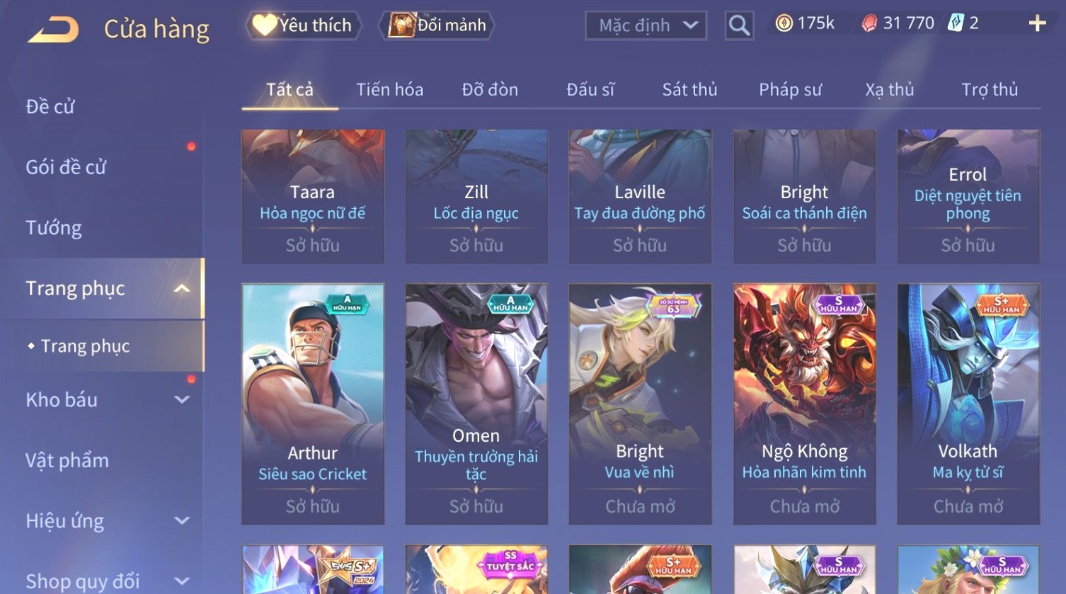 Nổi bật: Skin: Triệu Vân Minh Chung Long Đế×Raz Chiến Thần Muay Thái×Violet Thần Long Tỷ Tỷ×Tulen Tân Niên Vệ Thần×
