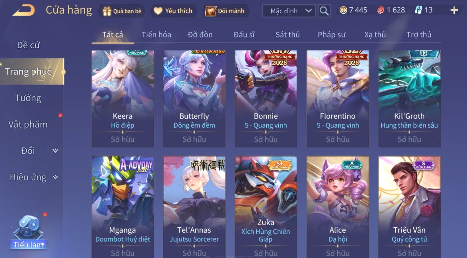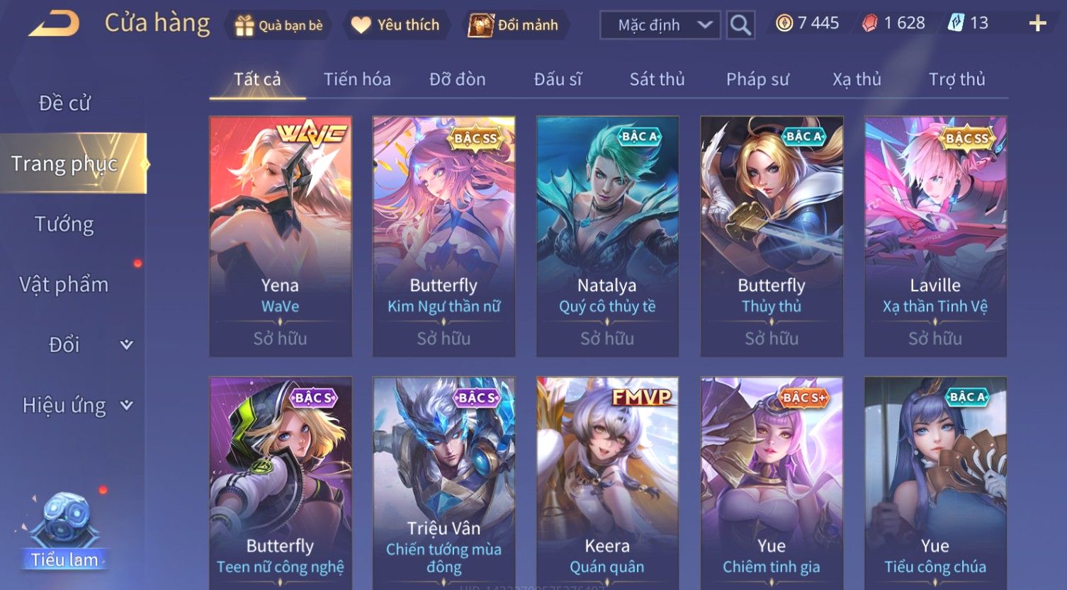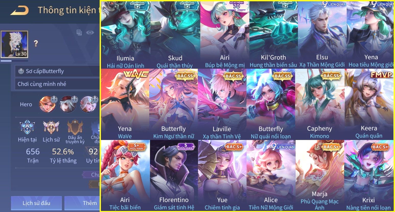 Nổi bật: Skin: Yena WaVe×Butterfly Kim Ngư Thần Nữ×Laville Xạ thần Tinh Vệ×Capheny Kimono×Florentino Giám Sát Tinh Hệ×Butterfly Nữ Quái Nổi Loạn×