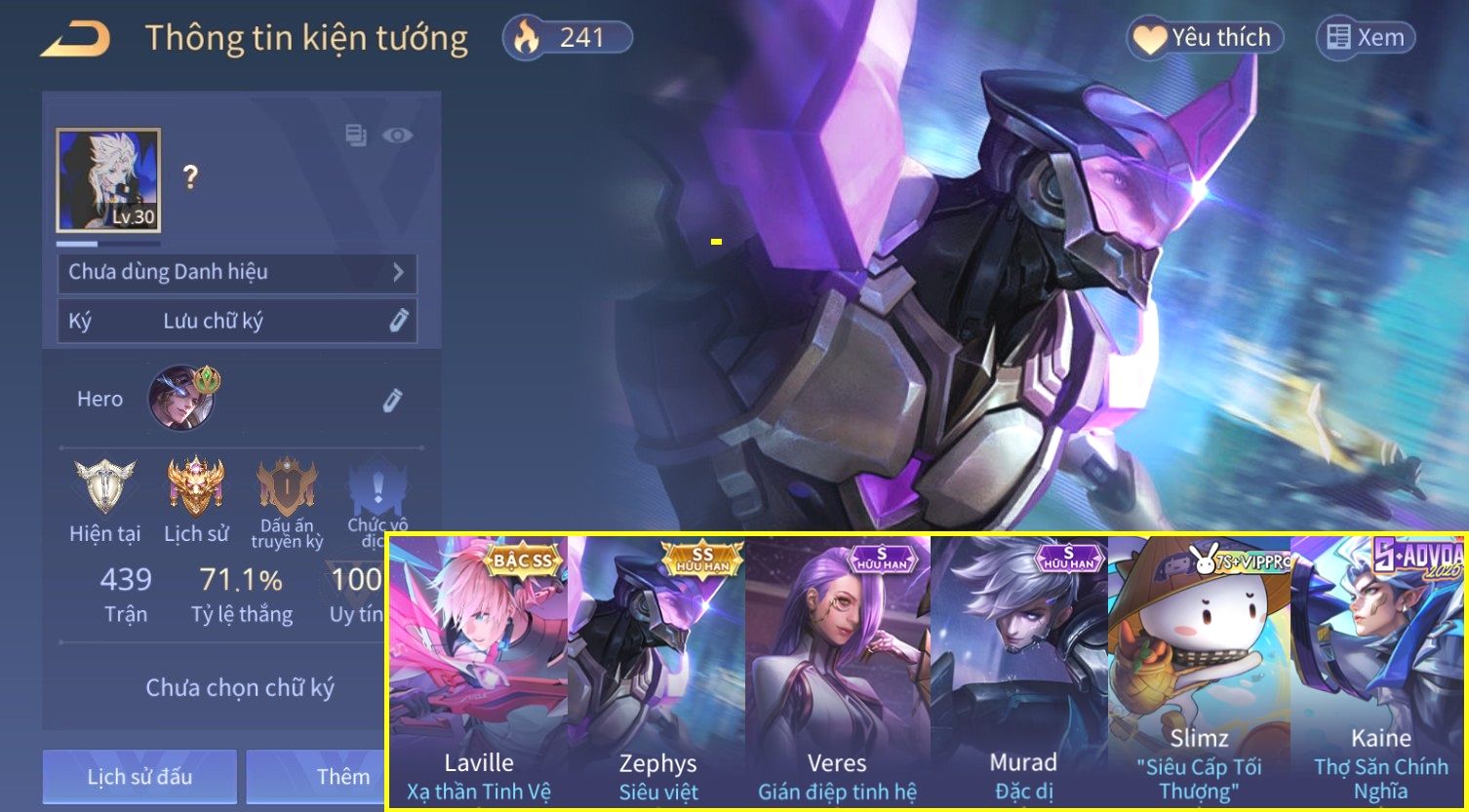Nổi bật: Skin: Zephys Siêu Việt×Laville Xạ thần Tinh Vệ×Veres Gián Điệp Tinh Hệ×Murad Đặc Dị×