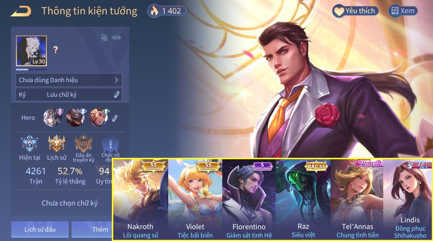 Nổi bật: Skin: Nakroth Lôi Quang Sứ×Raz Siêu Việt×Florentino Giám Sát Tinh Hệ×Violet Tiệc Bãi Biển×