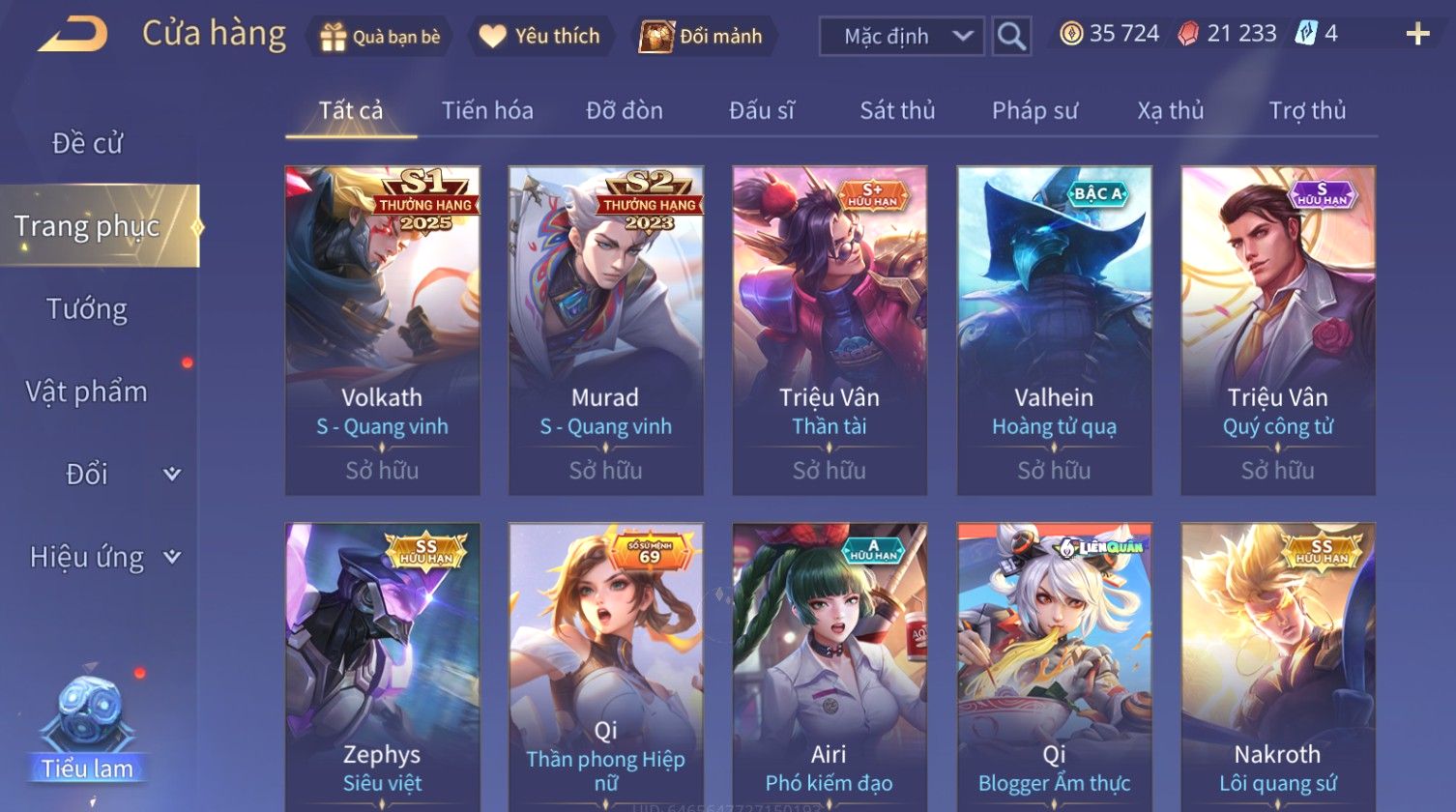 Nổi bật: Skin: Airi Bích Hải Thánh Nữ×Allain Tuyết Sơn Song Kiếm×Nakroth Lôi Quang Sứ×Zephys Siêu Việt×