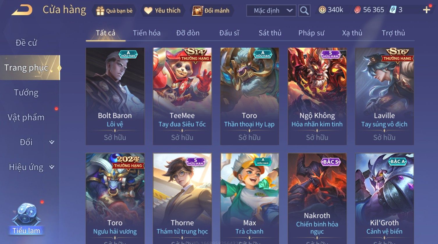 Trạng Thái: Nick có SĐT or Gmail Của Shop( Có Thể Thay Đổi)