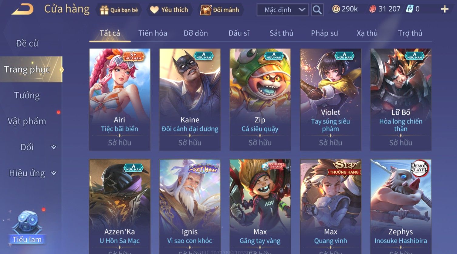 Nổi bật: Skin: Raz Chiến Thần Muay Thái×Yorn Long Thần Soái×Tulen Tân Niên Vệ Thần×Maloch Đại Tướng Rô Bốt×Ngộ Không Tân Niên Võ Thần×