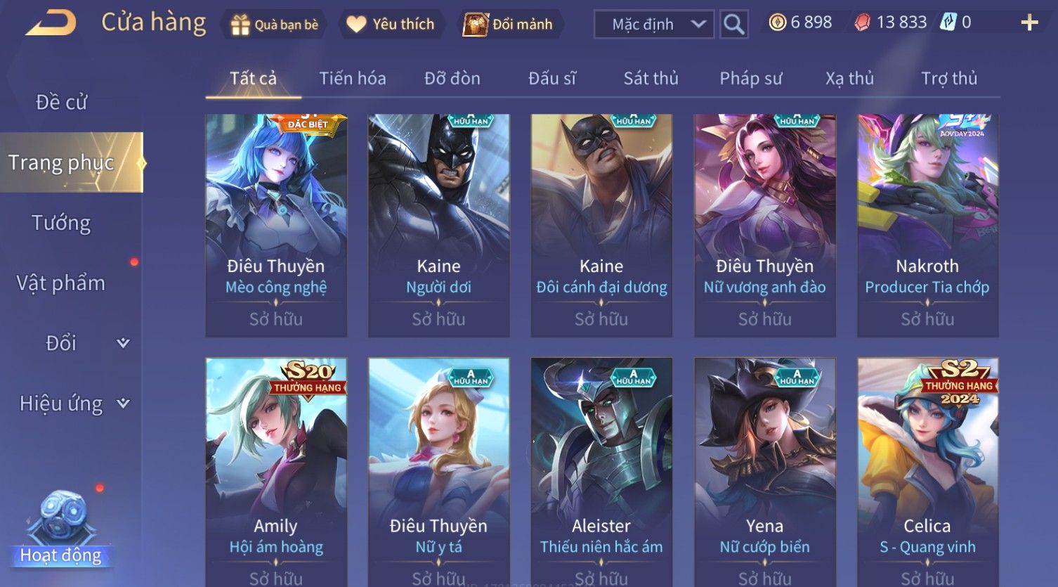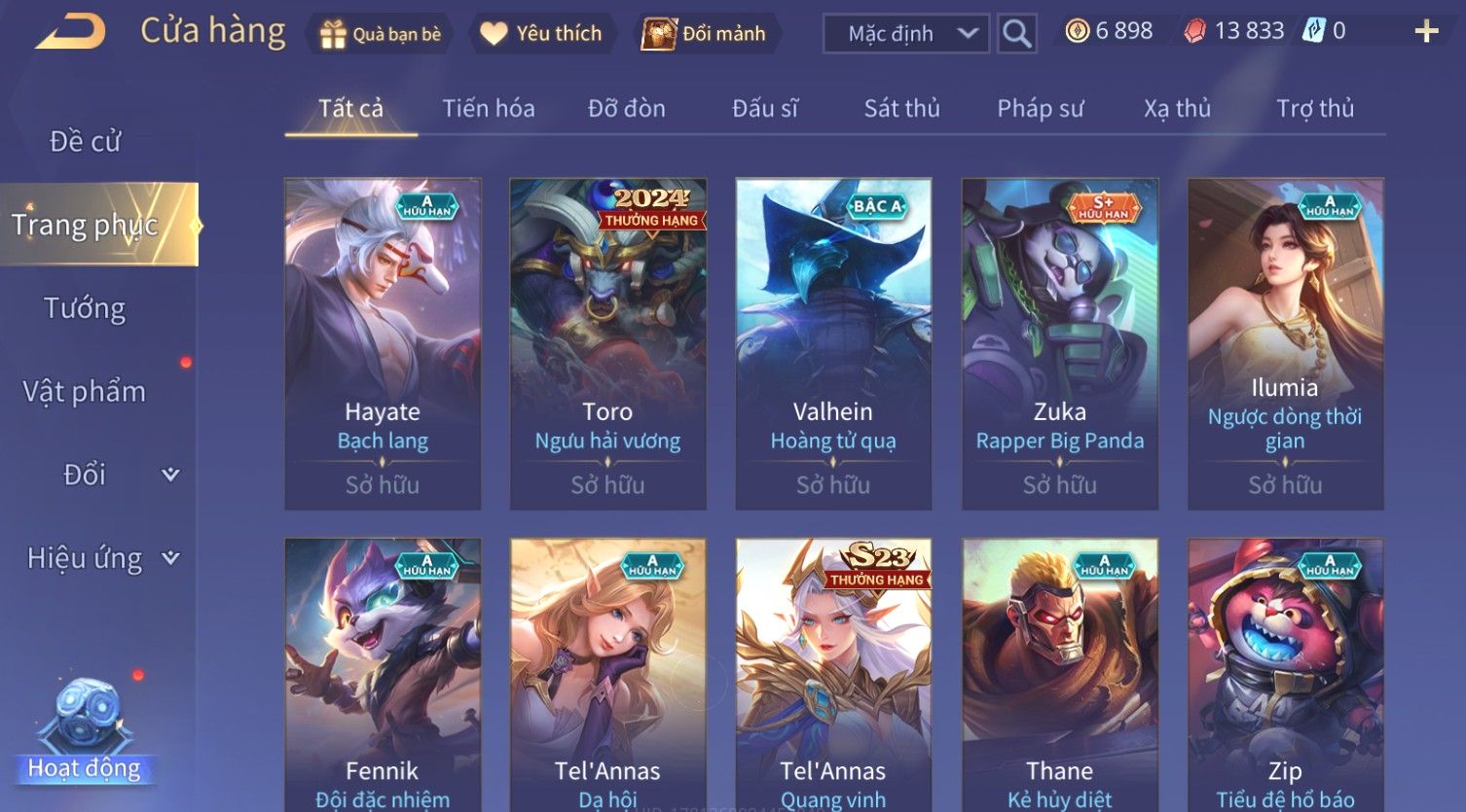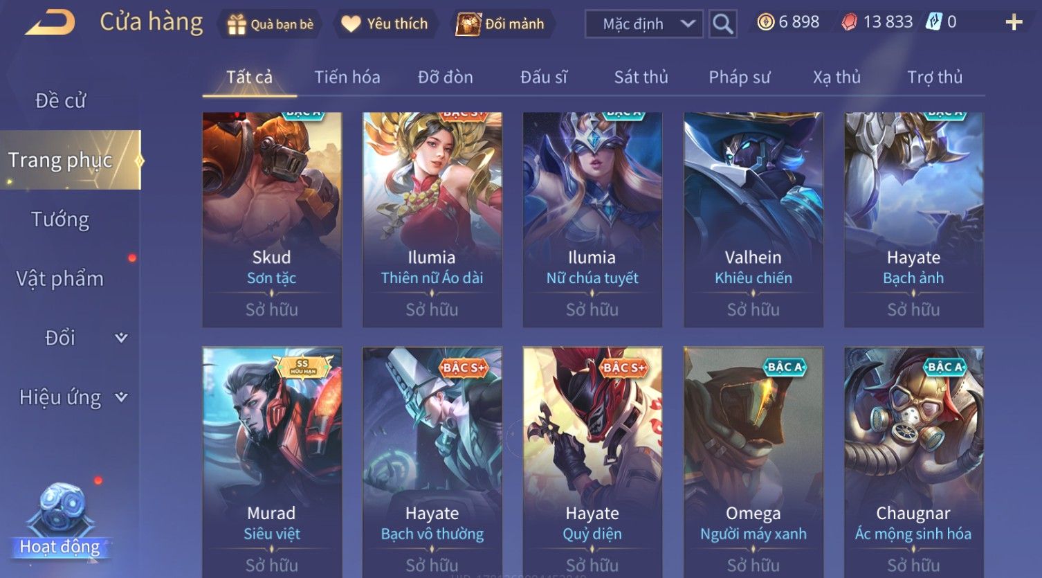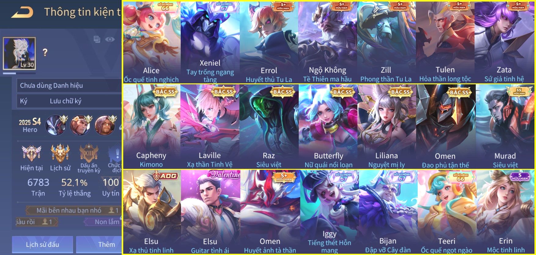 Nổi bật: Skin: Capheny Kimono×Raz Siêu Việt×Laville Xạ thần Tinh Vệ×Butterfly Nữ Quái Nổi Loạn×Omen Đao Phủ Tận Thế×Elsu Guitar Tình Ái×Full Ngọc, Nhiều Skin SS Đẹp