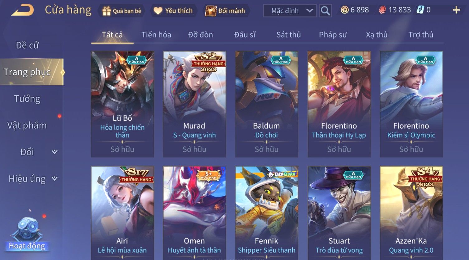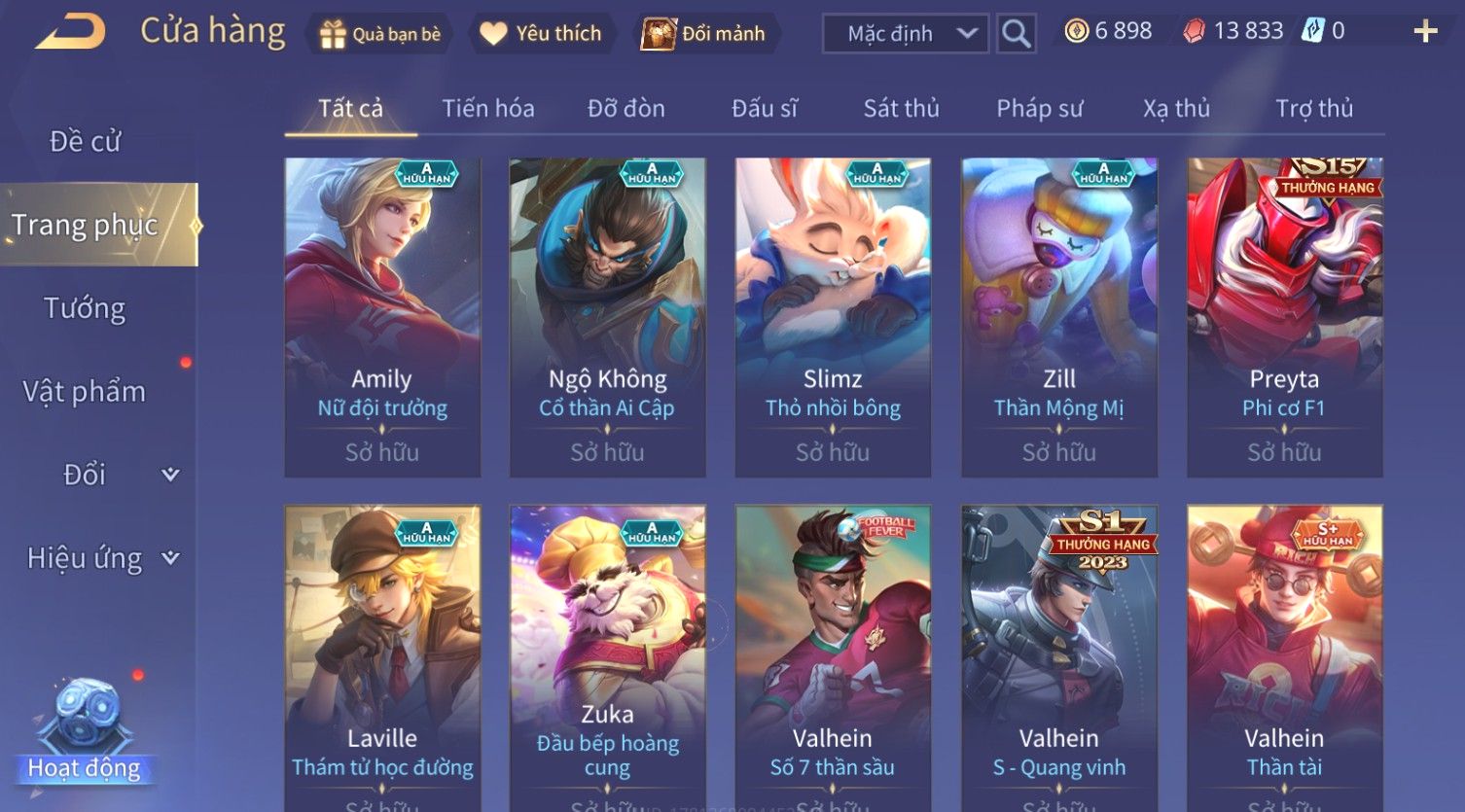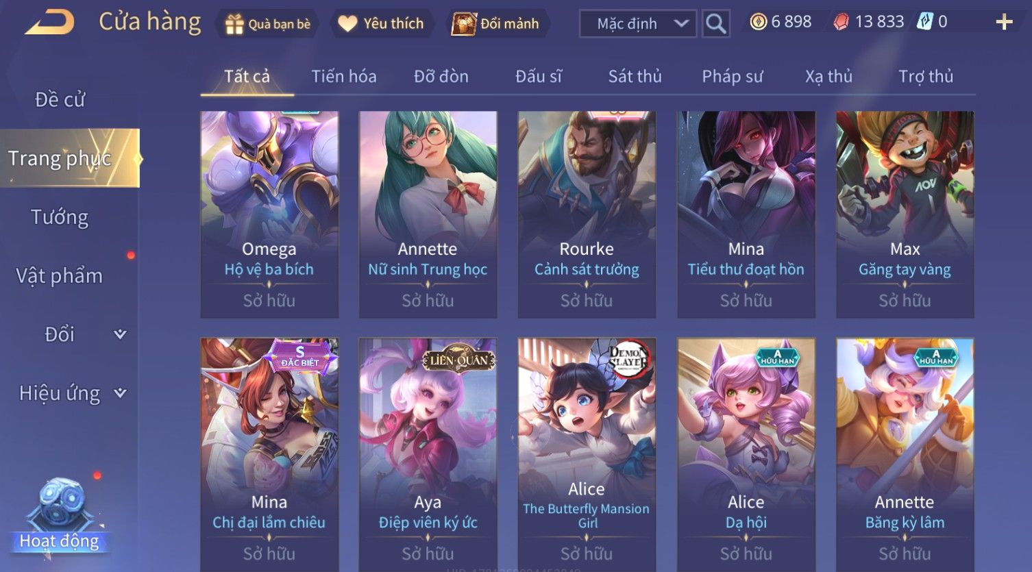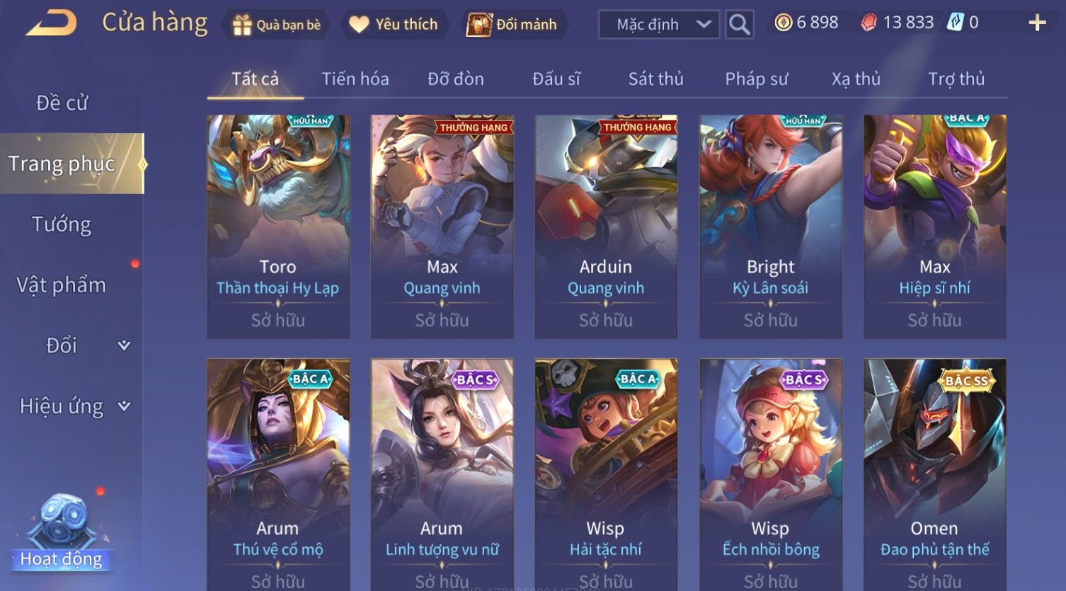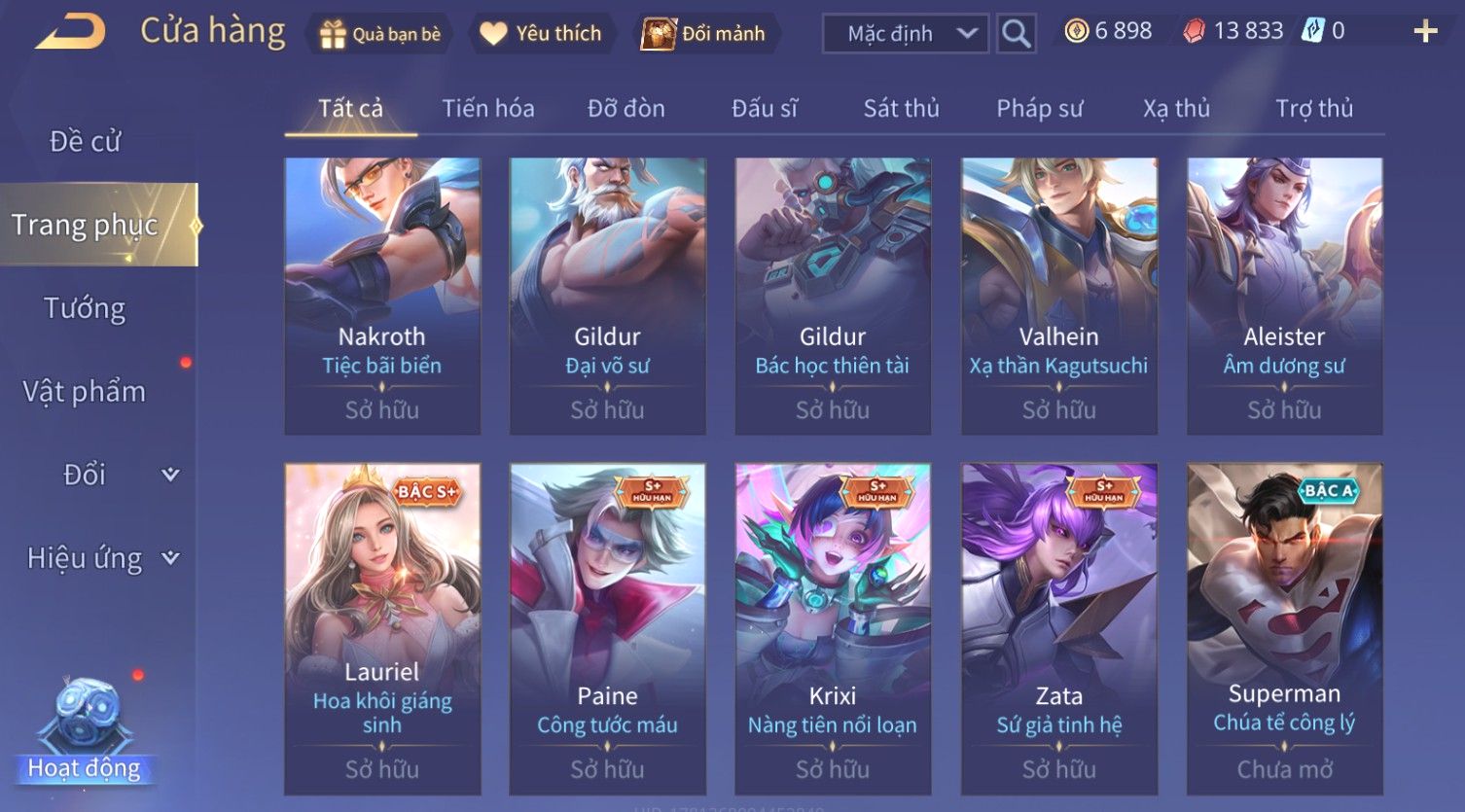 Nổi bật: Skin: Capheny Kimono×Raz Siêu Việt×Laville Xạ thần Tinh Vệ×Butterfly Nữ Quái Nổi Loạn×Omen Đao Phủ Tận Thế×Elsu Guitar Tình Ái×Full Ngọc, Nhiều Skin SS Đẹp