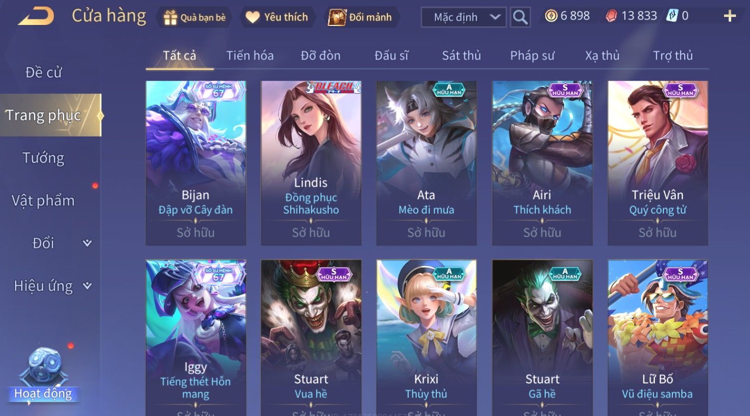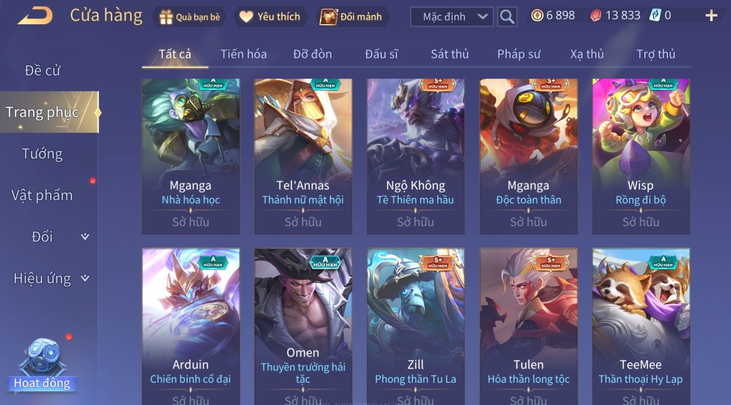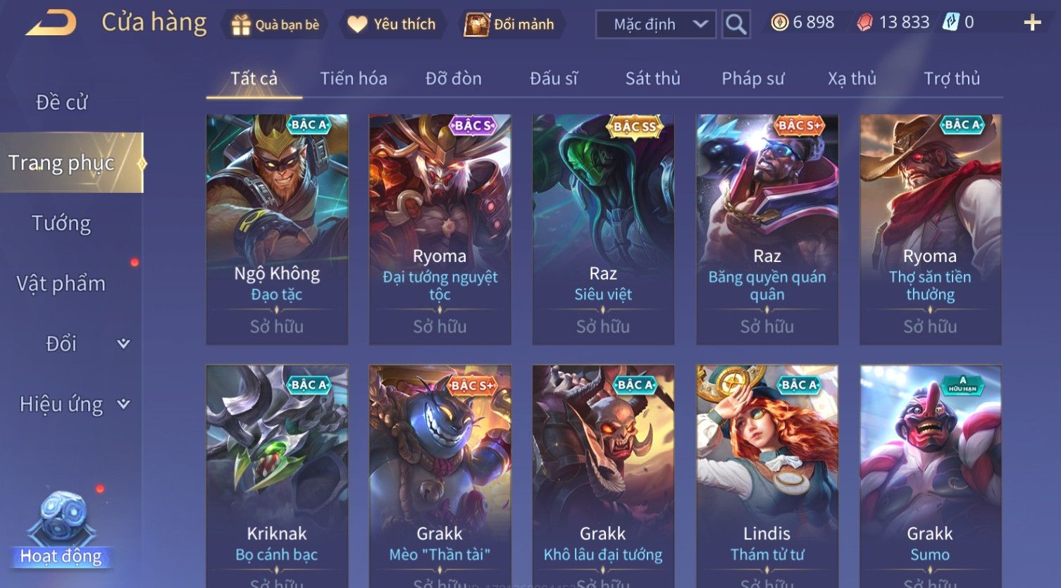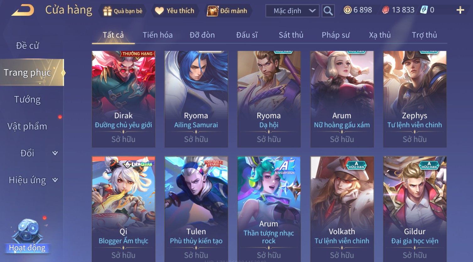 Nổi bật: Skin: Capheny Kimono×Raz Siêu Việt×Laville Xạ thần Tinh Vệ×Butterfly Nữ Quái Nổi Loạn×Omen Đao Phủ Tận Thế×Elsu Guitar Tình Ái×Full Ngọc, Nhiều Skin SS Đẹp