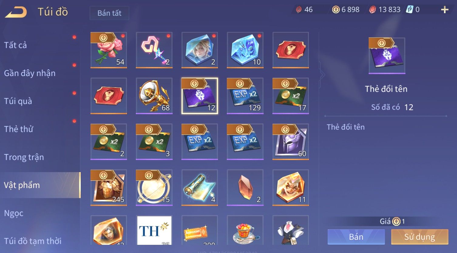 Trạng Thái: Nick có SĐT or Gmail Của Shop( Có Thể Thay Đổi)