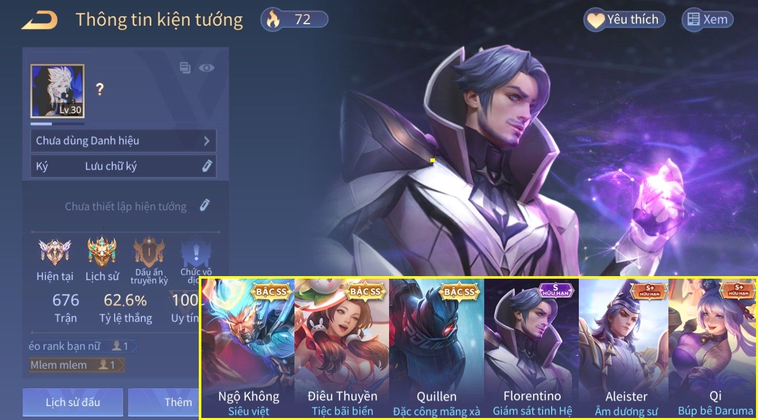Nổi bật: Skin: Ngộ Không Siêu Việt×Điêu Thuyền Tiệc Bãi Biển×Quillen Đặc Công Mãng Xà×Florentino Giám Sát Tinh Hệ×