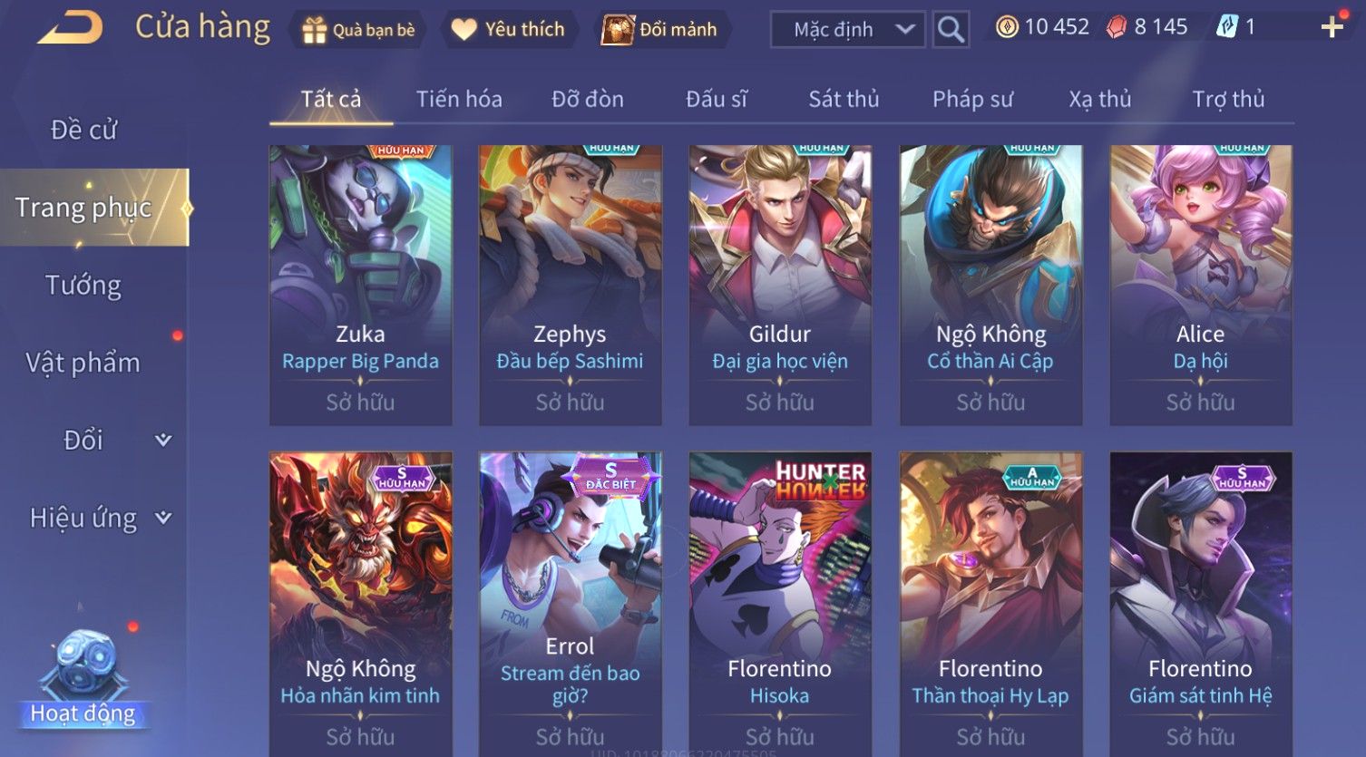 Nổi bật: Skin: Quillen Đặc Công Mãng Xà×Florentino Giám Sát Tinh Hệ×Ngộ Không Hỏa Nhãn Kim Tinh×