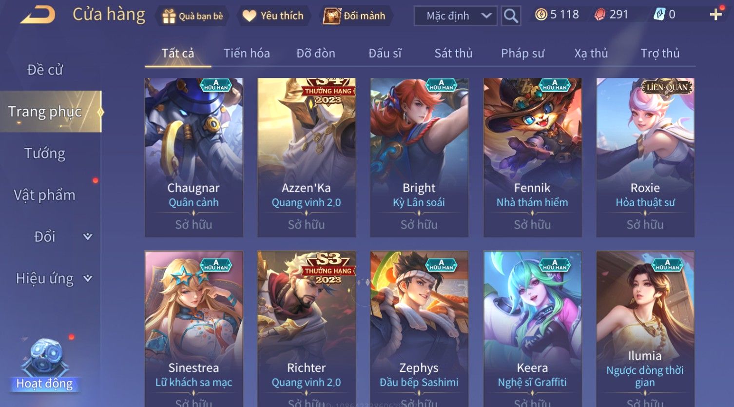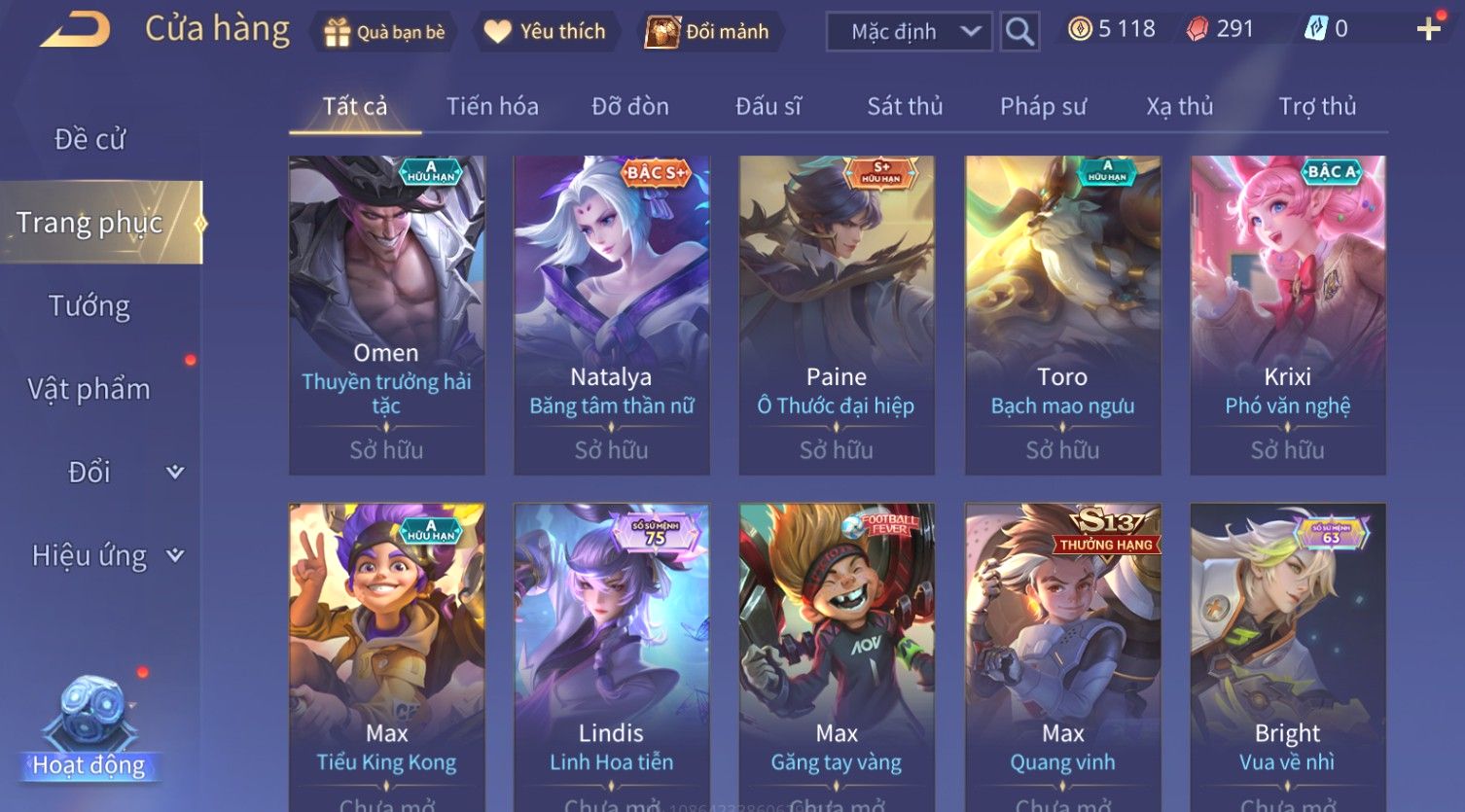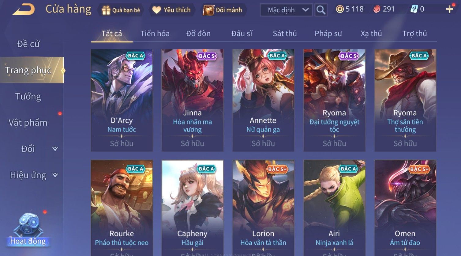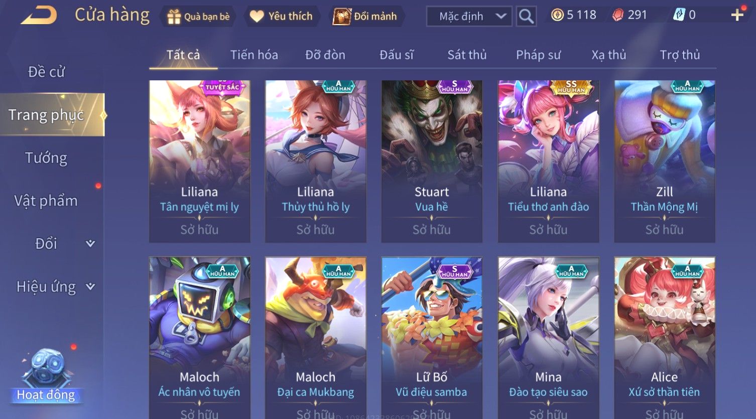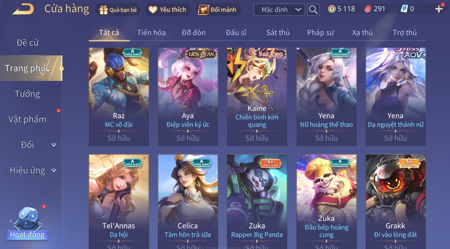 Nổi bật: Skin: Liliana Tân Nguyệt Mị Ly×Liliana Tiểu Thơ Anh Đào×Violet Thần Long Tỷ Tỷ×Ngộ Không Thần Giáp Xích Diễm×Raz Siêu Việt×Veres Phù Thủy Trang Điểm×Grakk Đi Vào Lòng Đất×Tel'Annas Ô Thước Tiên Nữ×Paine Ô Thước Đại Hiệp×