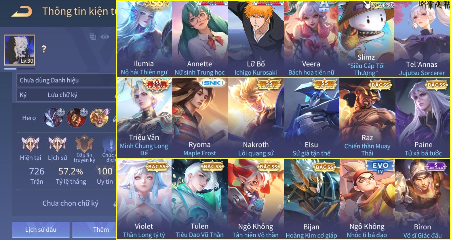 Trạng Thái: Nick có SĐT or Gmail Của Shop( Có Thể Thay Đổi)