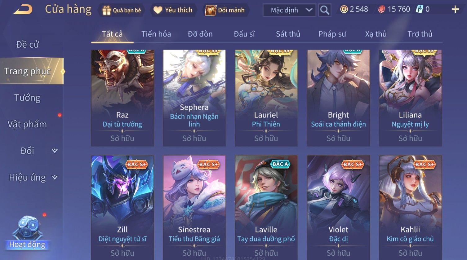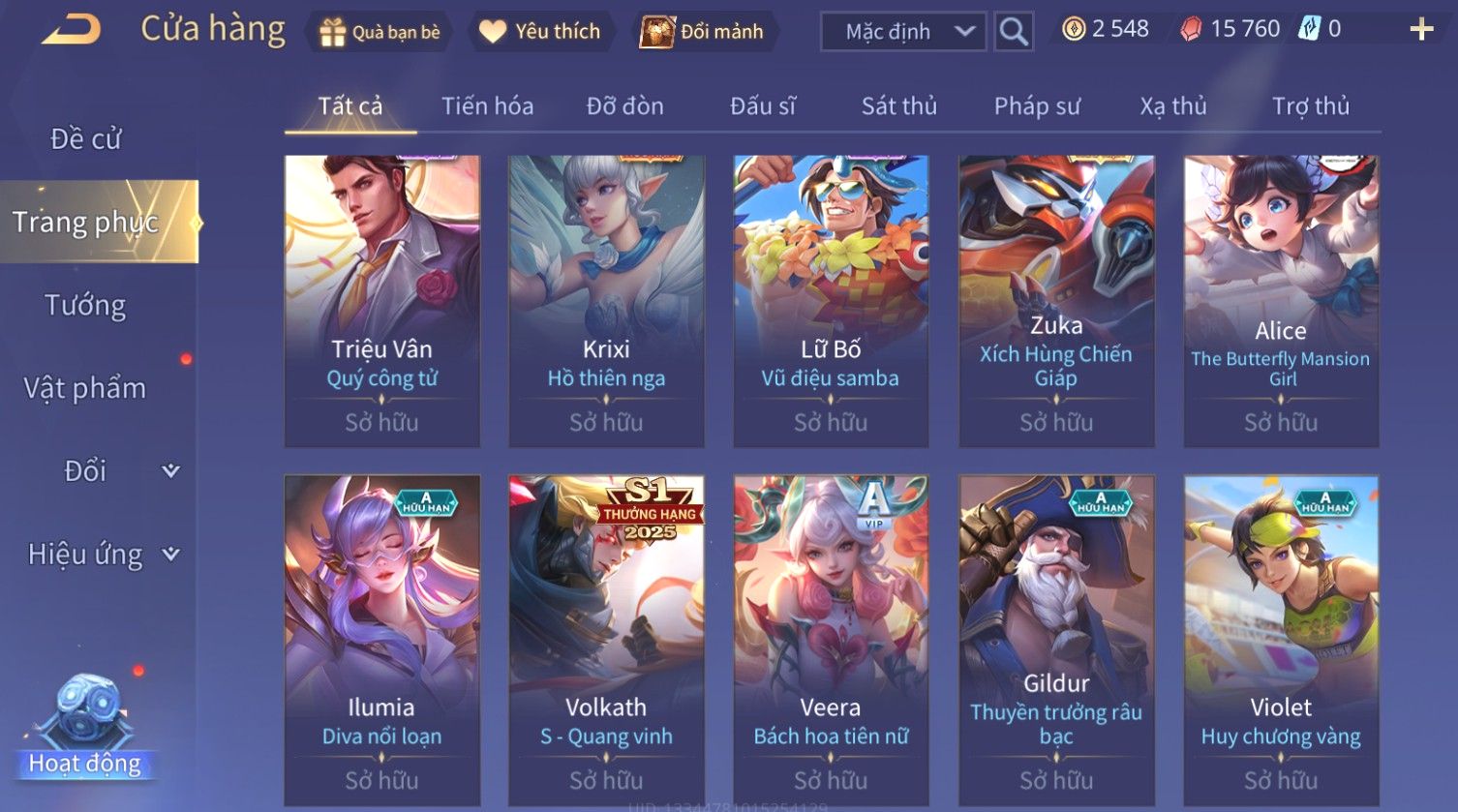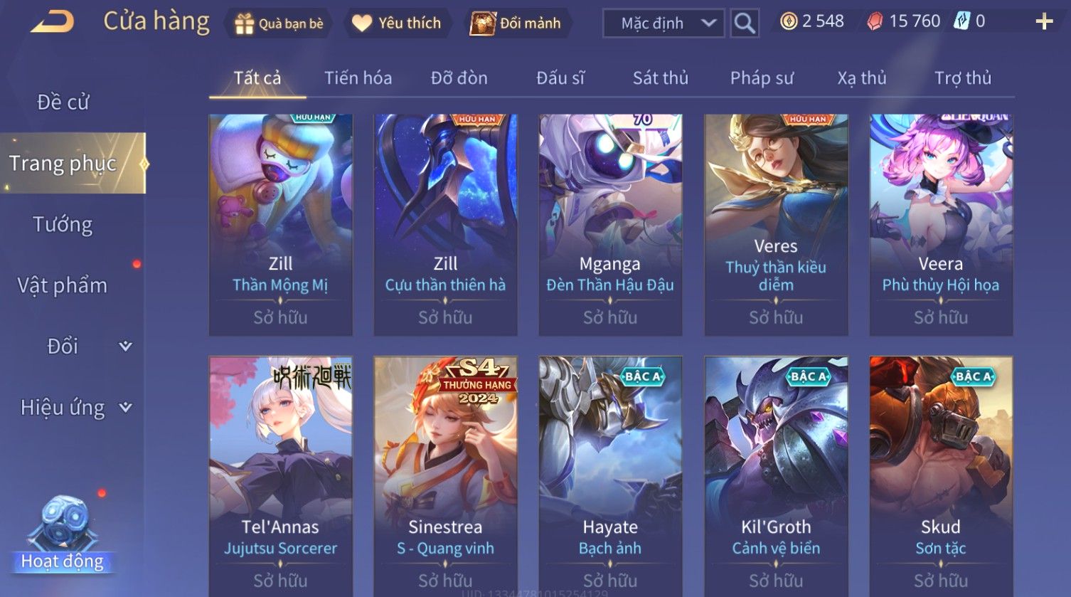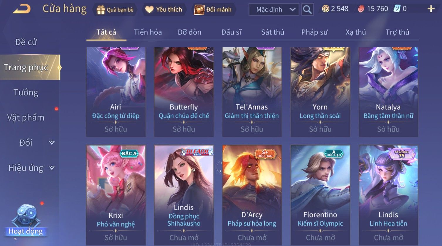 Nổi bật: Skin: Yorn Long Thần Soái×Butterfly Kim Ngư Thần Nữ×Helen Bé hoa xuân×Sephera ×Yena WaVe×