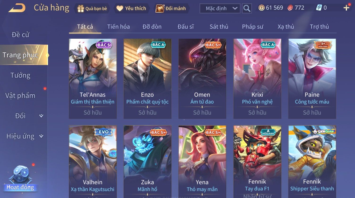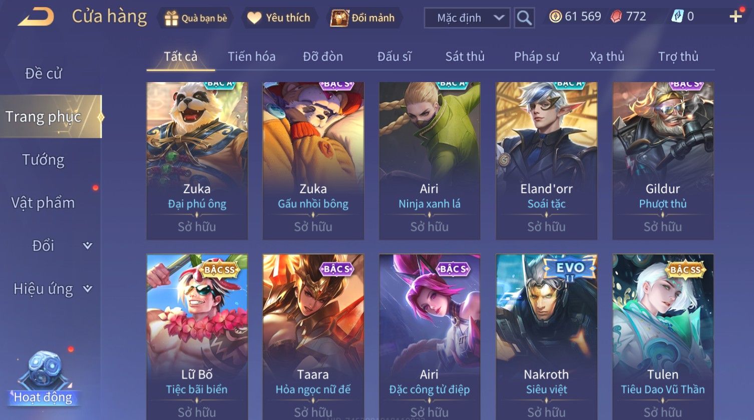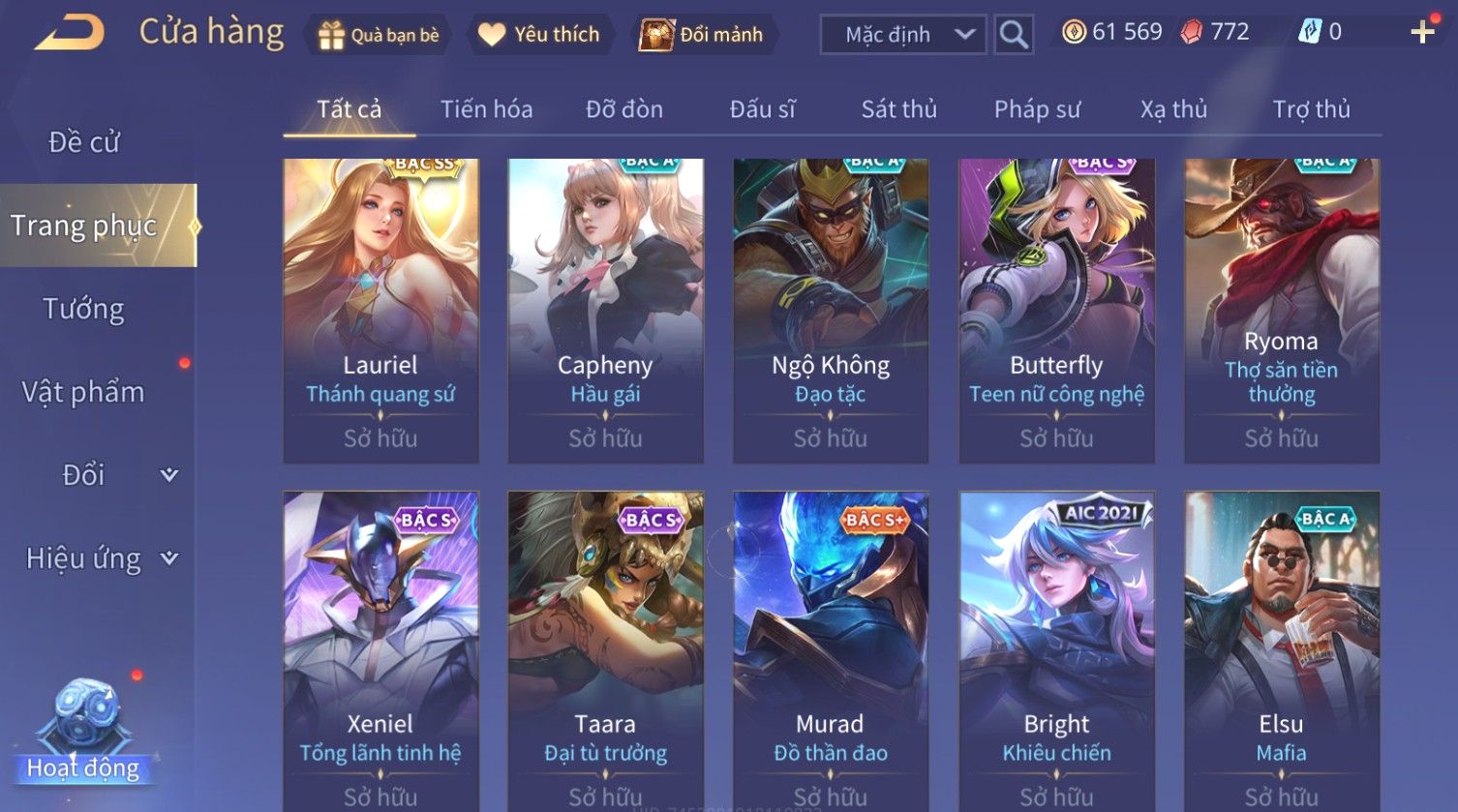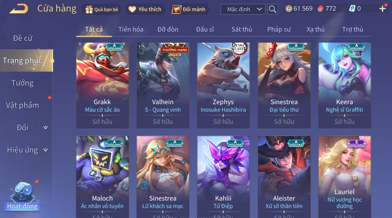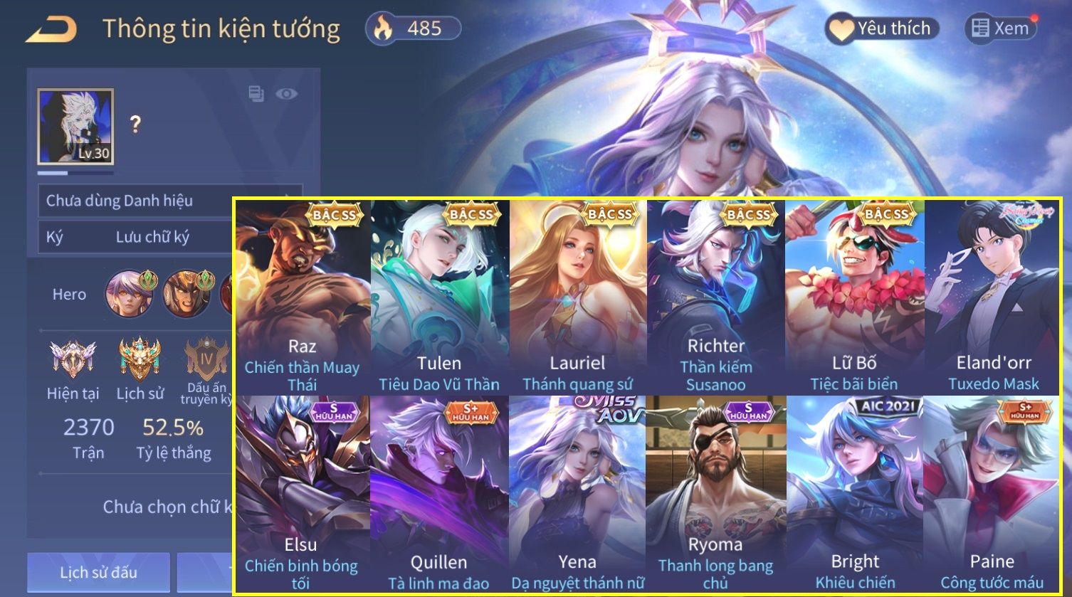 Nổi bật: Skin: Raz Chiến Thần Muay Thái×Tulen Tiêu Dao Vũ Thần×Lauriel Thánh Quang Sứ×Richter Thần Kiếm Susanoo×Eland'orr Tuxedo Mask×Ryoma Thanh Long Bang Chủ×Paine Công Tước Máu×
