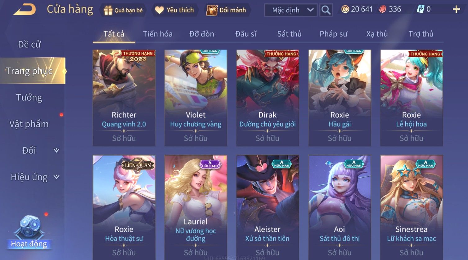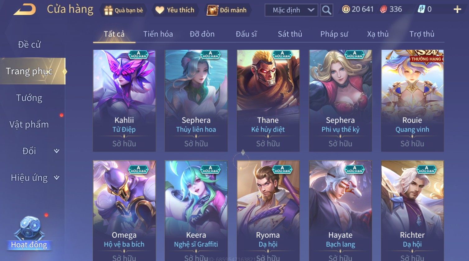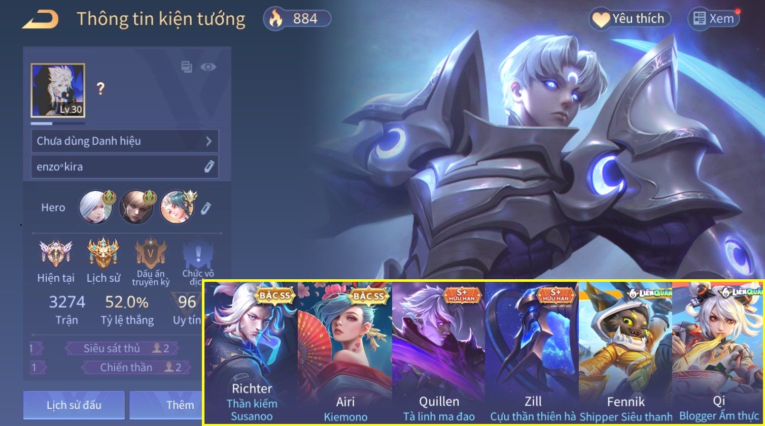 Nổi bật: Skin: Airi Kiemono×Richter Thần Kiếm Susanoo×Quilen Tà Linh Ma Đao×Zill Cựu Thần Thiên Hà×