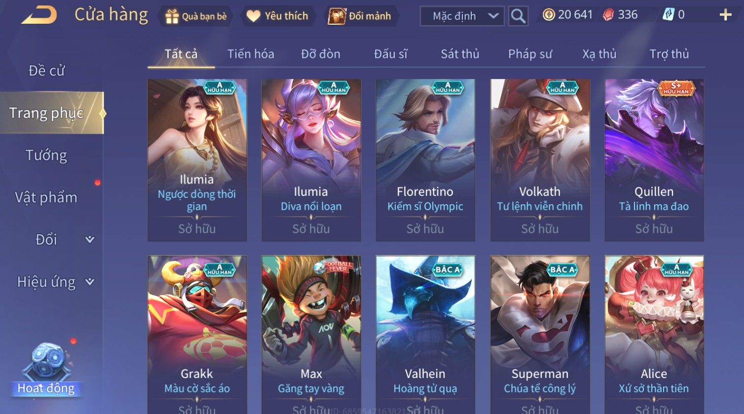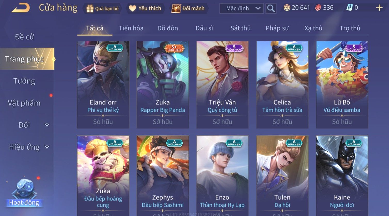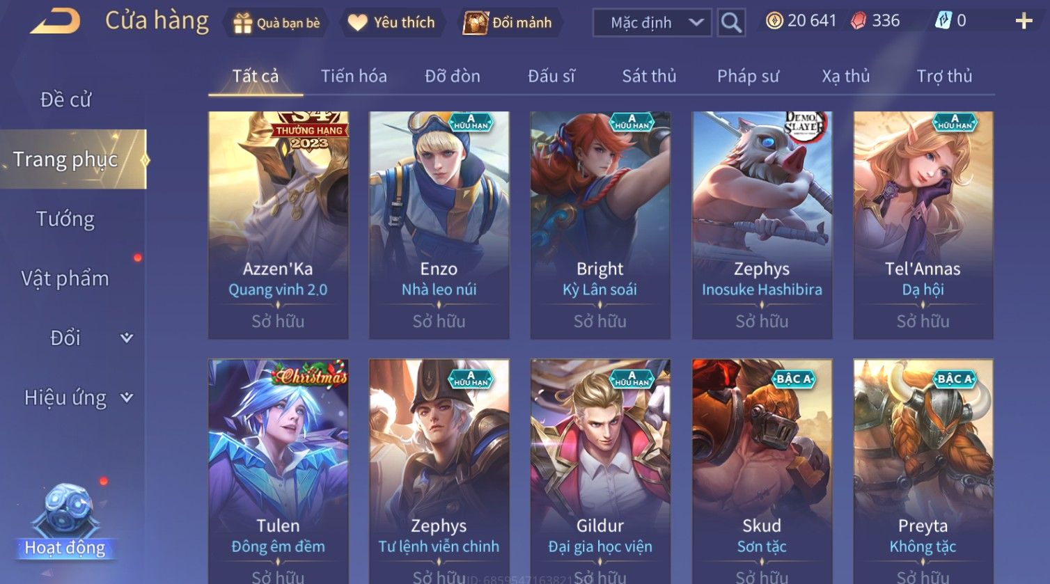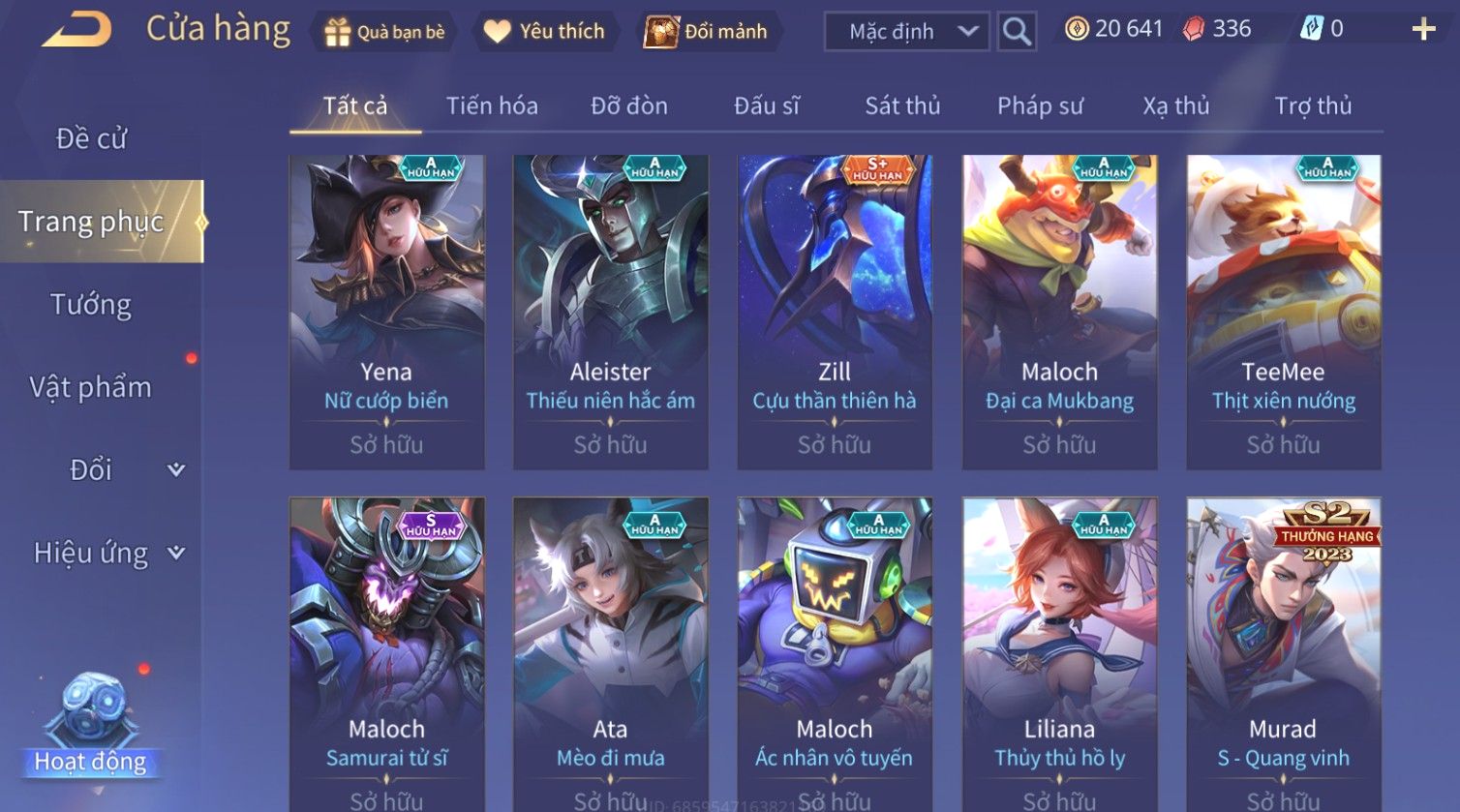 Nổi bật: Skin: Airi Kiemono×Richter Thần Kiếm Susanoo×Quilen Tà Linh Ma Đao×Zill Cựu Thần Thiên Hà×