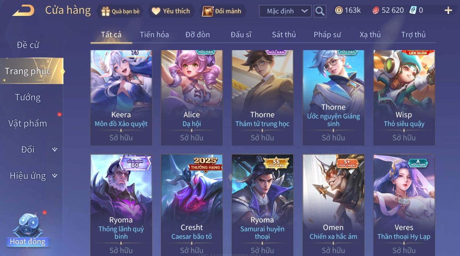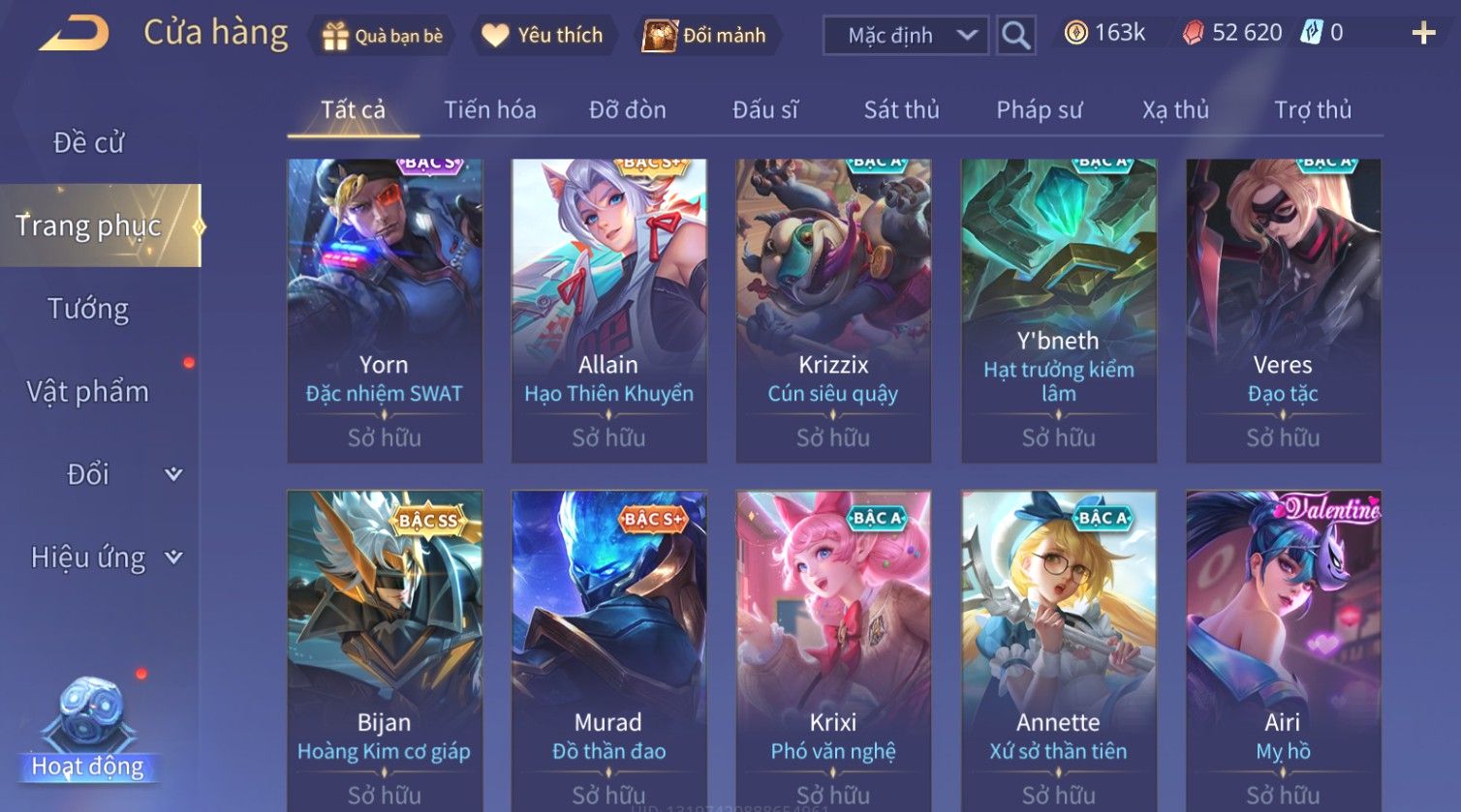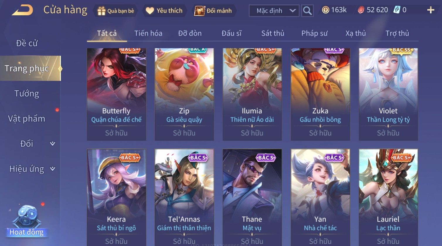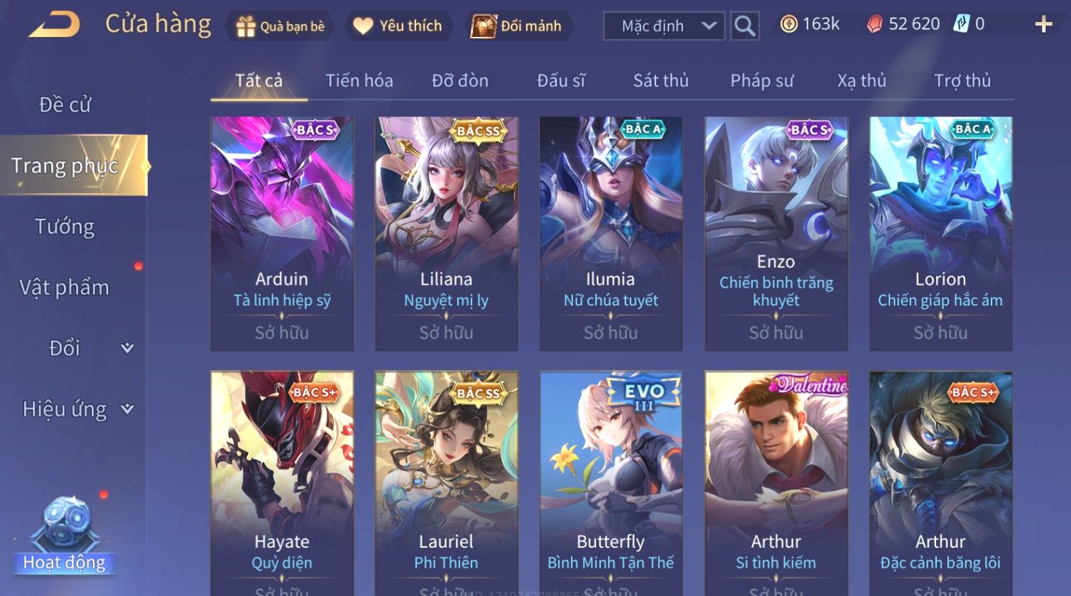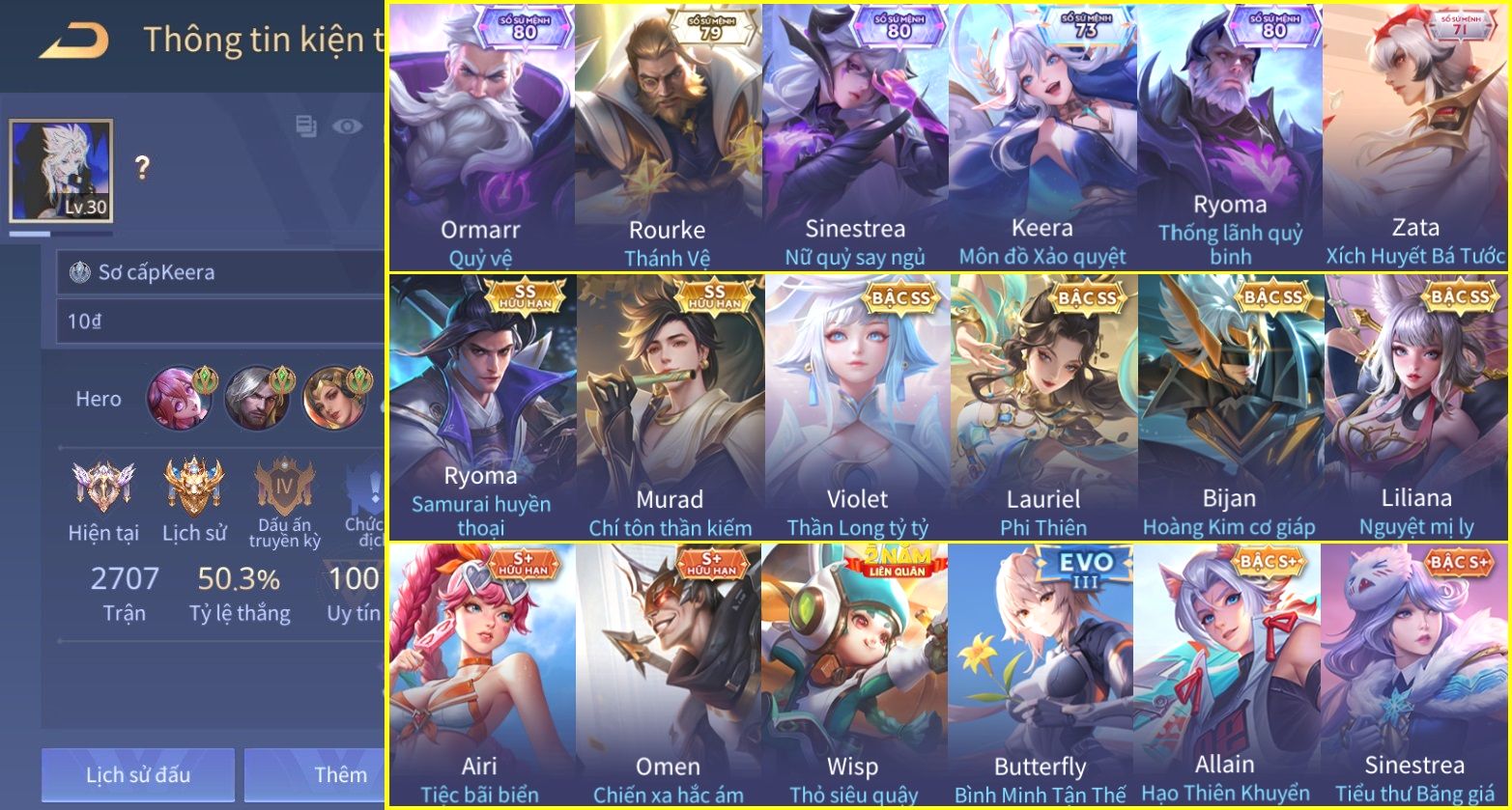 Nổi bật: Skin: Ryoma Sumarai Huyền Thoại×Murad Chí Tôn Thần Kiếm×Violet Thần Long Tỷ Tỷ×Lauriel Phi Thiên×Bijan Hoàng Kim Cơ Giáp×Full Ngọc, Nhiều Skin SS Đẹp