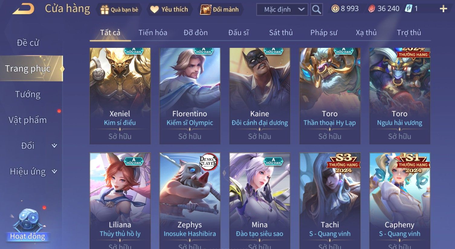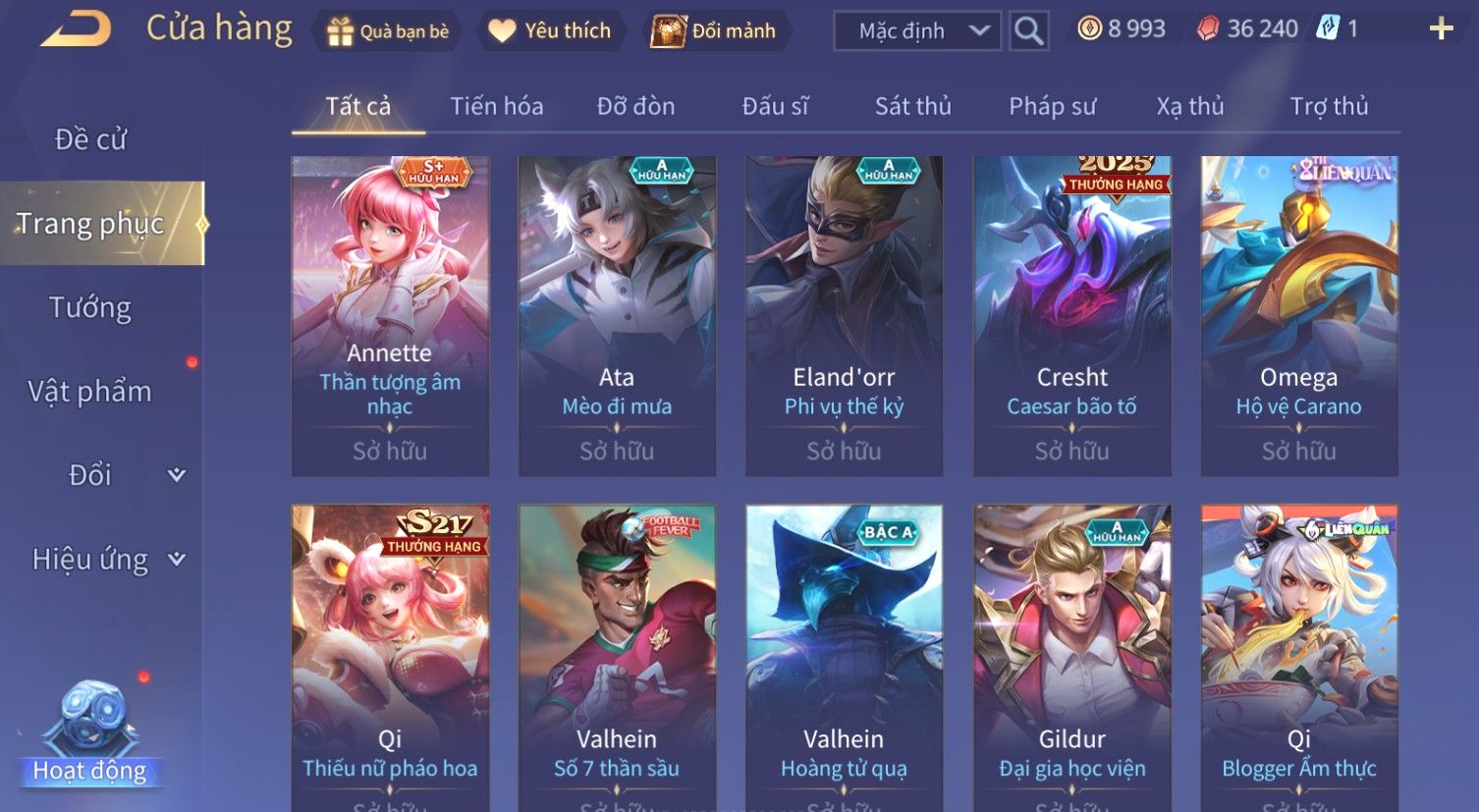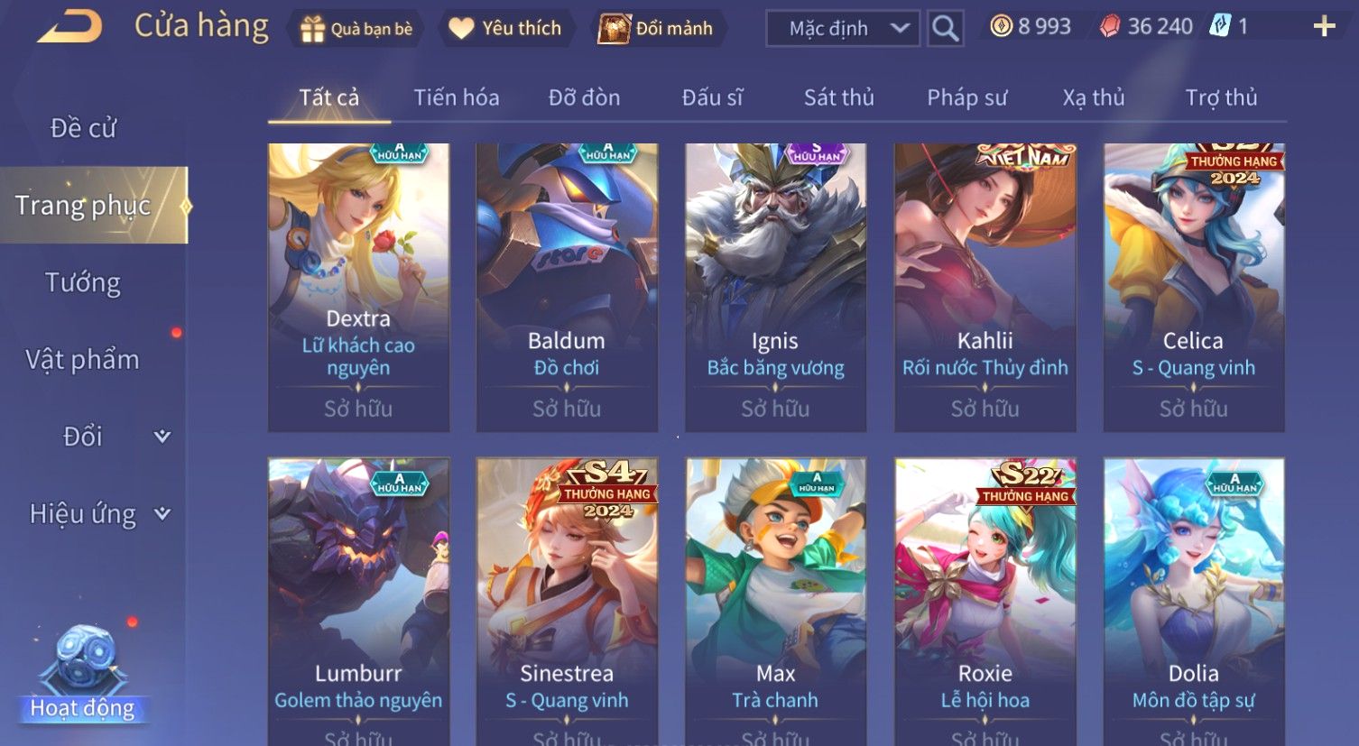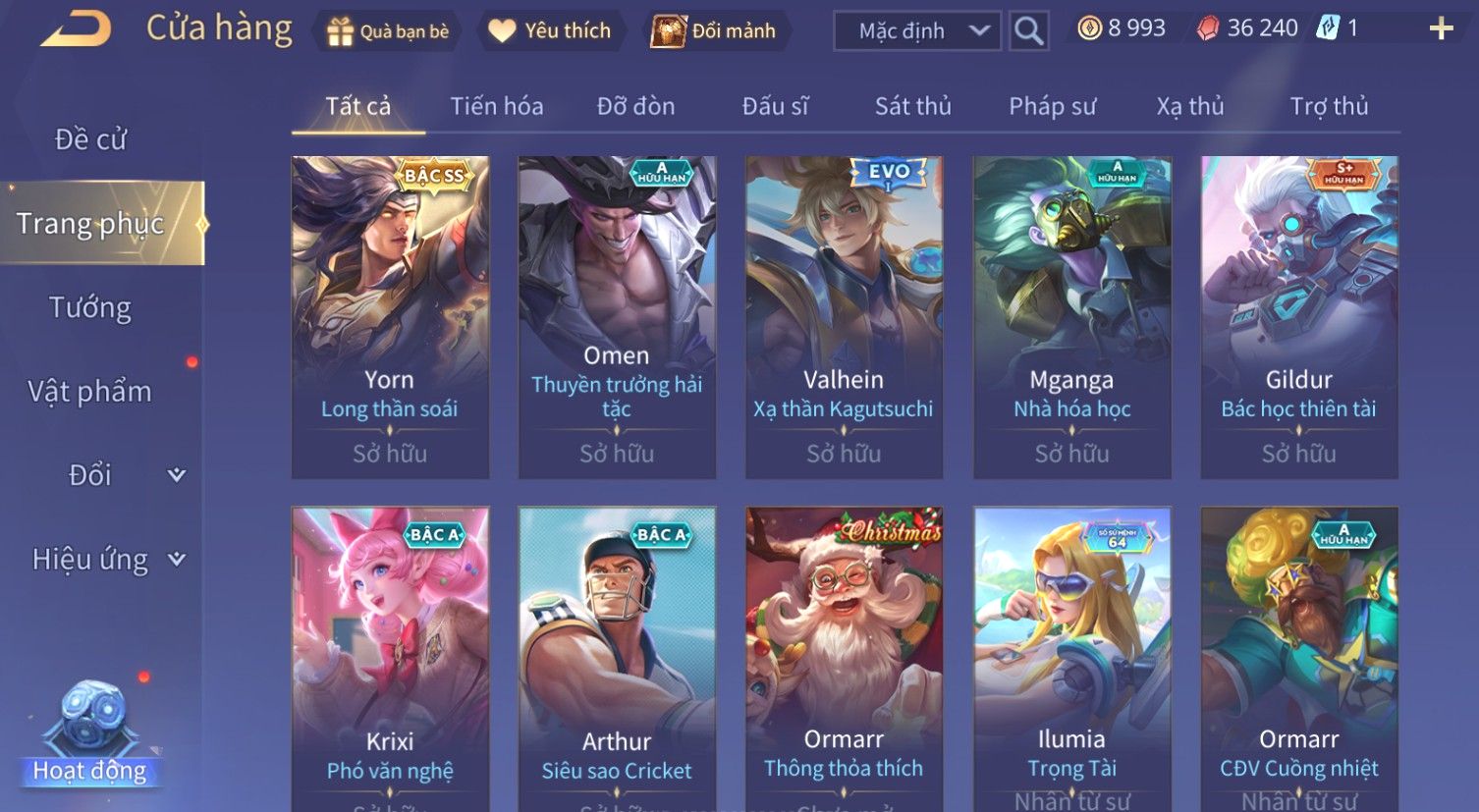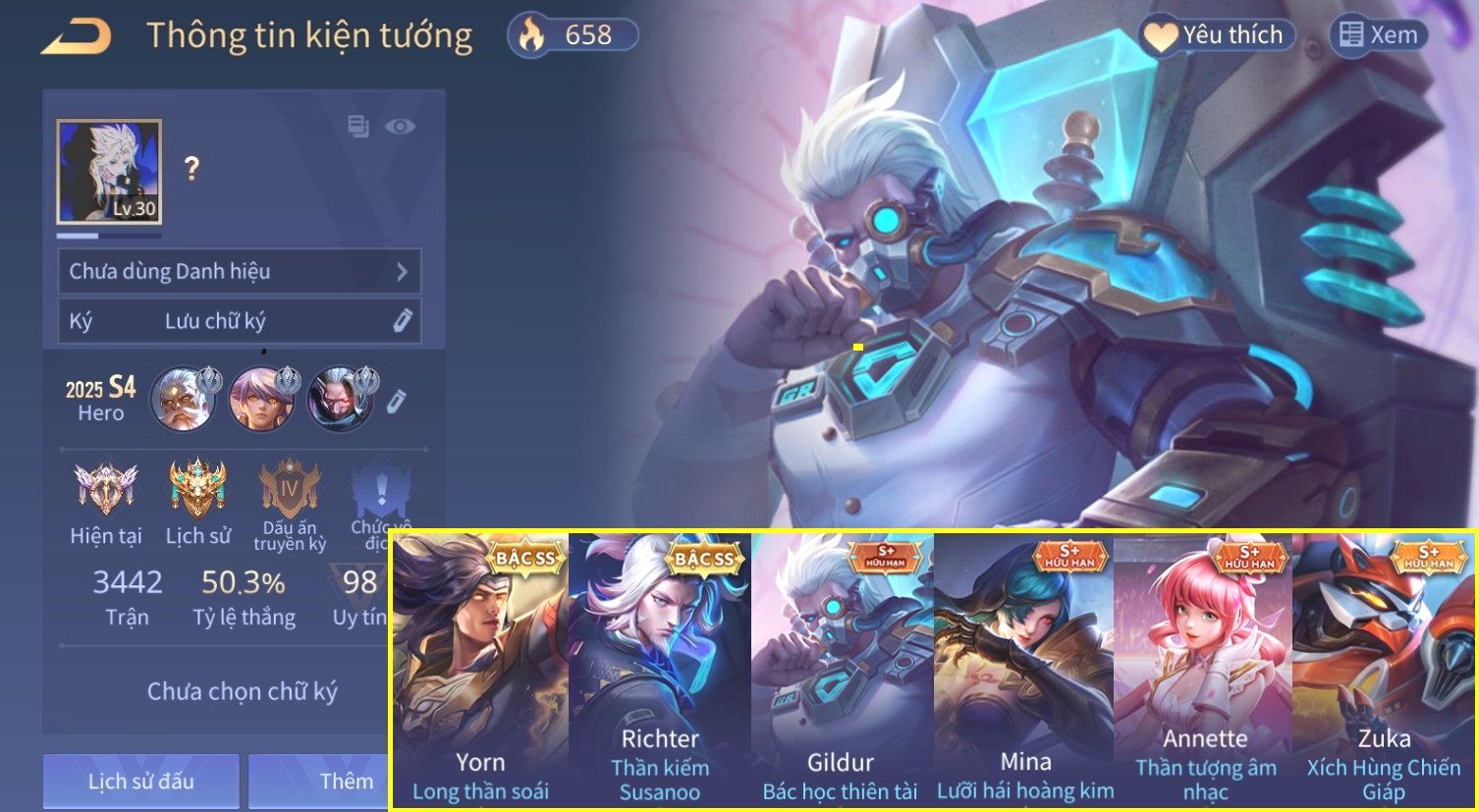 Nổi bật: Skin: Yorn Long Thần Soái×Richter Thần Kiếm Susanoo×Mina Lưỡi Hái Hoàng Kim×Annette Thần Tượng Âm Nhạc×