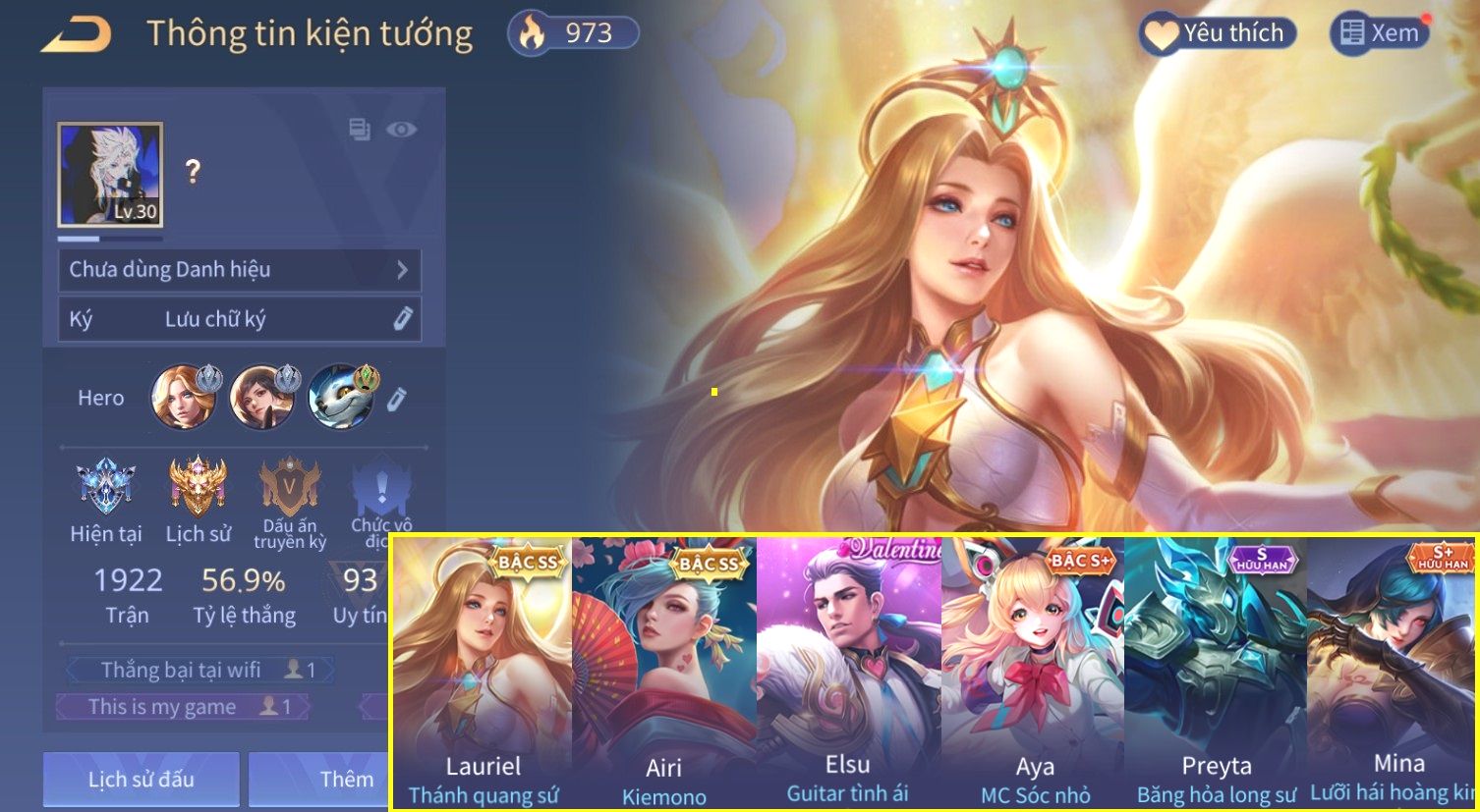 Nổi bật: Skin: Lauriel Thánh Quang Sứ×Airi Kiemono×Elsu Guitar Tình Ái×Aya Mc Sóc Nhỏ×