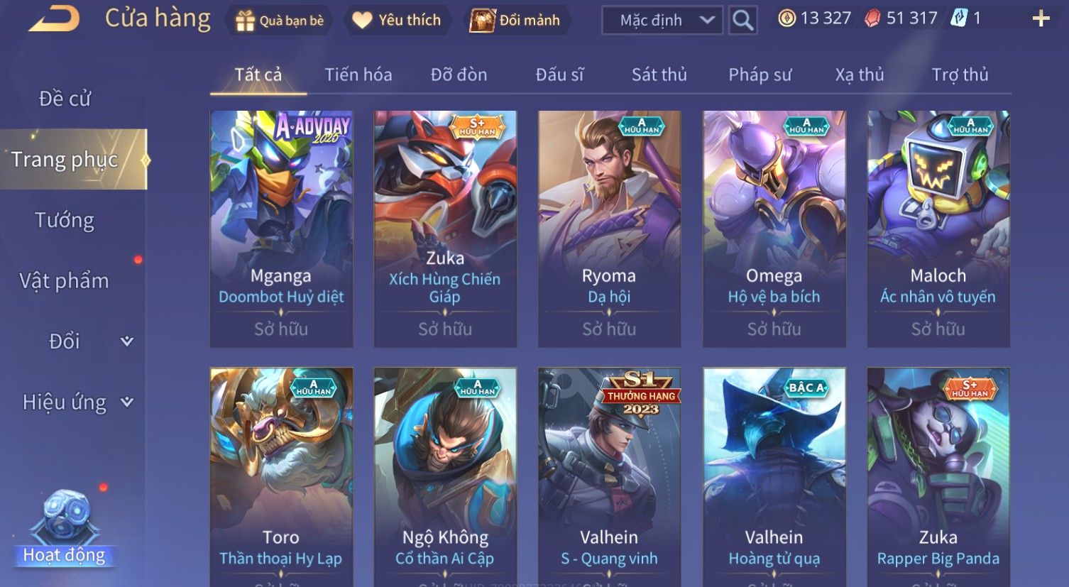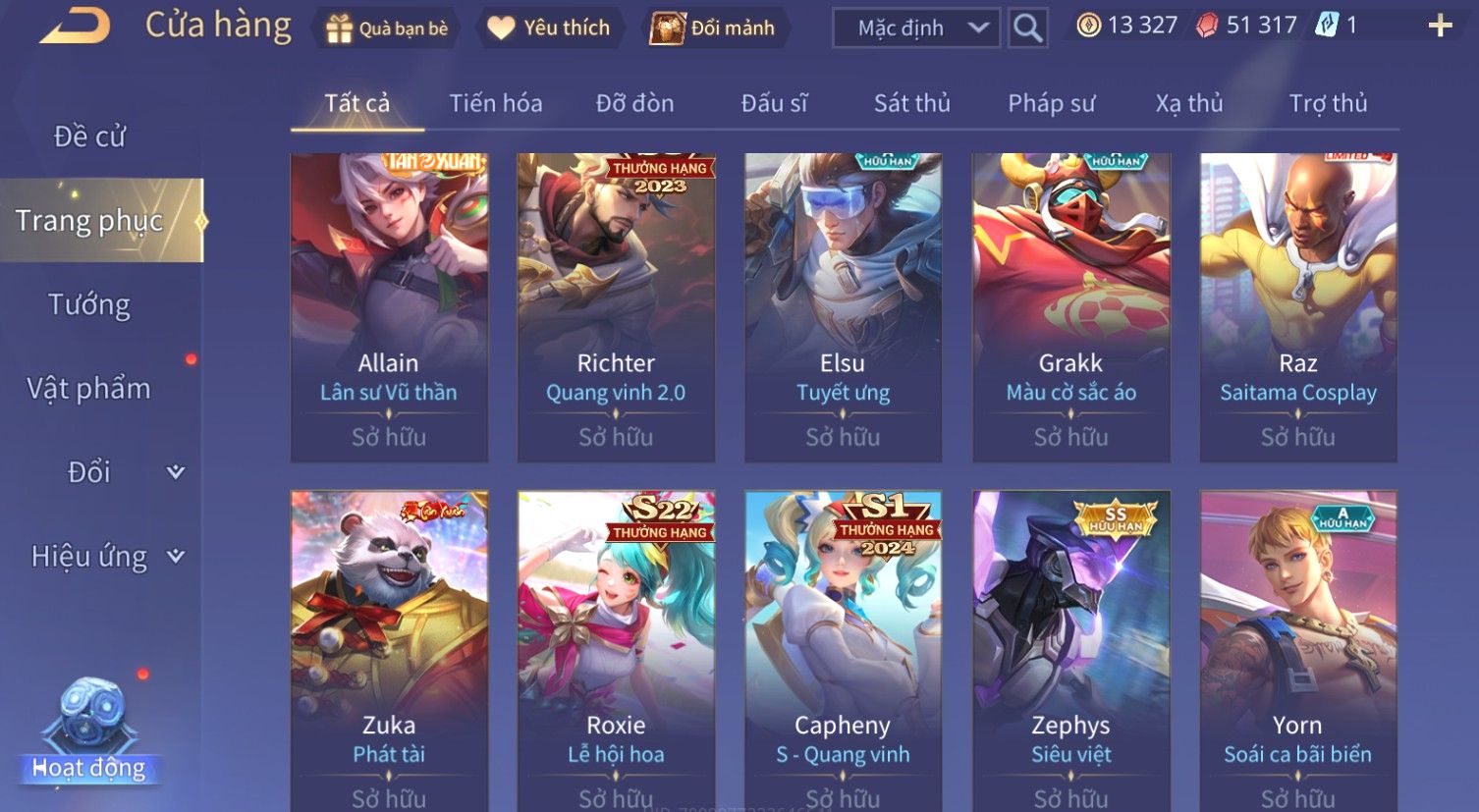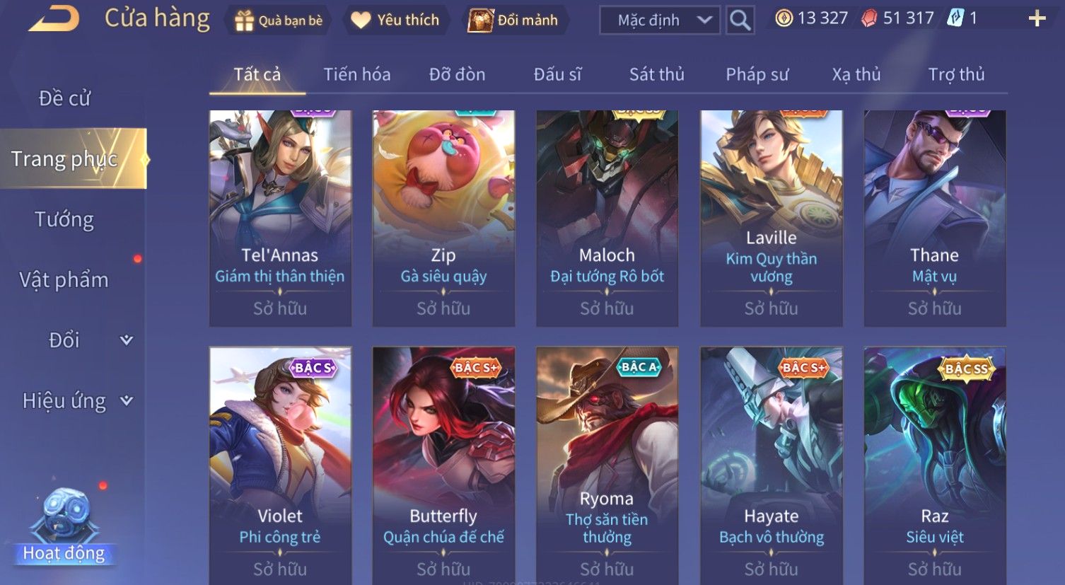 Nổi bật: Skin: Zephys Siêu Việt×Violet Tiệc Bãi Biển×Tel'Annas Thiên Vũ Thần Long×Maloch Đại Tướng Rô Bốt×Raz Siêu Việt×Tachi Đao Khách Vô Tình×Full Ngọc, Nhiều Skin SS Đẹp