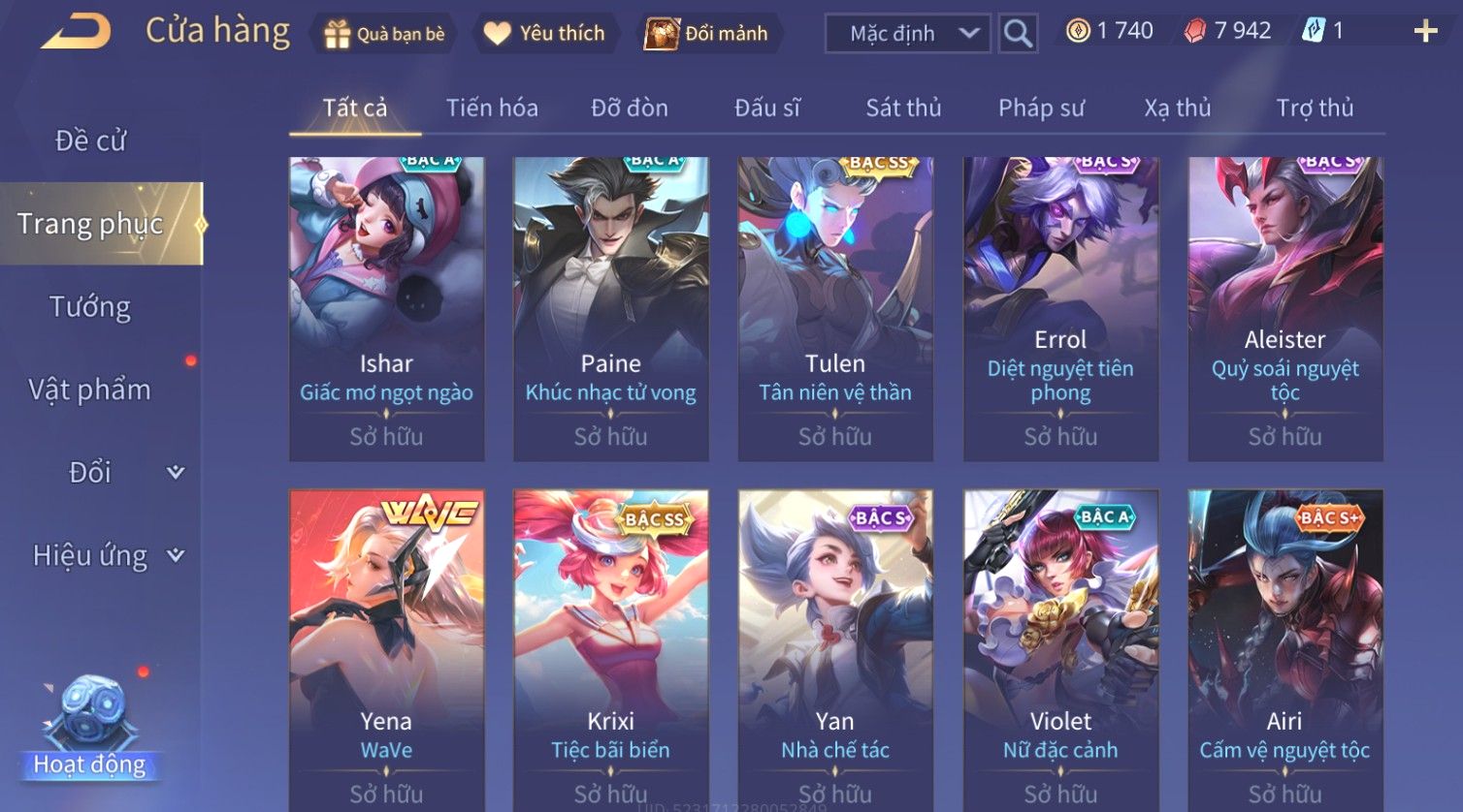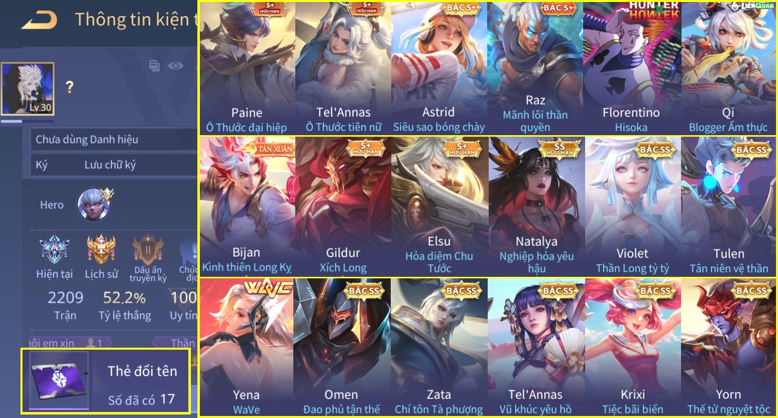 Trạng Thái: Nick có SĐT or Gmail Của Shop( Có Thể Thay Đổi)