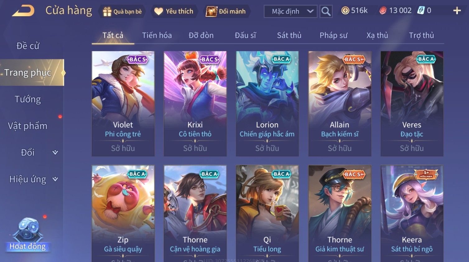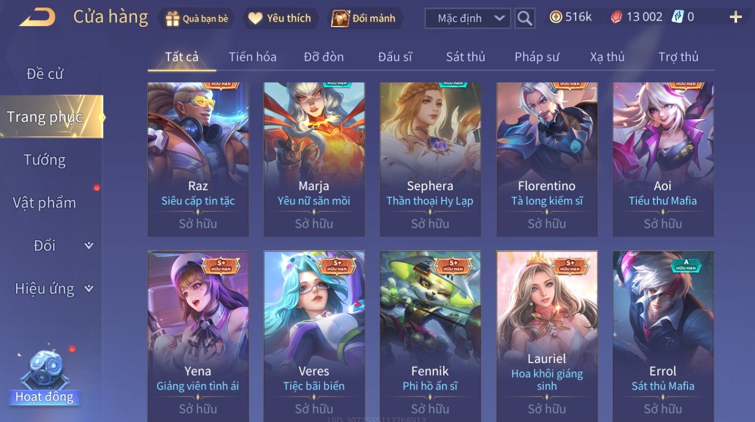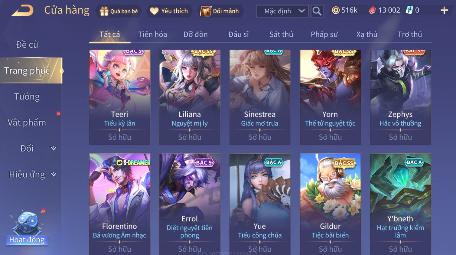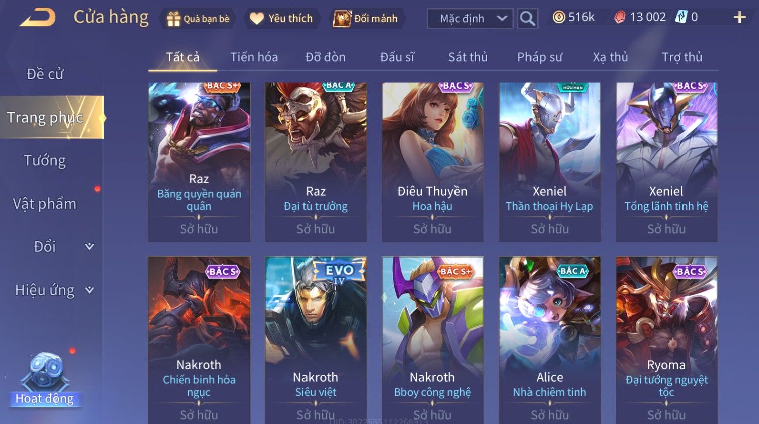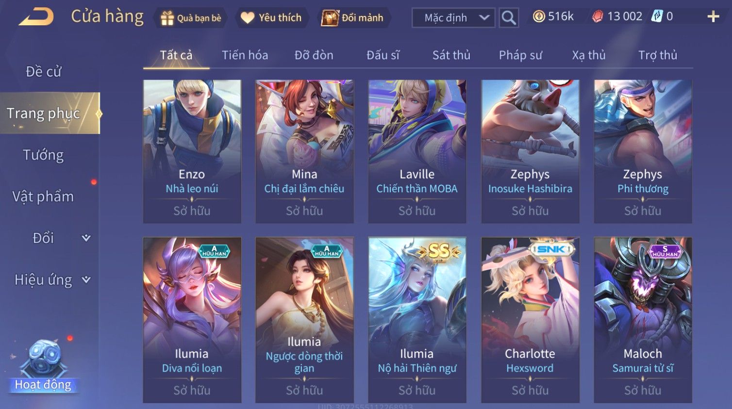 Trạng Thái: Nick có SĐT or Gmail Của Shop( Có Thể Thay Đổi)