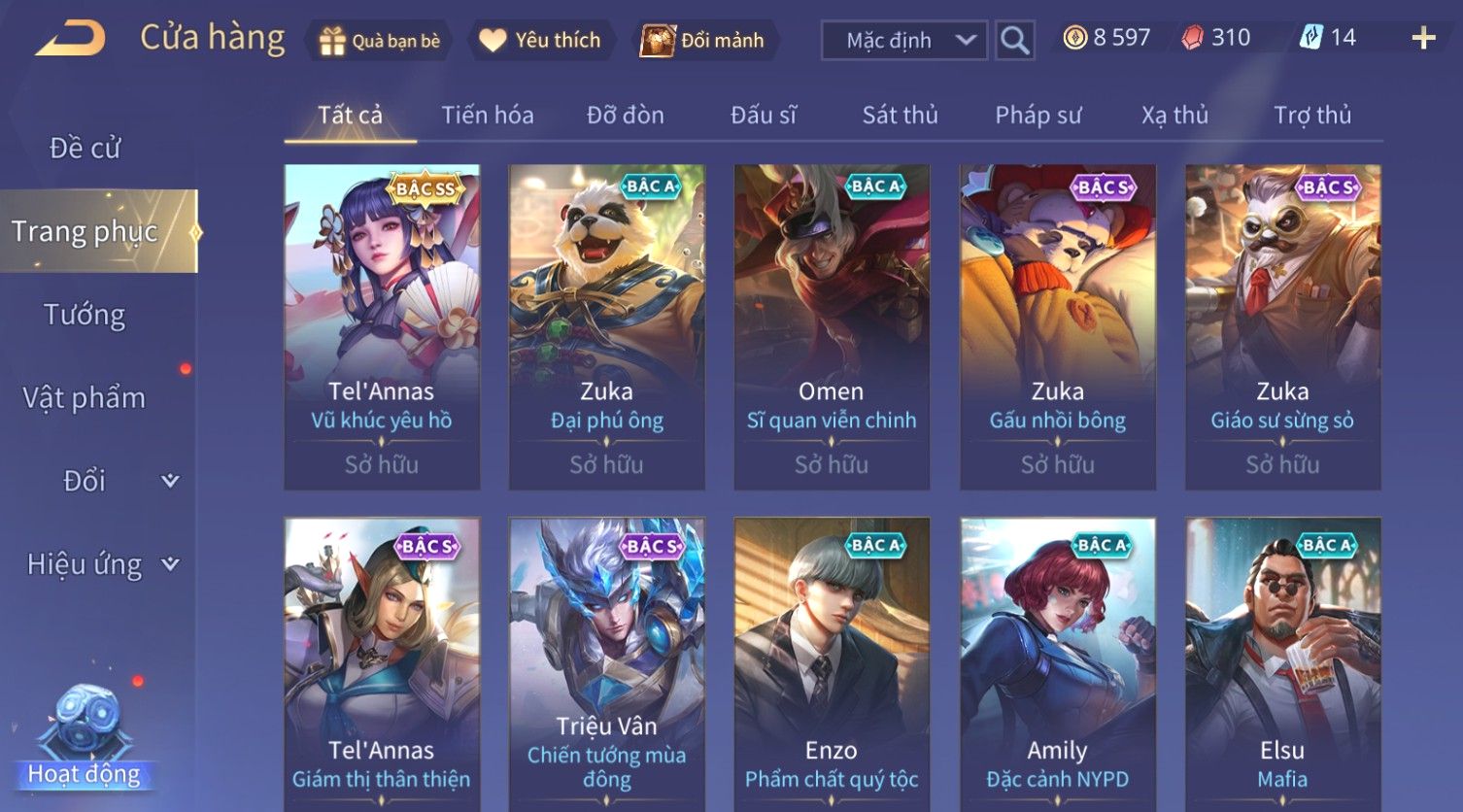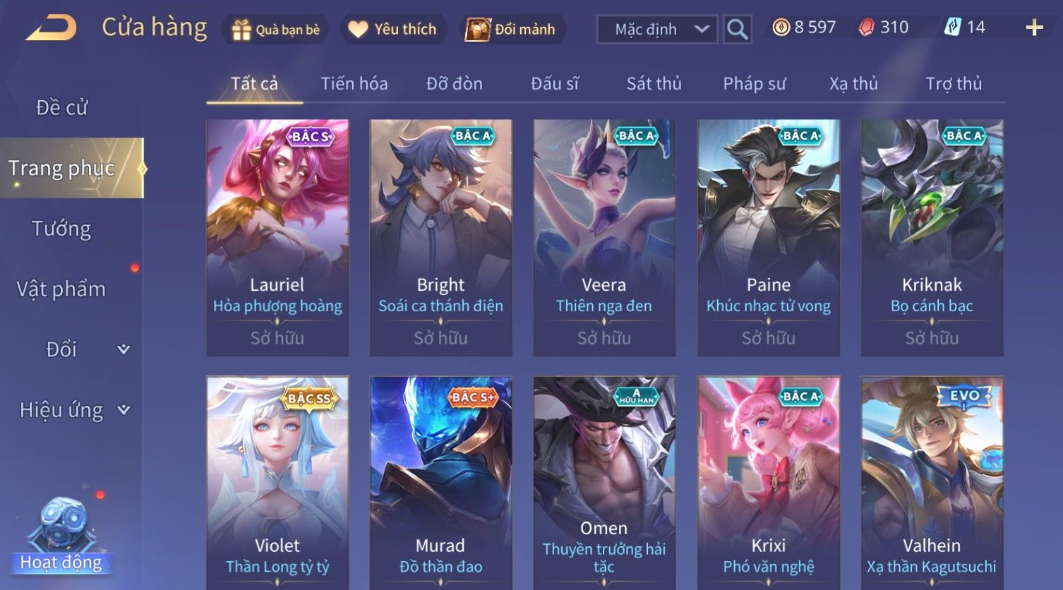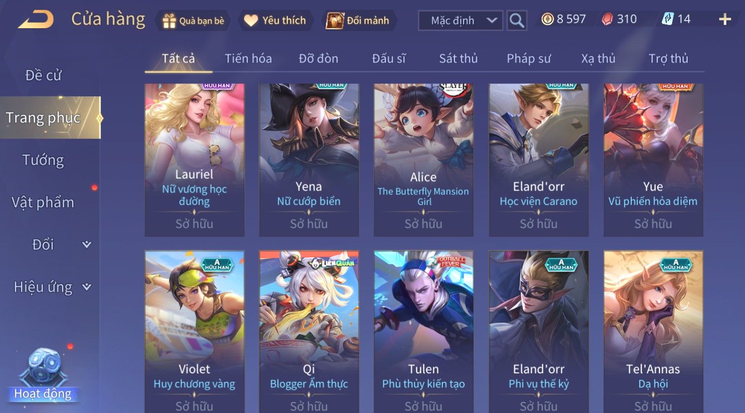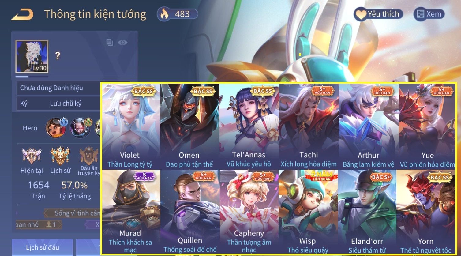 Nổi bật: Skin: Violet Thần Long Tỷ Tỷ×Tel'Annas Vũ Khúc Yêu Hồ×Omen Đao Phủ Tận Thế×Wisp Thỏ Siêu Quậy×Murad Thích Khách Sa Mạc×Quillen Thống Soái Đế Chế×Gần Ful Ngọc, Nhiều Skin Đẹp
