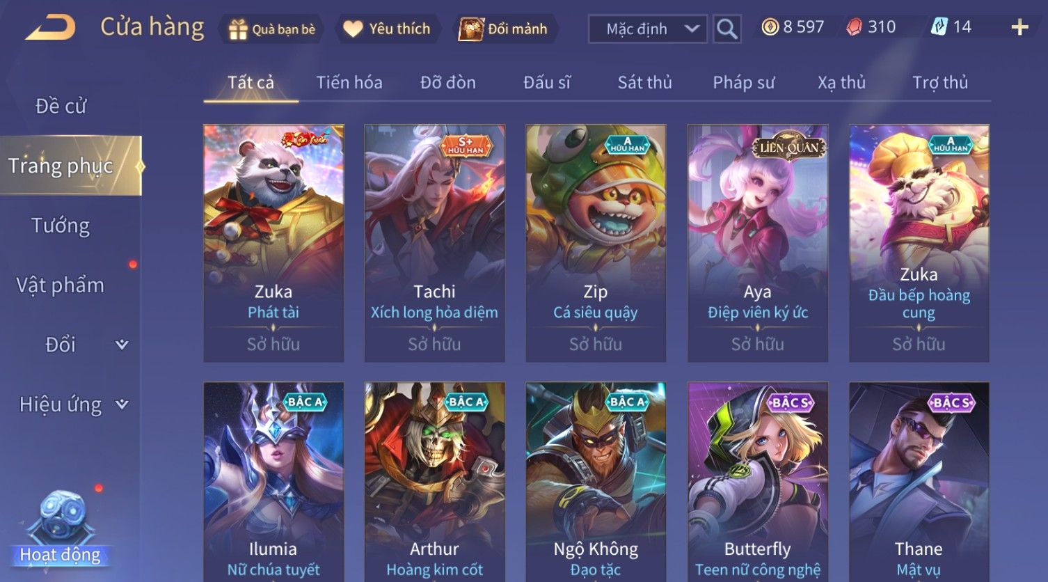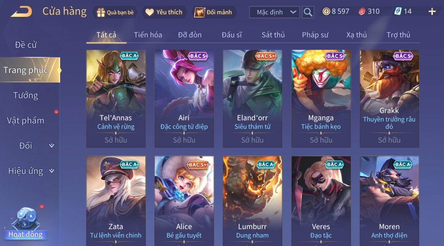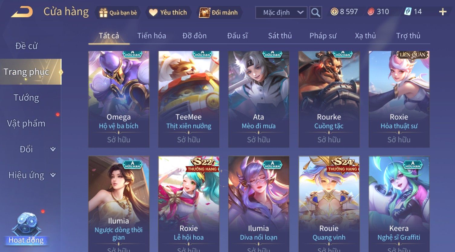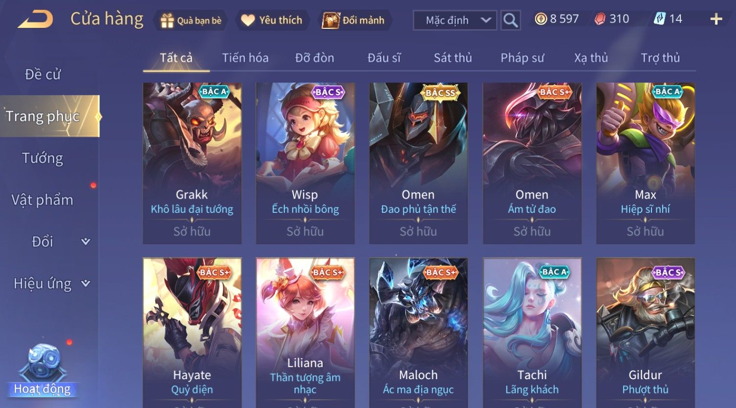 Nổi bật: Skin: Violet Thần Long Tỷ Tỷ×Tel'Annas Vũ Khúc Yêu Hồ×Omen Đao Phủ Tận Thế×Wisp Thỏ Siêu Quậy×Murad Thích Khách Sa Mạc×Quillen Thống Soái Đế Chế×Gần Ful Ngọc, Nhiều Skin Đẹp