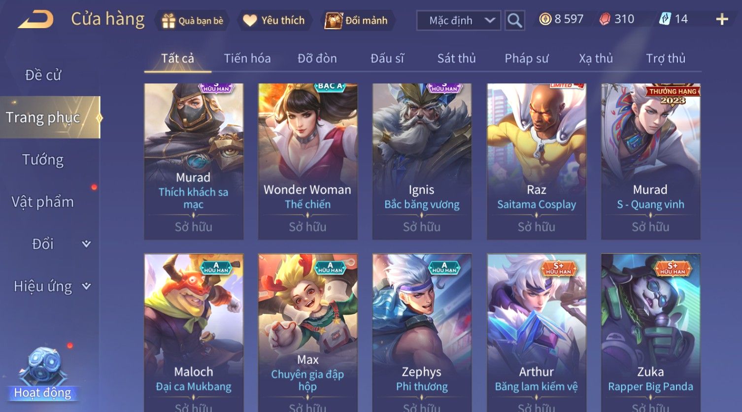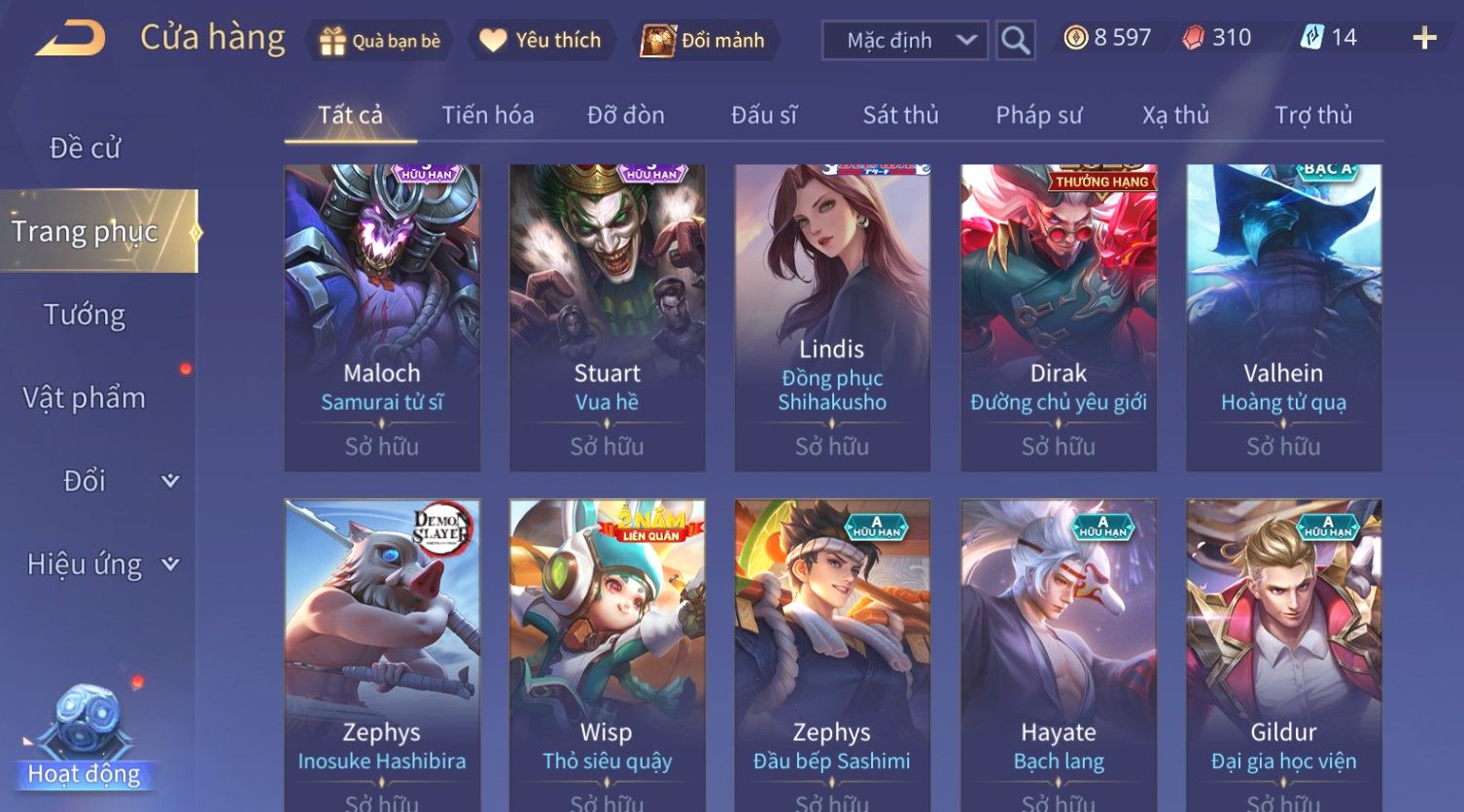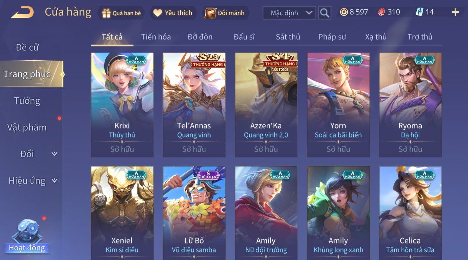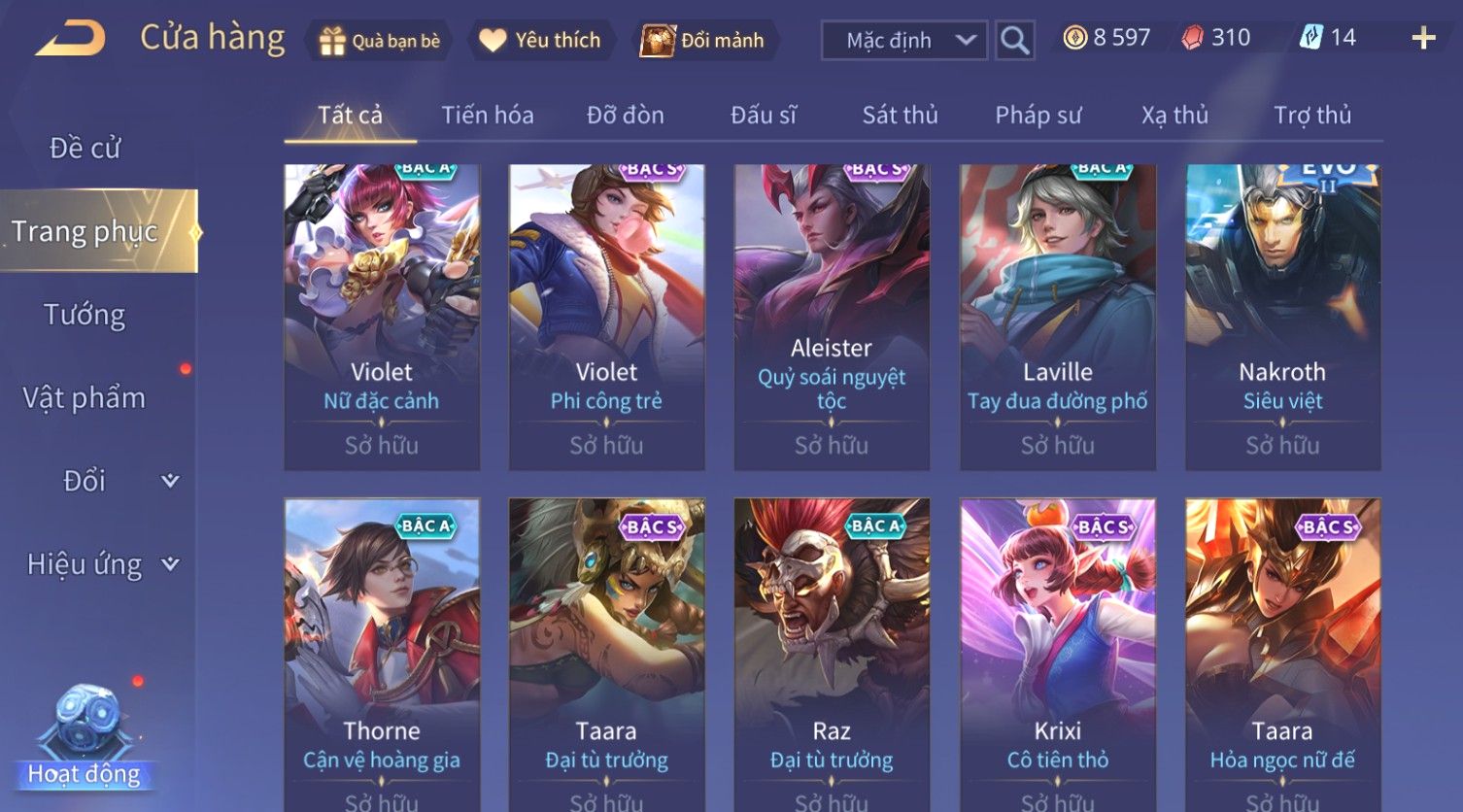 Nổi bật: Skin: Violet Thần Long Tỷ Tỷ×Tel'Annas Vũ Khúc Yêu Hồ×Omen Đao Phủ Tận Thế×Wisp Thỏ Siêu Quậy×Murad Thích Khách Sa Mạc×Quillen Thống Soái Đế Chế×Gần Ful Ngọc, Nhiều Skin Đẹp