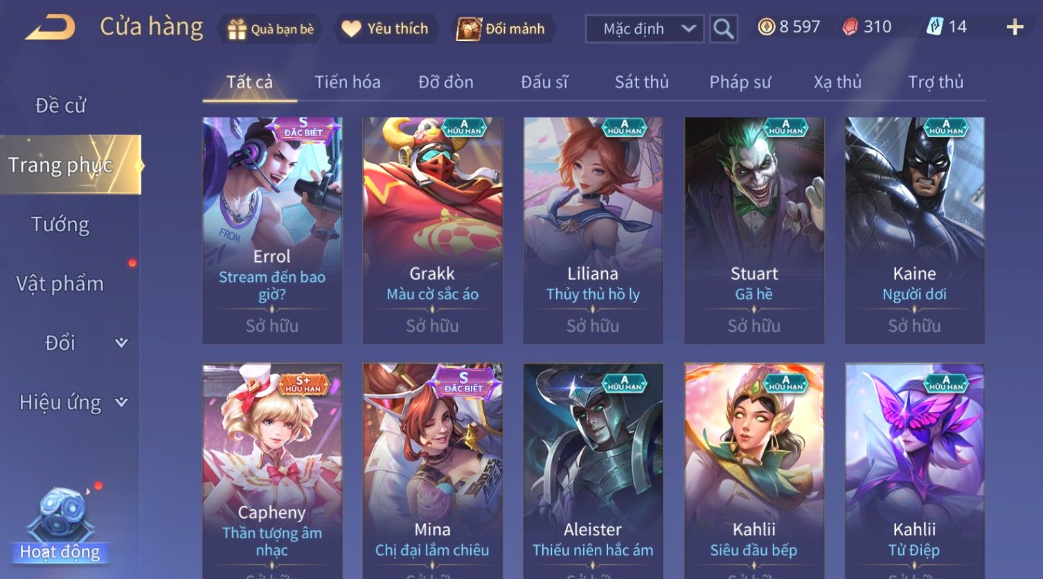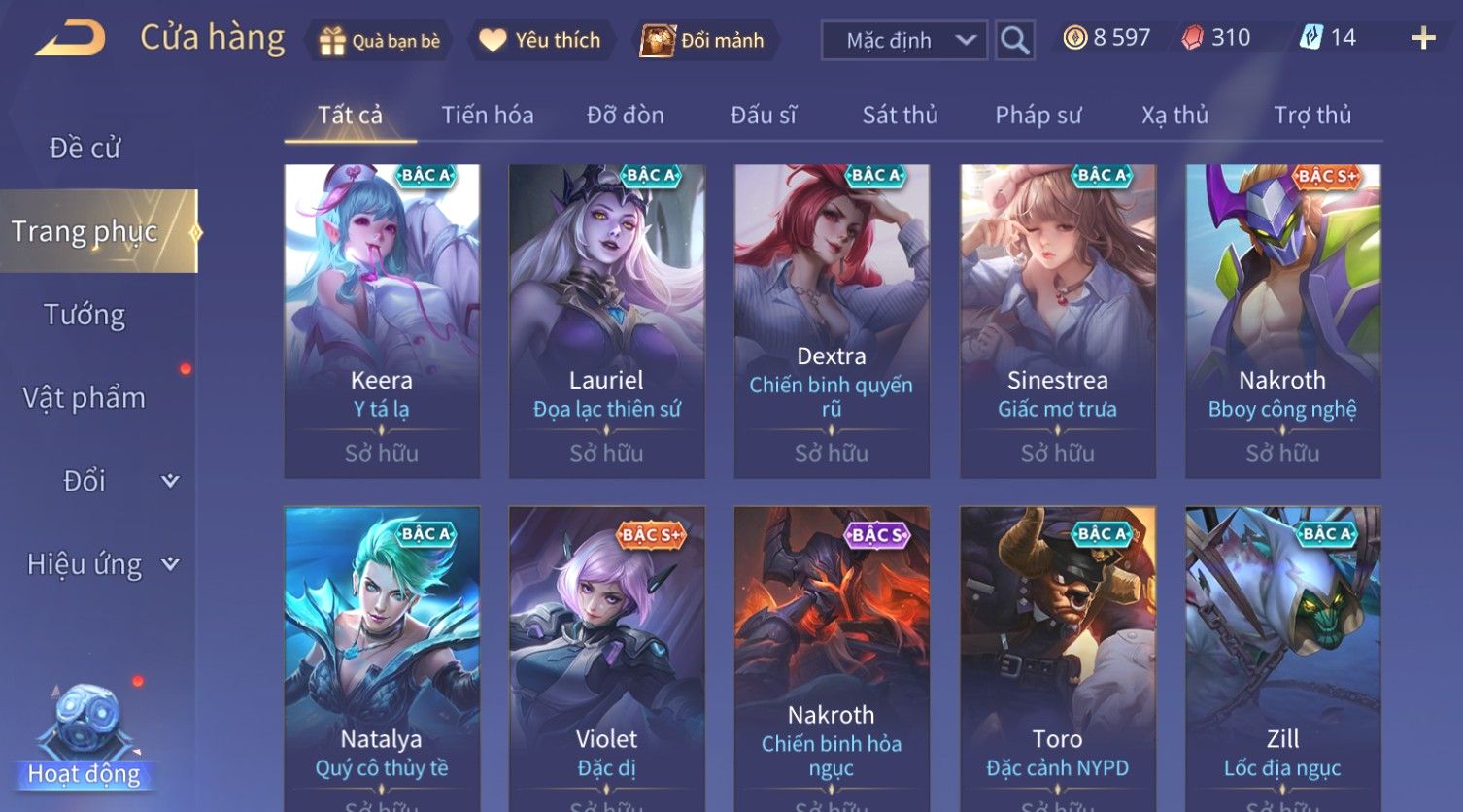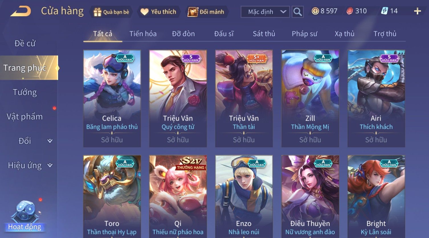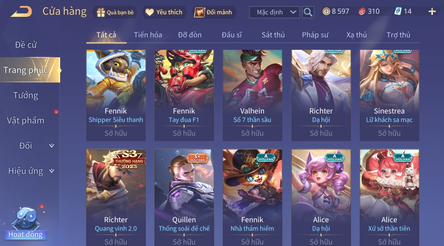 Nổi bật: Skin: Violet Thần Long Tỷ Tỷ×Tel'Annas Vũ Khúc Yêu Hồ×Omen Đao Phủ Tận Thế×Wisp Thỏ Siêu Quậy×Murad Thích Khách Sa Mạc×Quillen Thống Soái Đế Chế×Gần Ful Ngọc, Nhiều Skin Đẹp