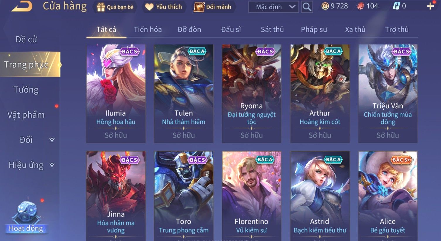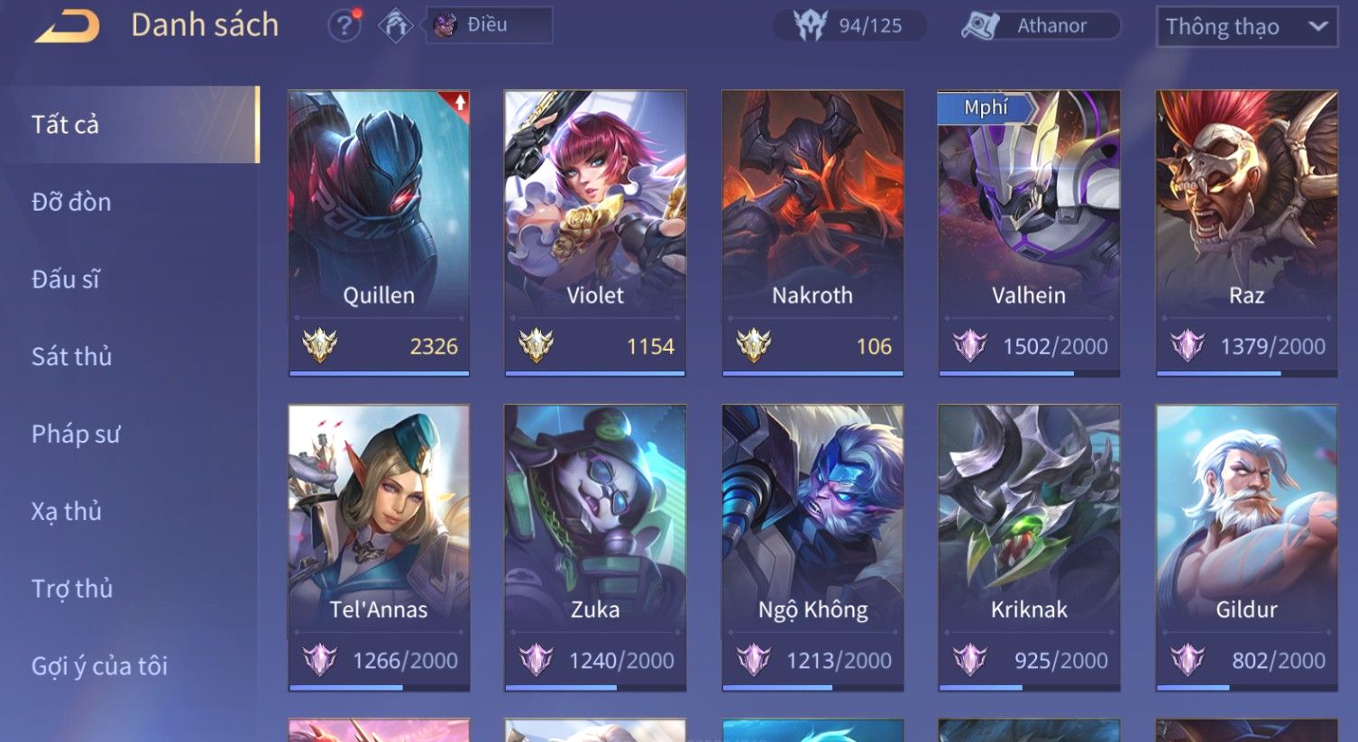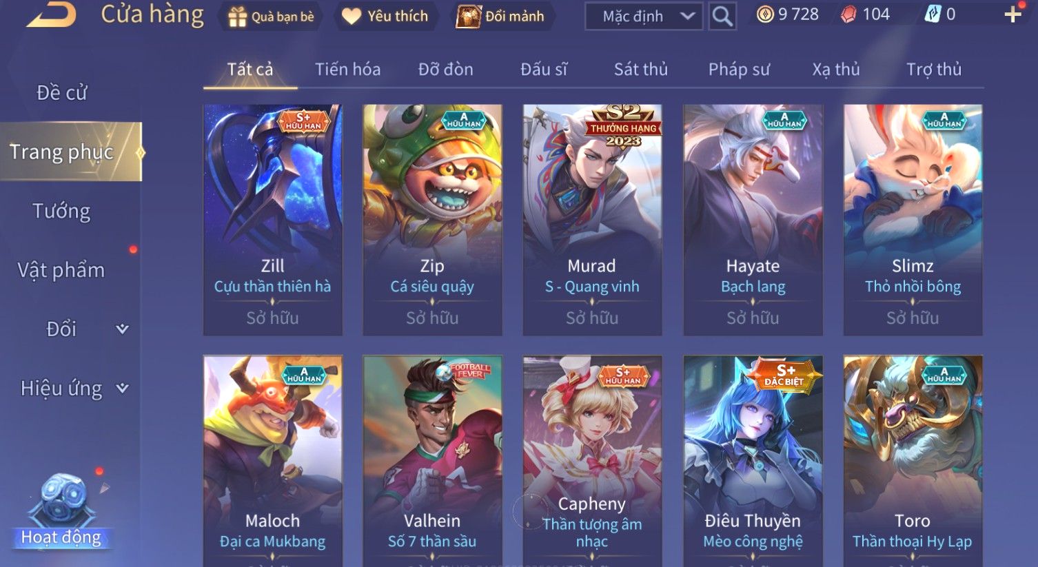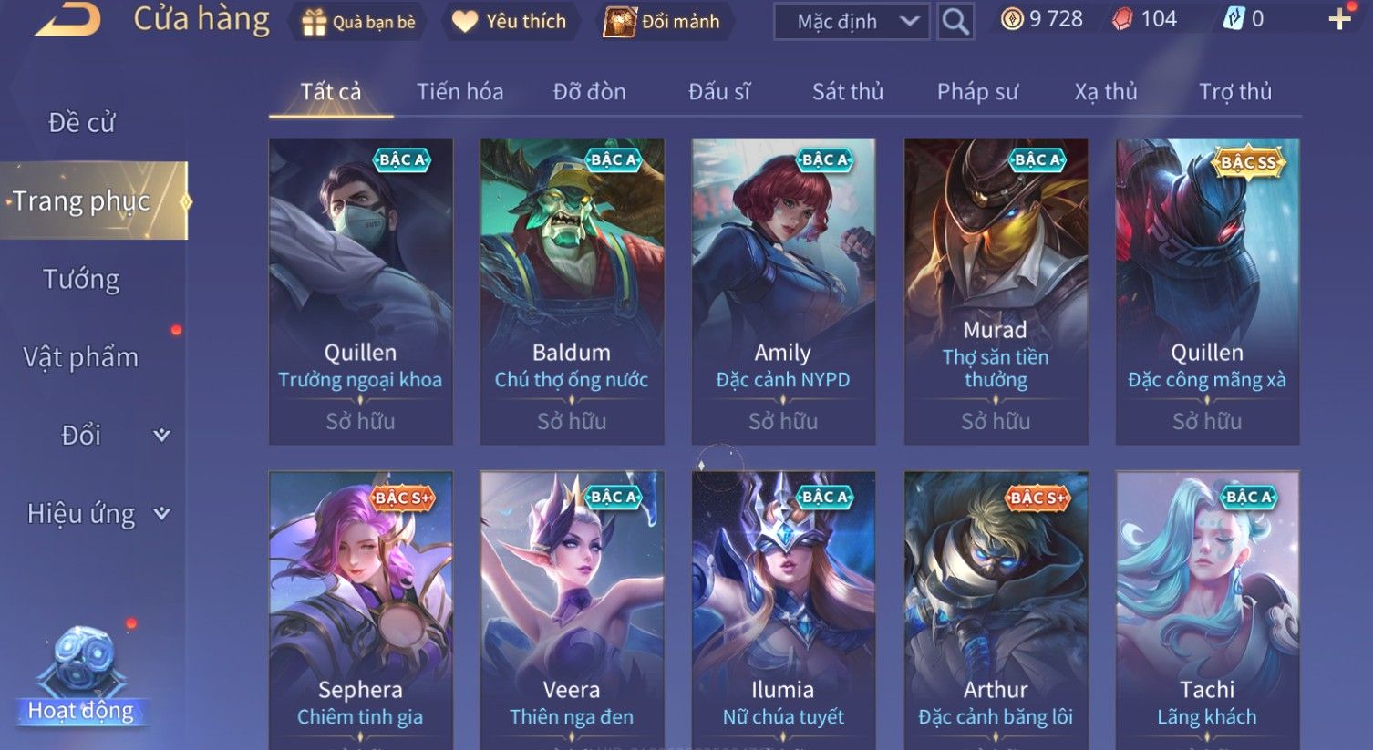 Nổi bật: Skin: Quillen Đặc Công Mãng Xà×Valhein Vũ Khí Tối Thượng×Full Ngọc, Nhiều Skin SS Đẹp