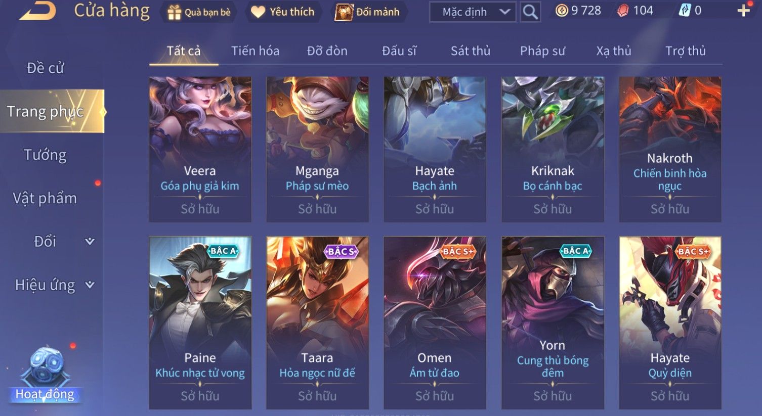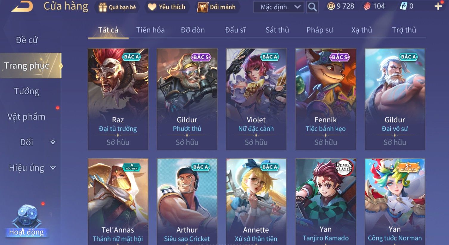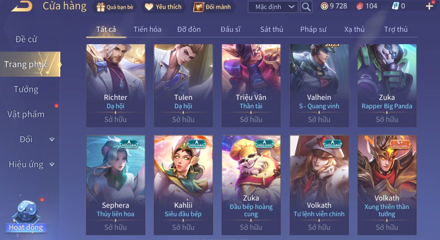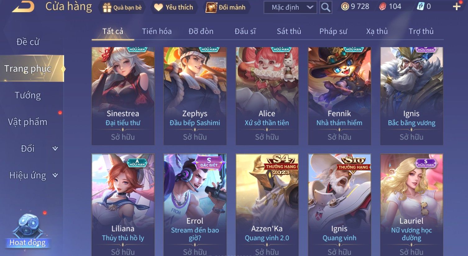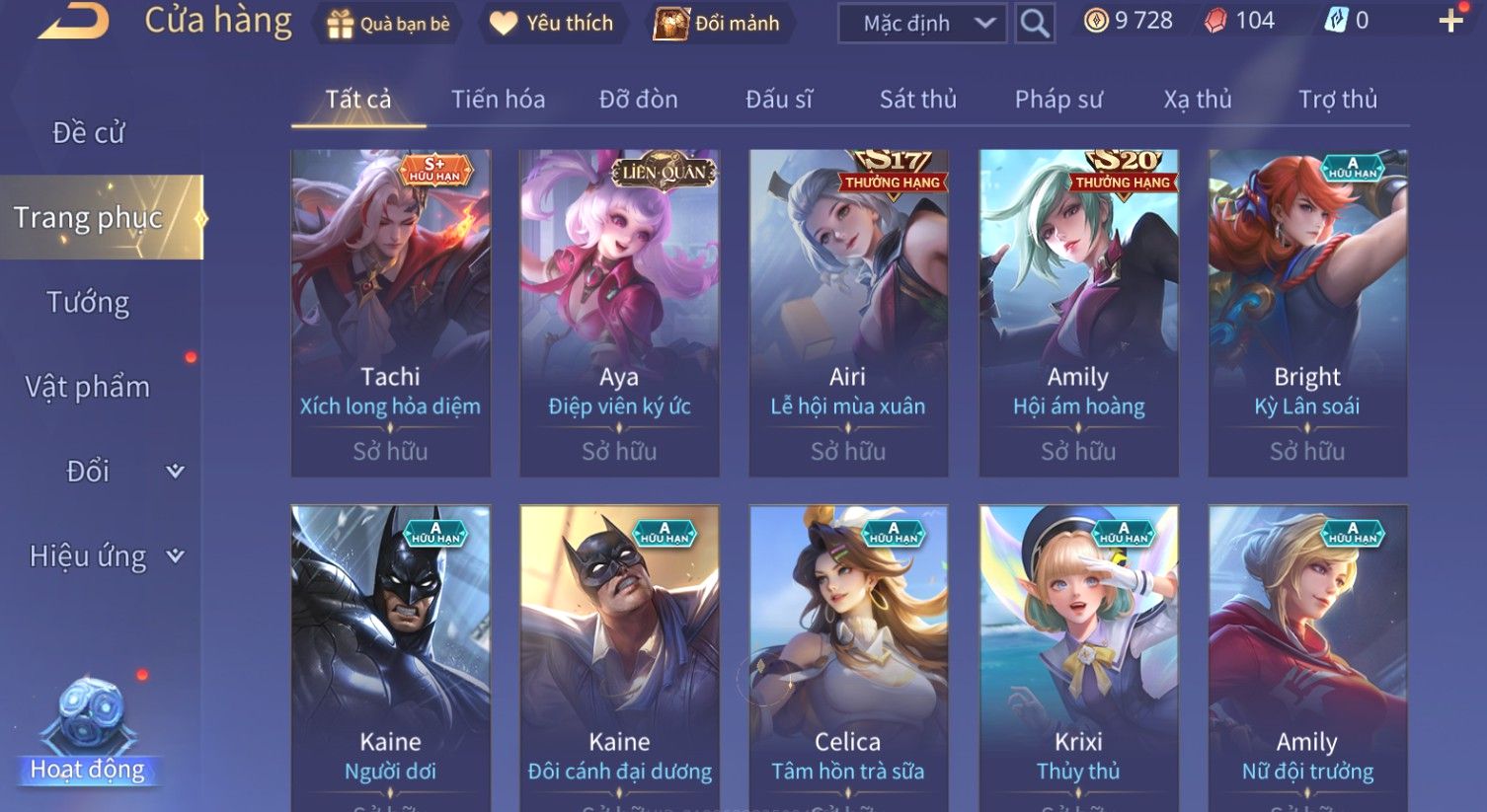 Nổi bật: Skin: Quillen Đặc Công Mãng Xà×Valhein Vũ Khí Tối Thượng×Full Ngọc, Nhiều Skin SS Đẹp