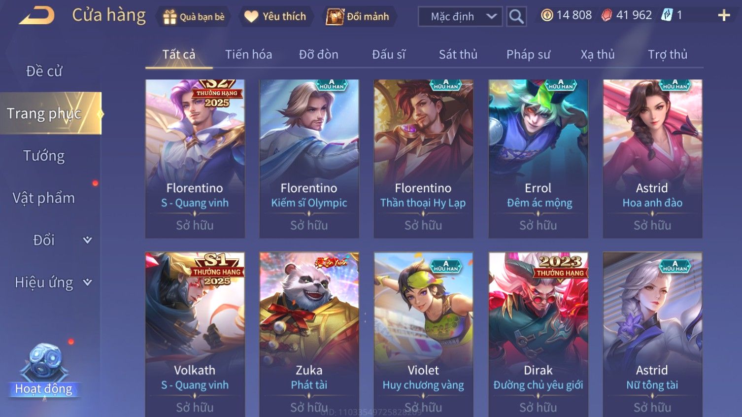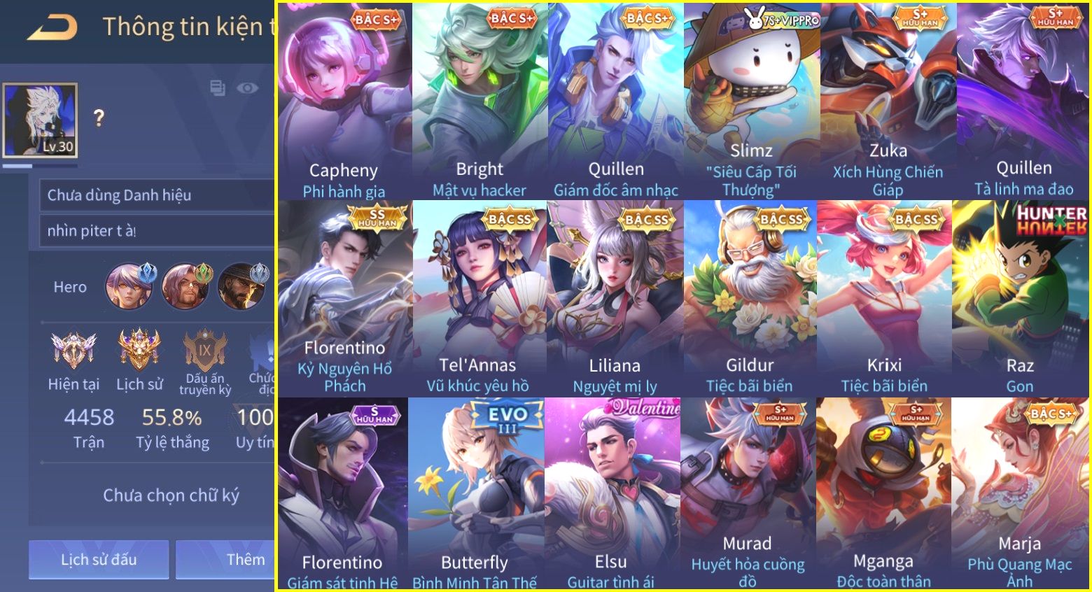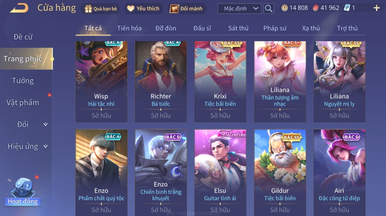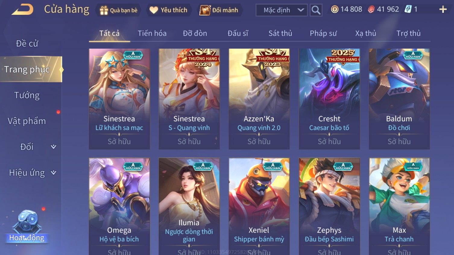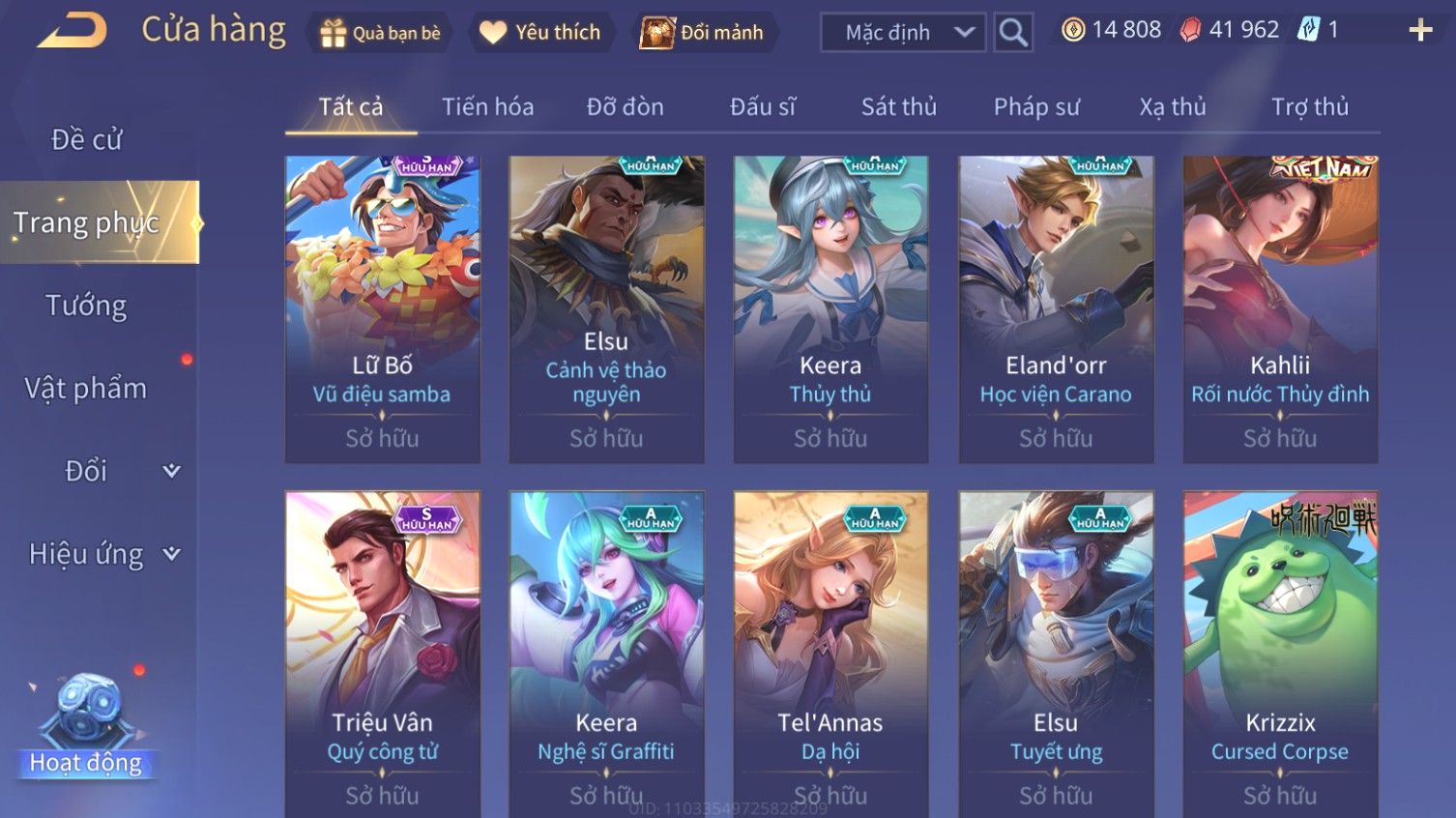 Nổi bật: Skin: Flo Kỷ Nguyên Hổ Phách×Florentino Giám Sát Tinh Hệ×Raz Gon×Tel'Annas Vũ Khúc Yêu Hồ×Liliana Nguyệt Mị Ly×Gildur Tiệc Bãi Biển×Krixi Tiệc Bãi Biển×Elsu Guitar Tình Ái×Full Ngọc, Nhiều Skin SS Đẹp