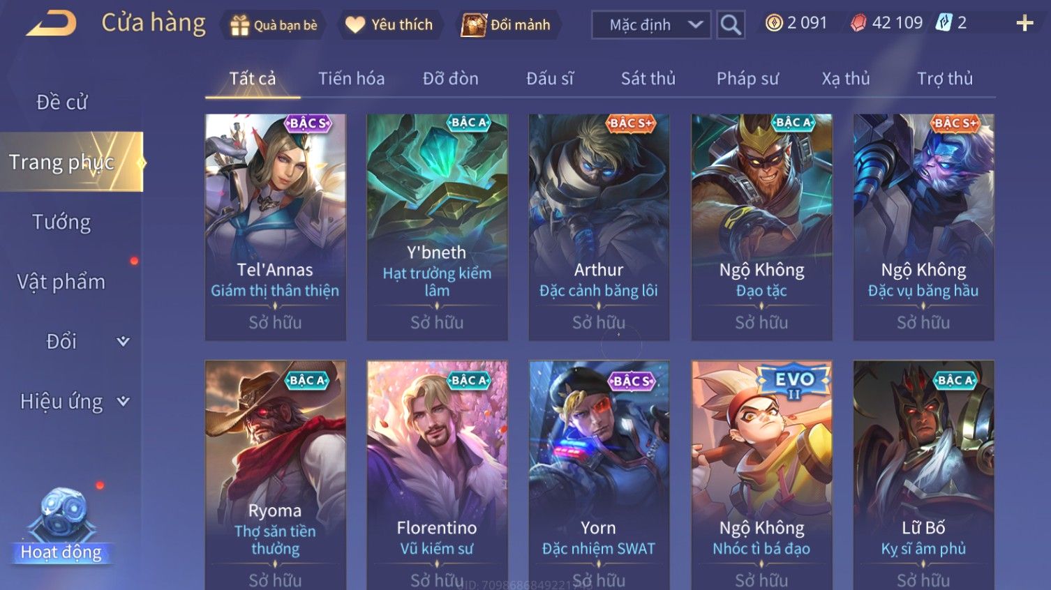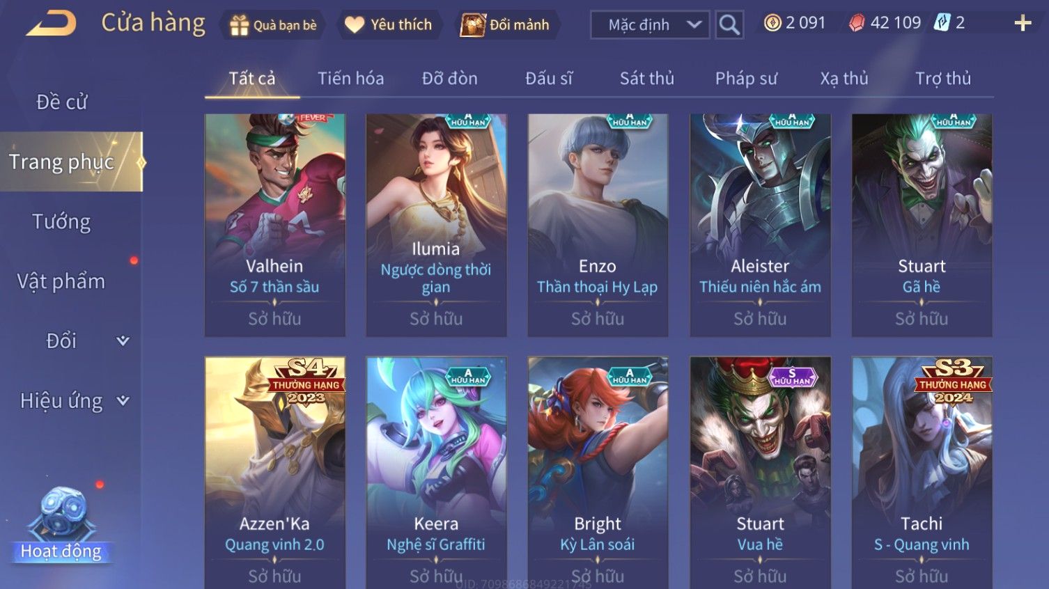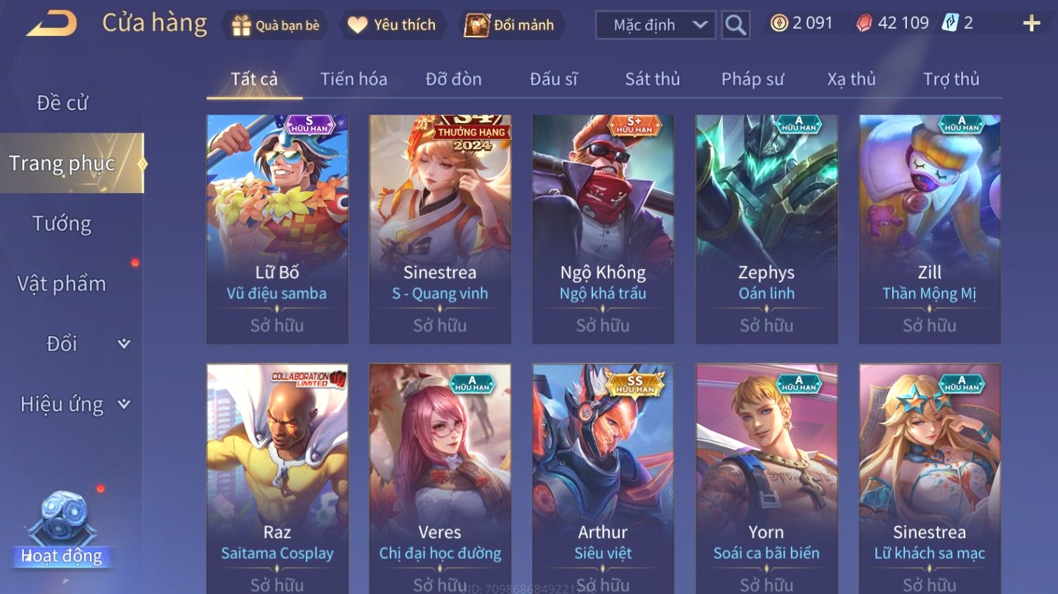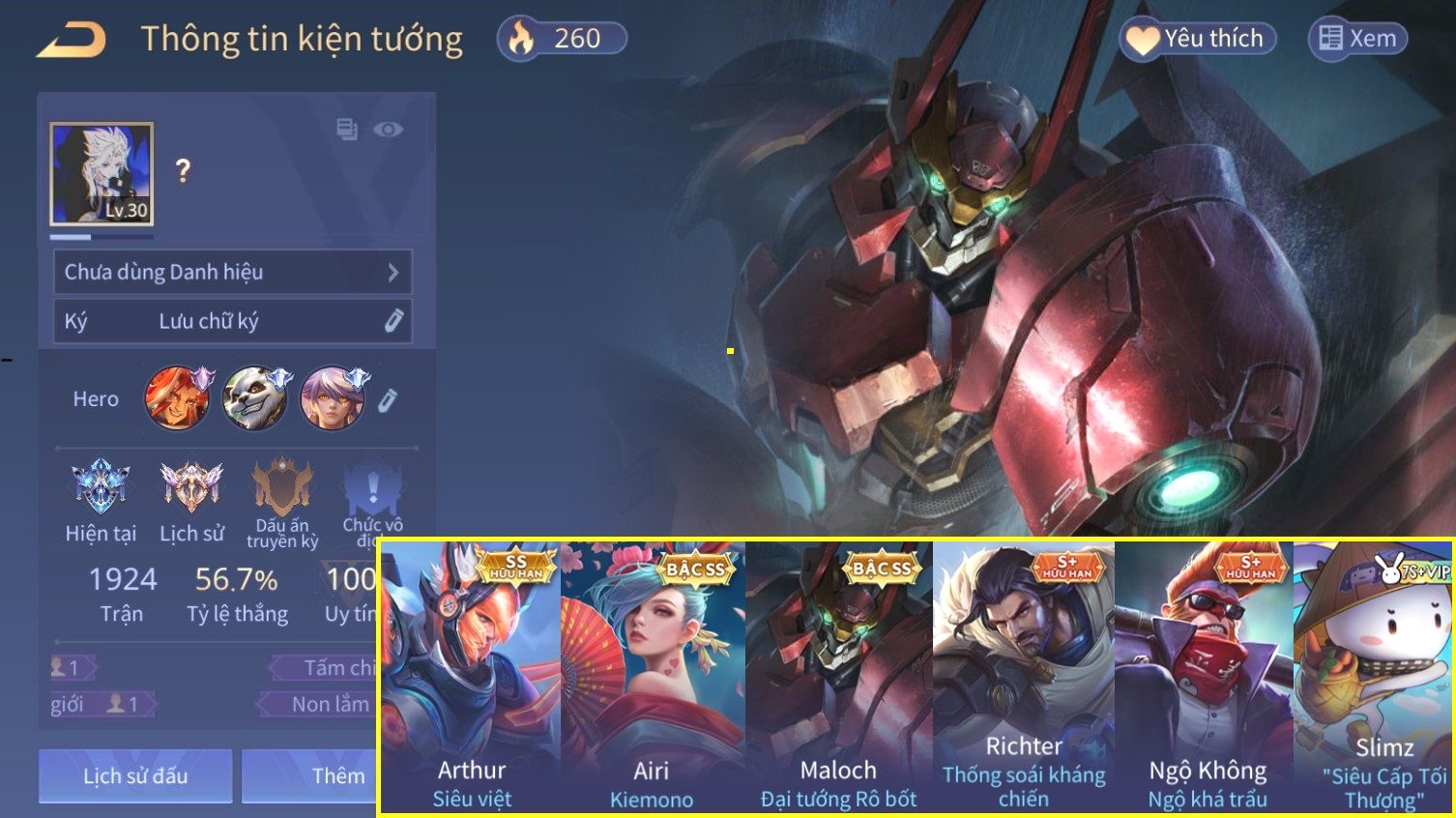 Nổi bật: Skin: Arthur Siêu Việt×Airi Kiemono×Maloch Đại Tướng Rô Bốt×Richter Thống Soái Kháng Chiến×Full Ngọc, Nhiều Skin SS Đẹp