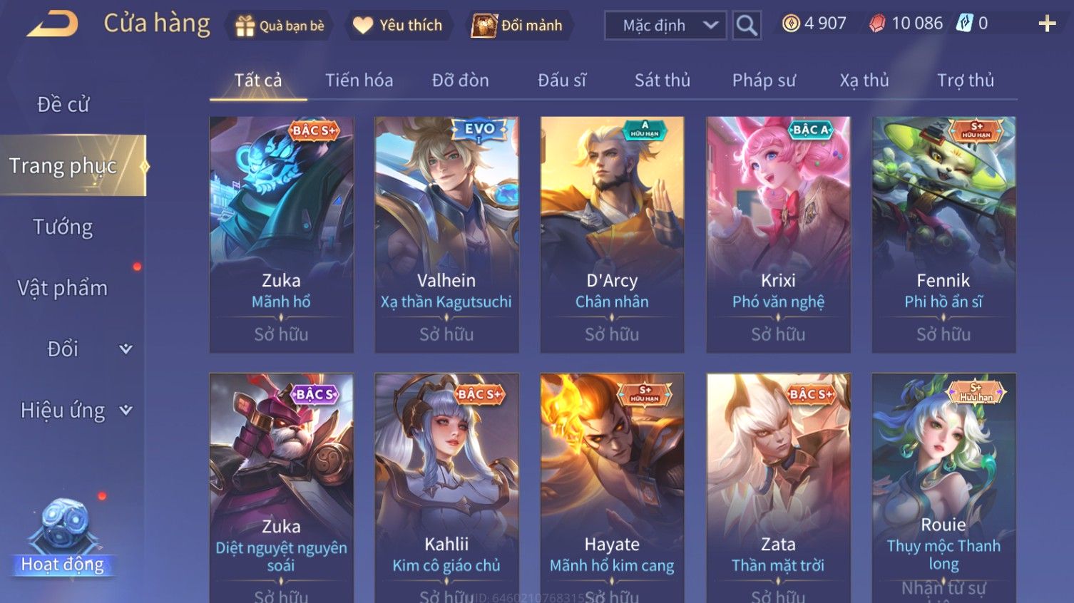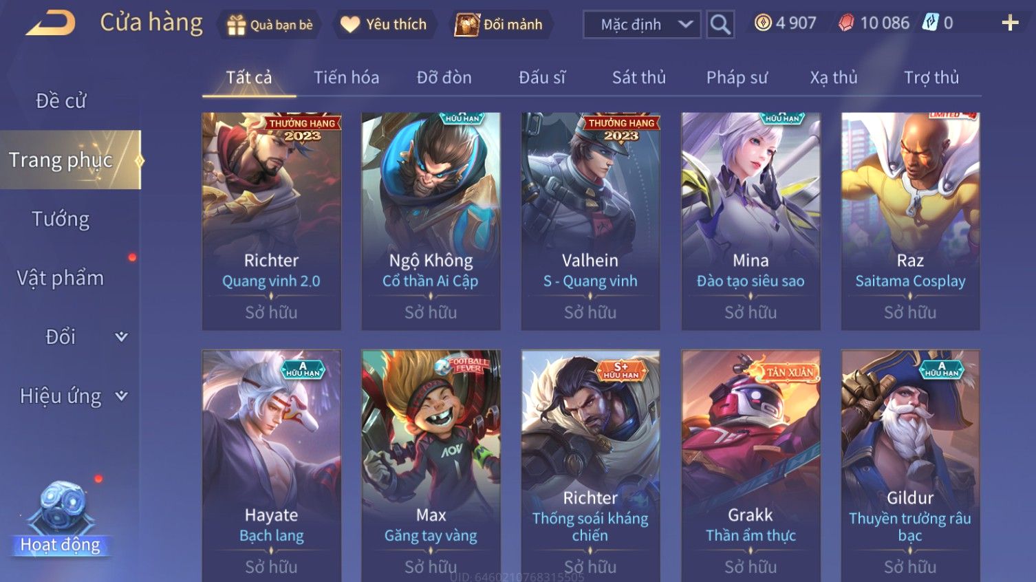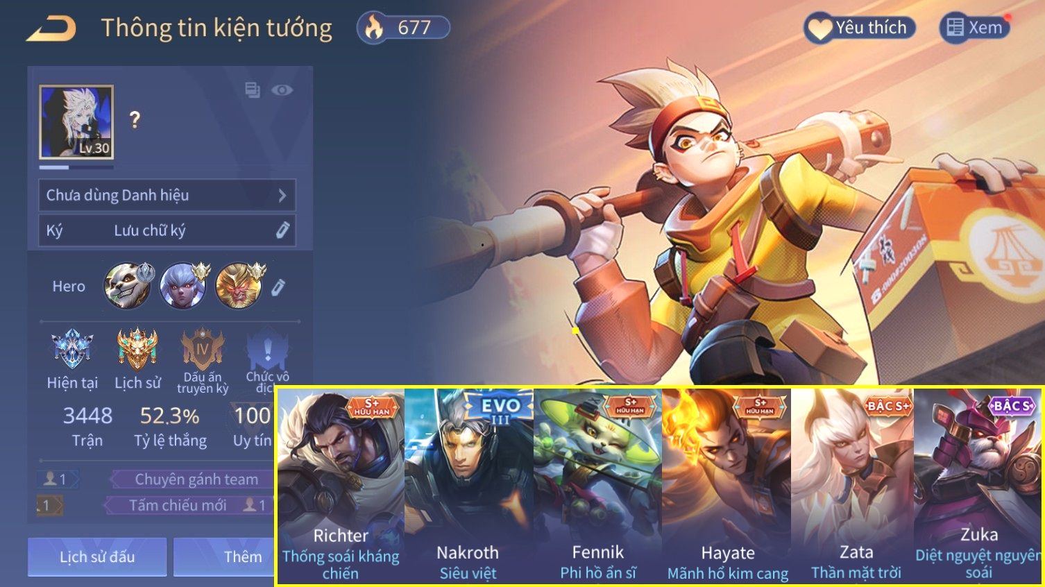 Nổi bật: Skin: Richter Thống Soái Kháng Chiến×Nakroth Siêu Việt×Fennik Phi Hồ Ấn Sĩ×Hayate Mãnh Hổ Kim Cang×Zuka Diệt Nguyên Soái×Full Ngọc, Nhiều Skin Đẹp