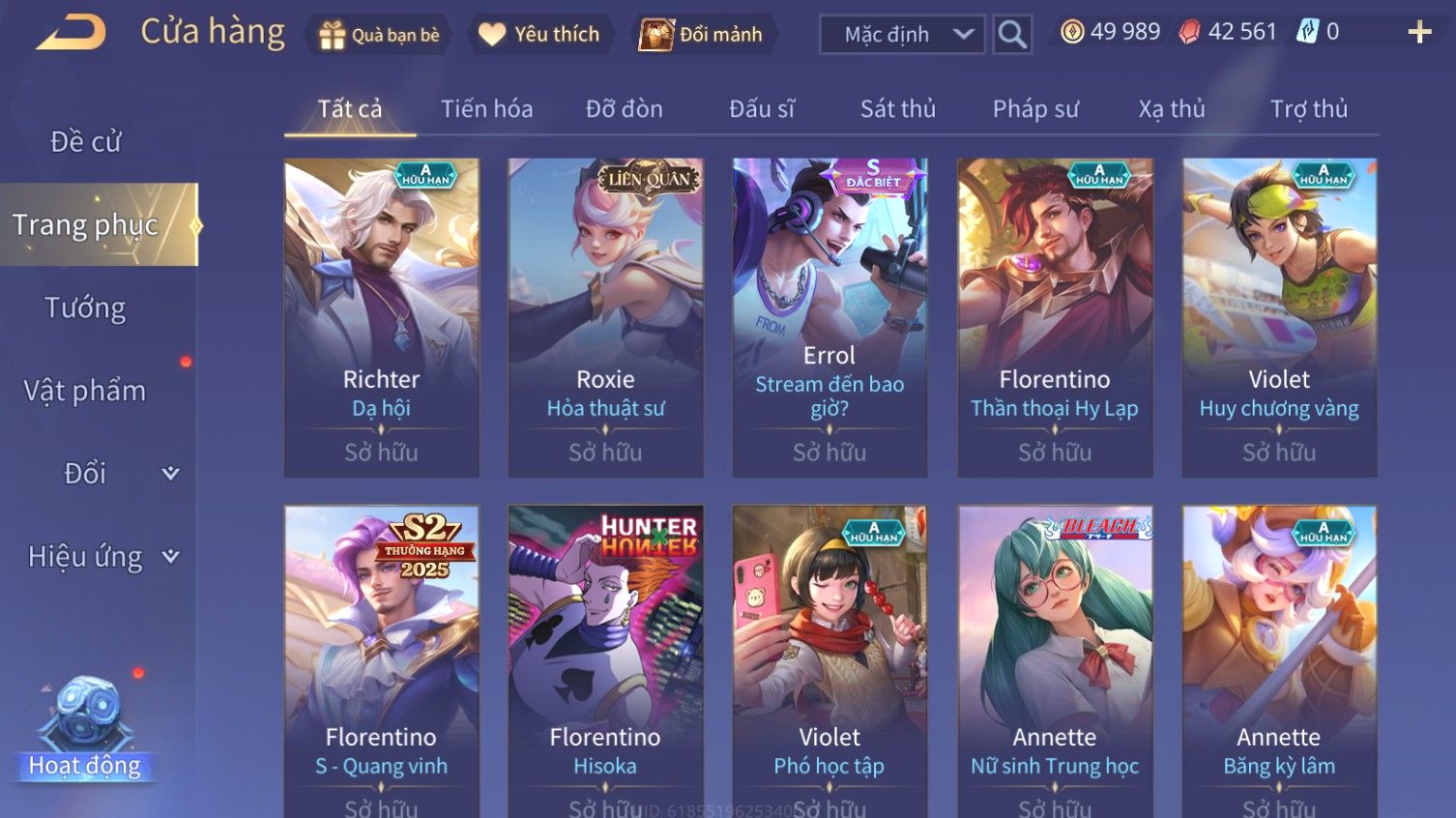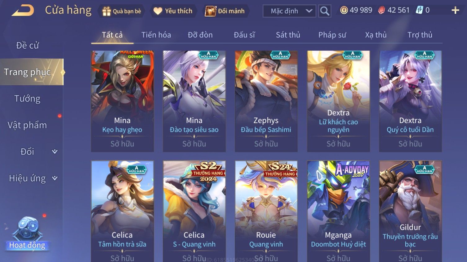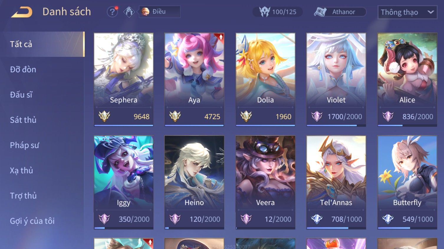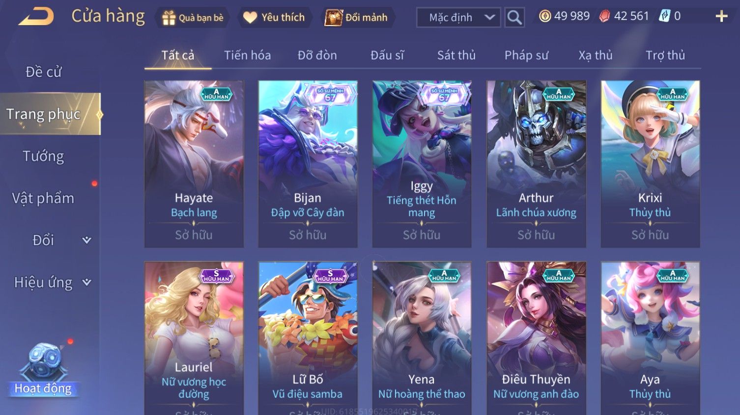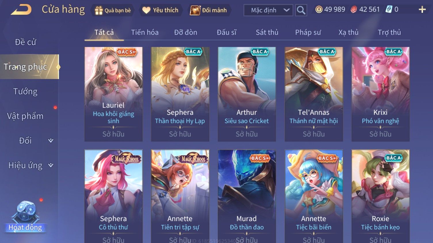 Nổi bật: Skin: Airi Bạch Kiemono×Violet Thần Long Tỷ Tỷ×Capheny Tử Đinh Hương×Butterfly Nữ Quái Nổi Loạn×Tachi Đao Khách Vô Tình×Sephera Bách Nhạn Ngân LinhFull Ngọc, Nhiều Skin SS Đẹp